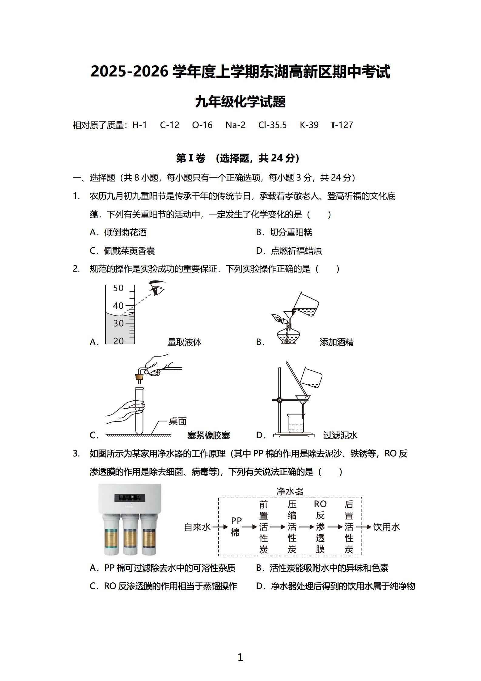 东湖高新区2025-2026学年九上期中化学试卷(PDF版含答案)
