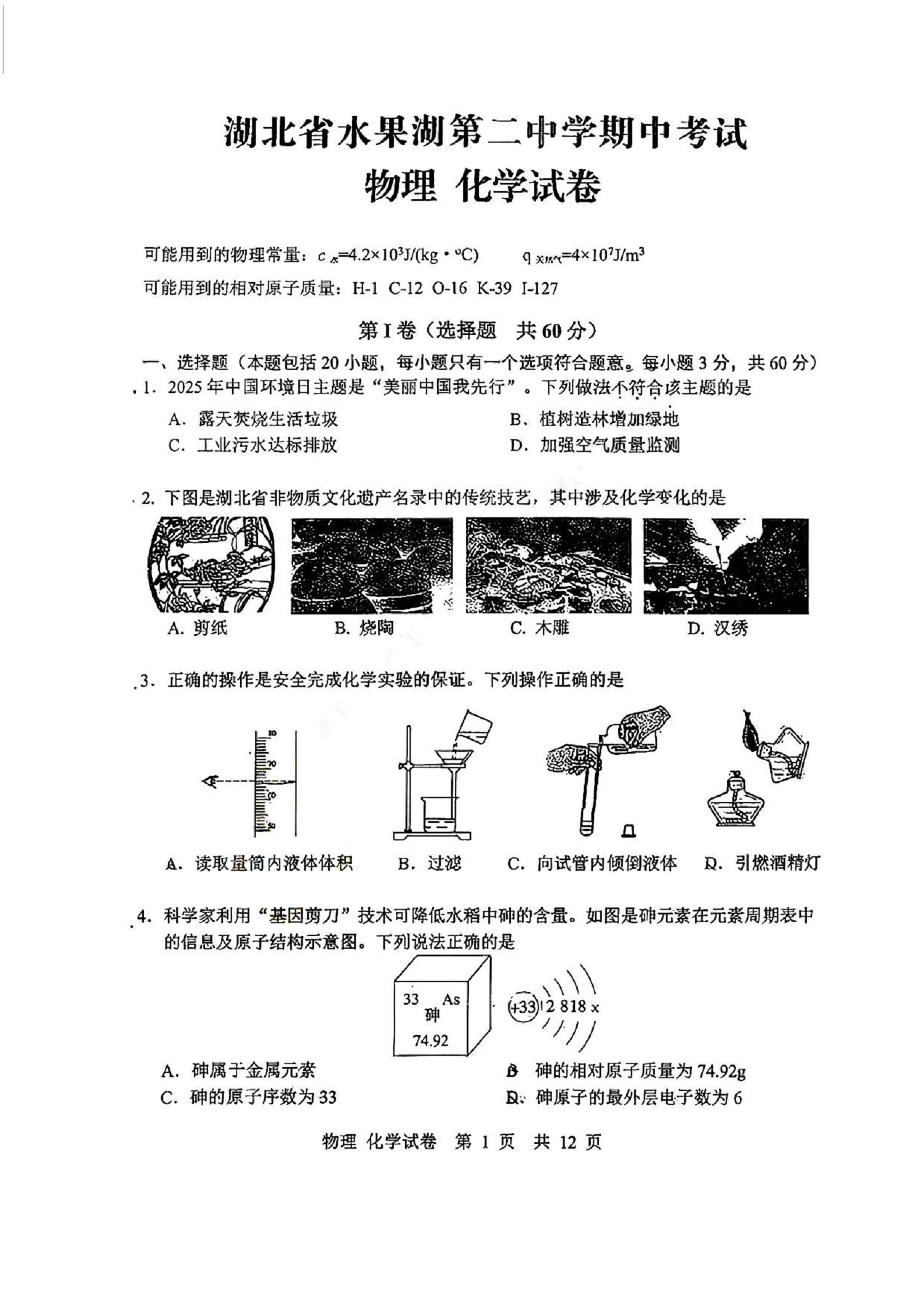 武昌区2025-2026学年九上期中理化试卷(PDF版)
