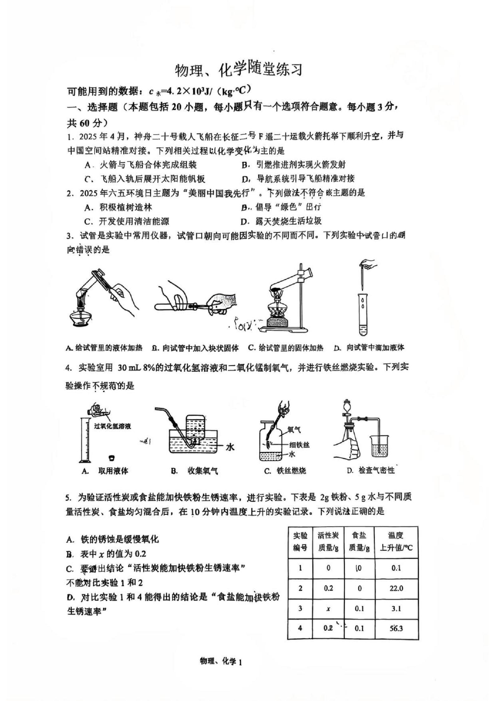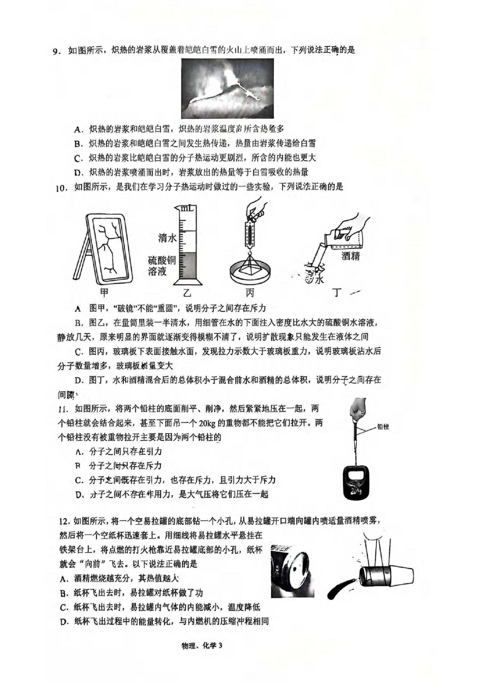 武昌区水一中2025-2026学年上学期10月九年级理化试题(PDF版)