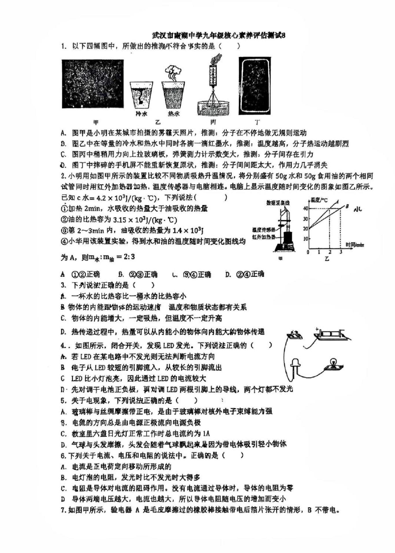 武汉外国语学校2025-2026学年上学期10月九年级理化合卷(PDF版)