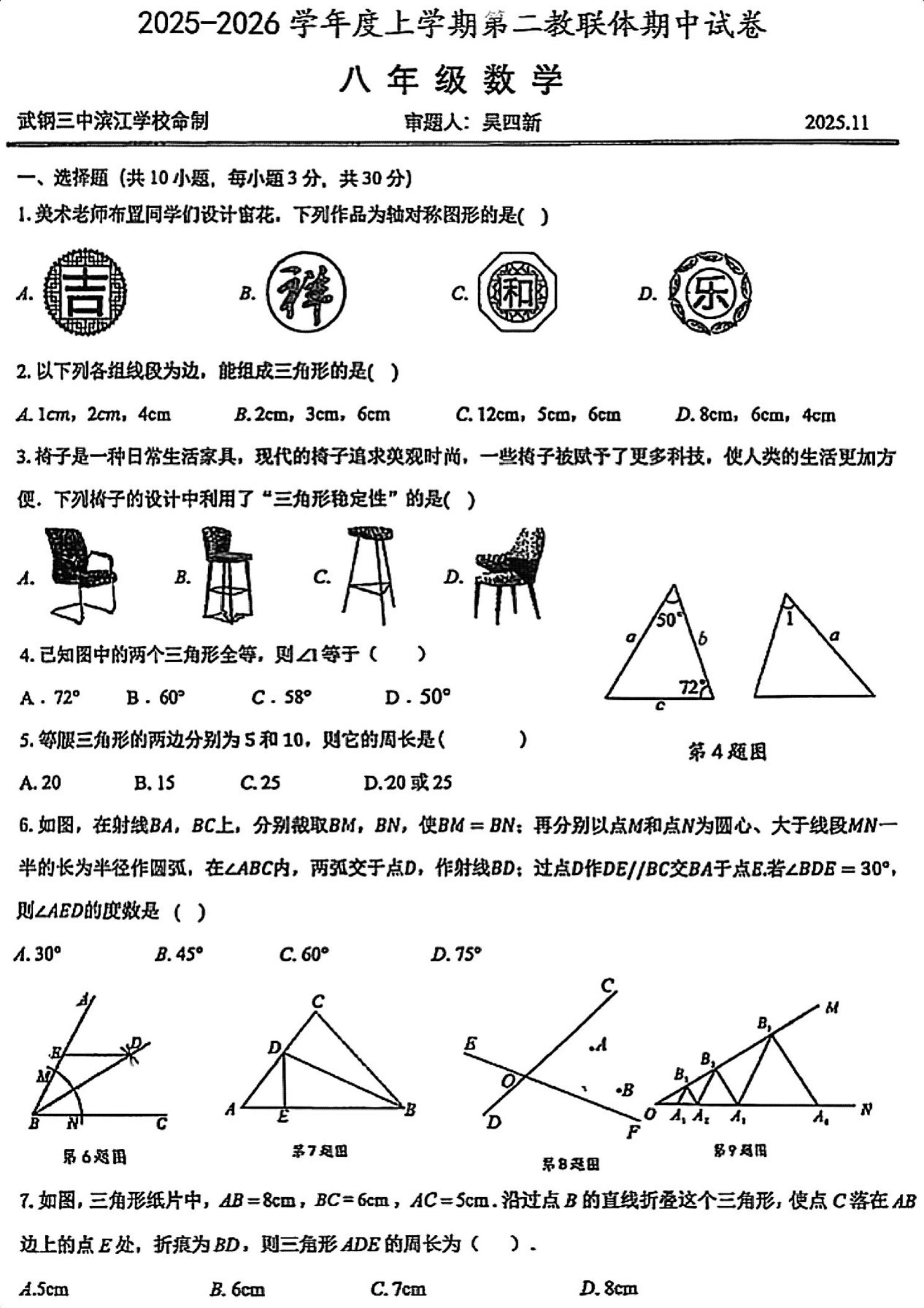 青山区钢实教联体2025-2026学年八上期中数学试卷(PDF版)