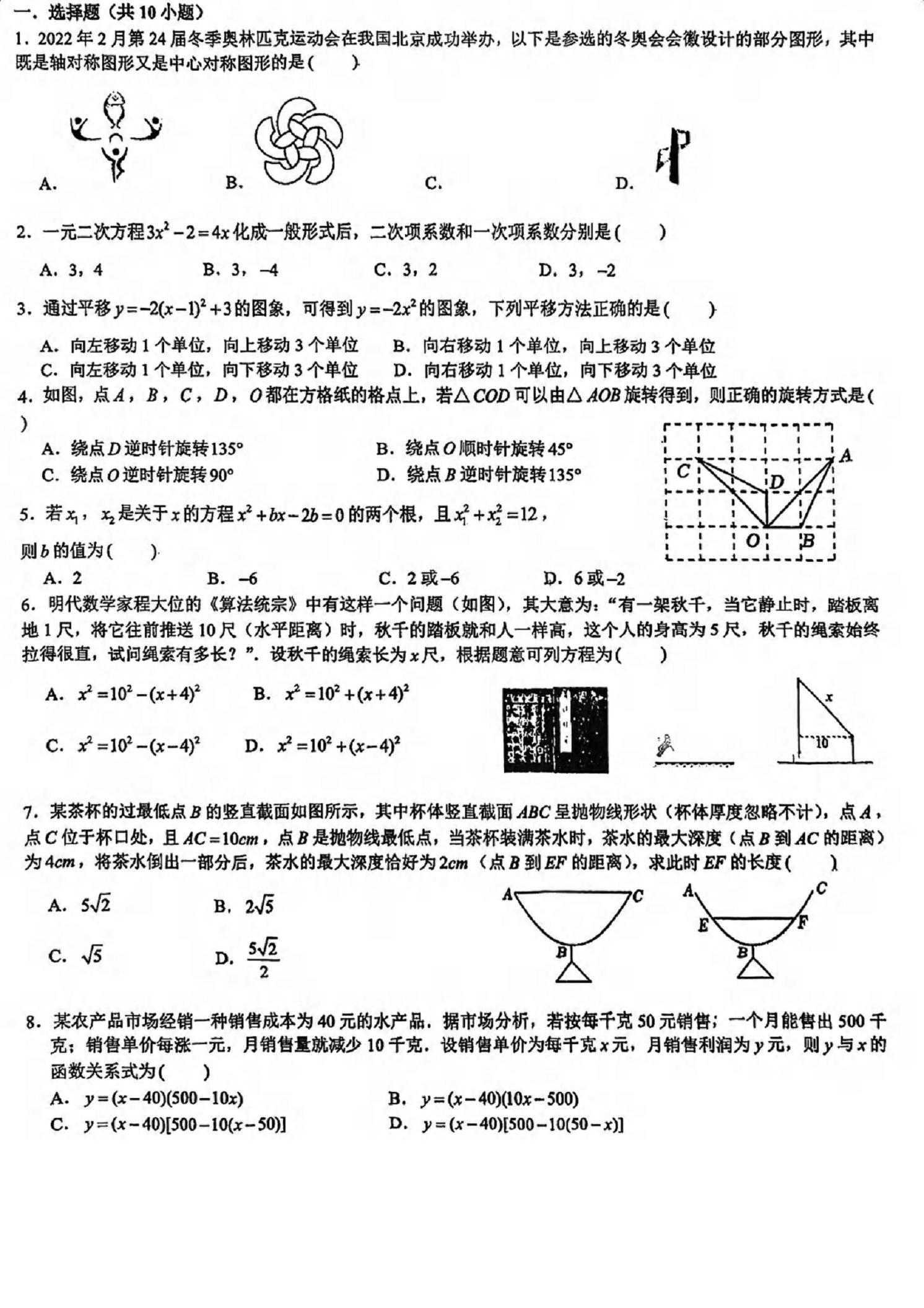 九上数学月考