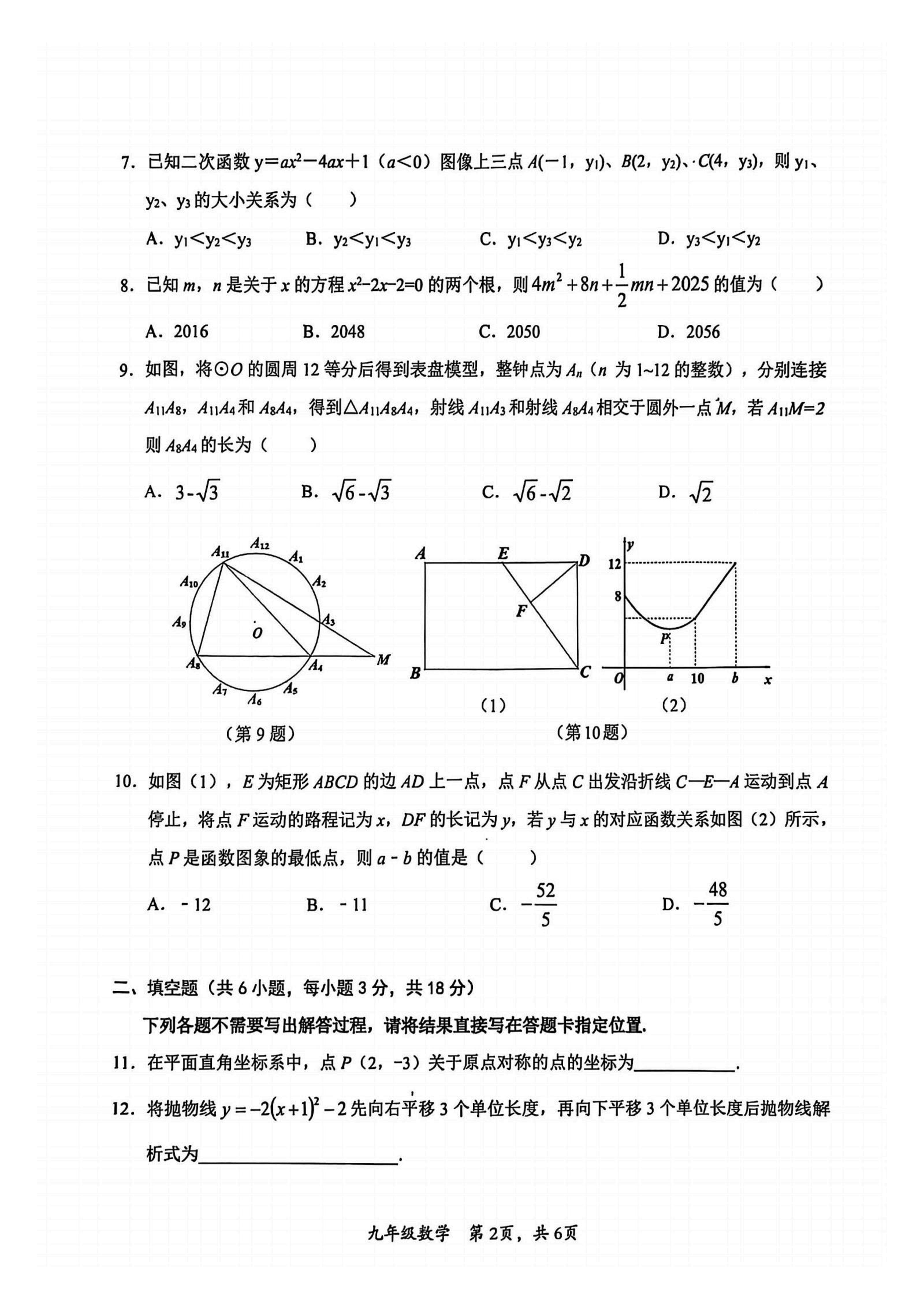 东湖高新区2025-2026学年九上期中数学试卷(PDF版含标答)