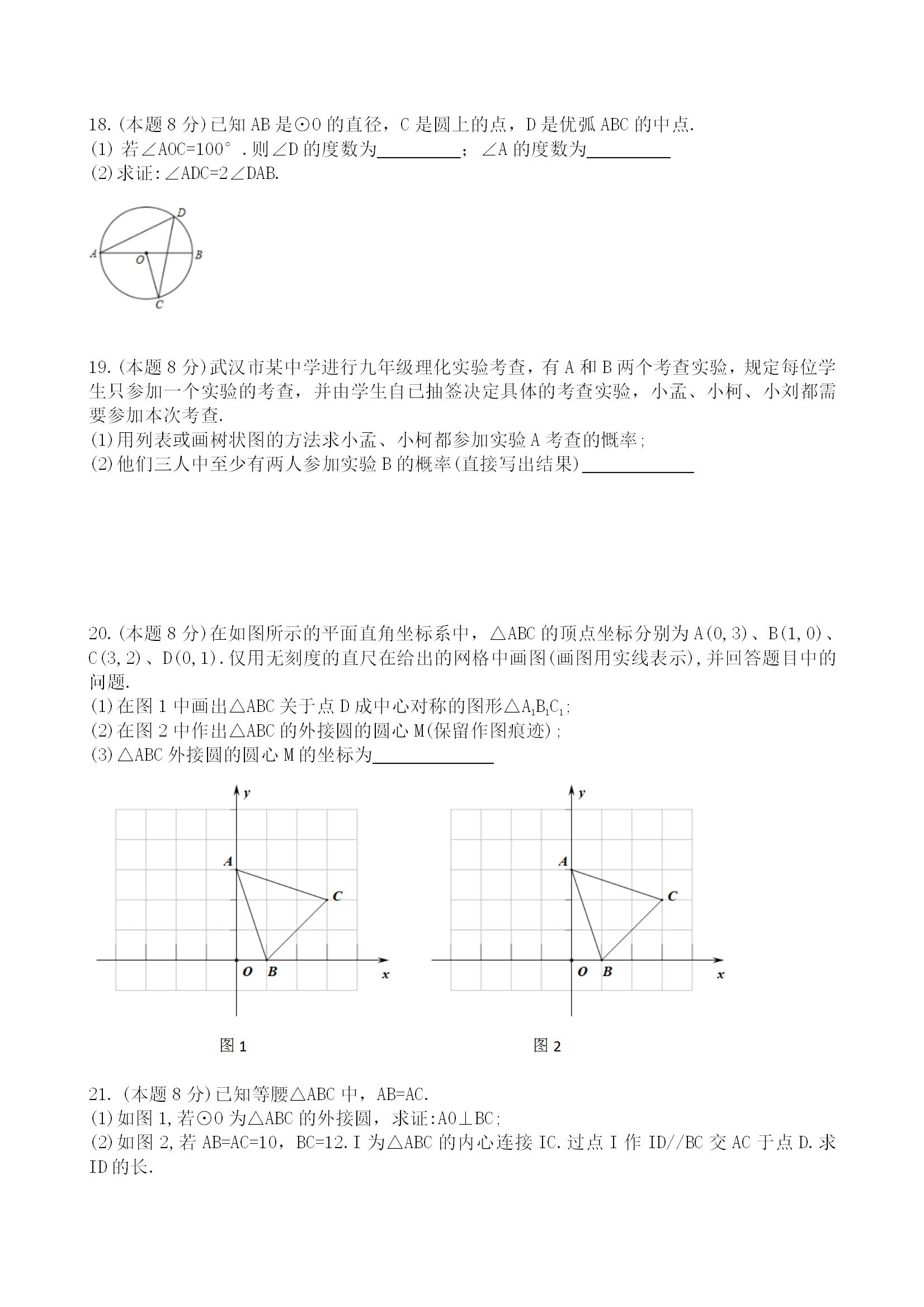 江夏区2021-2022学年上学期12月考九年级数学试题(word版)