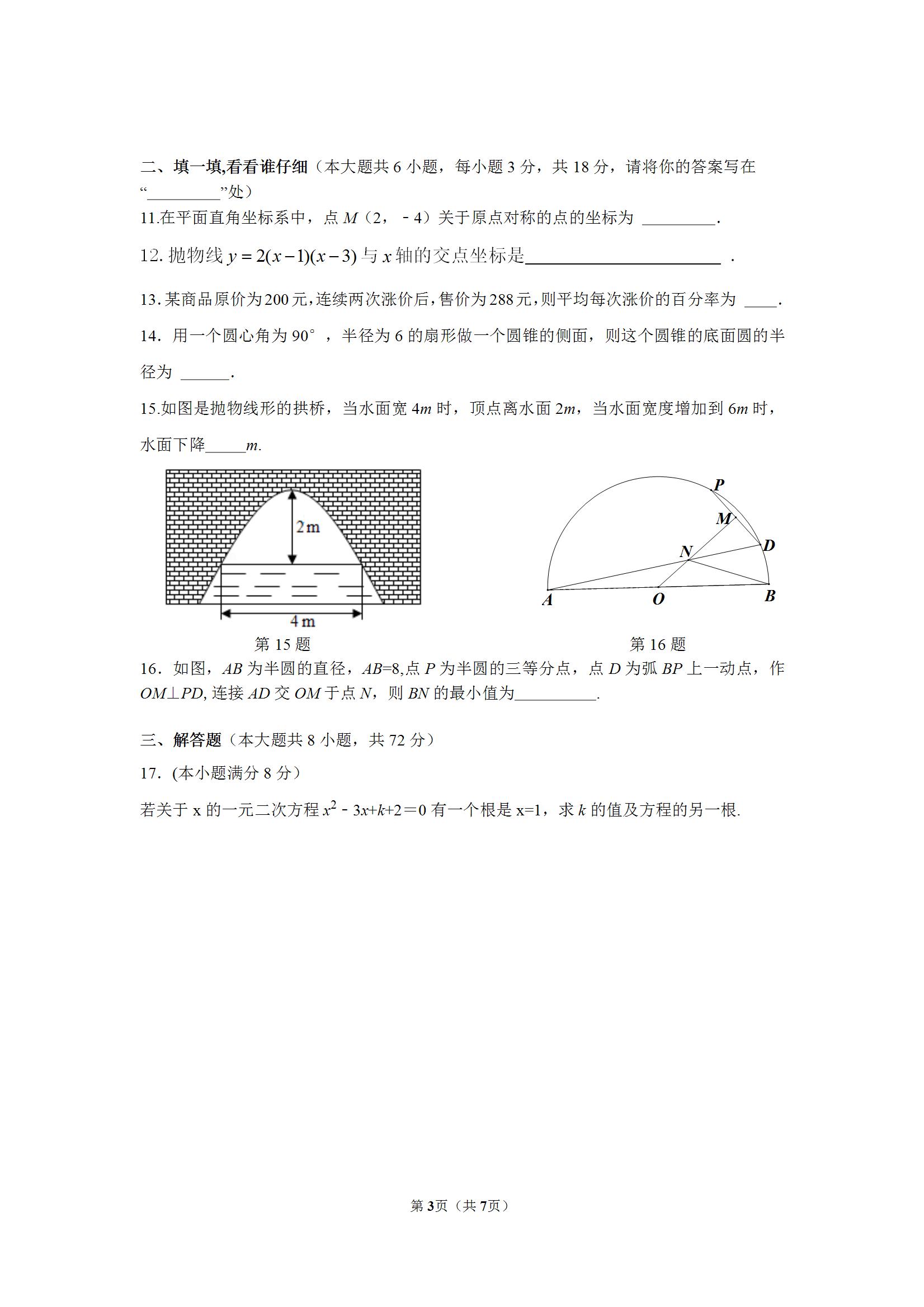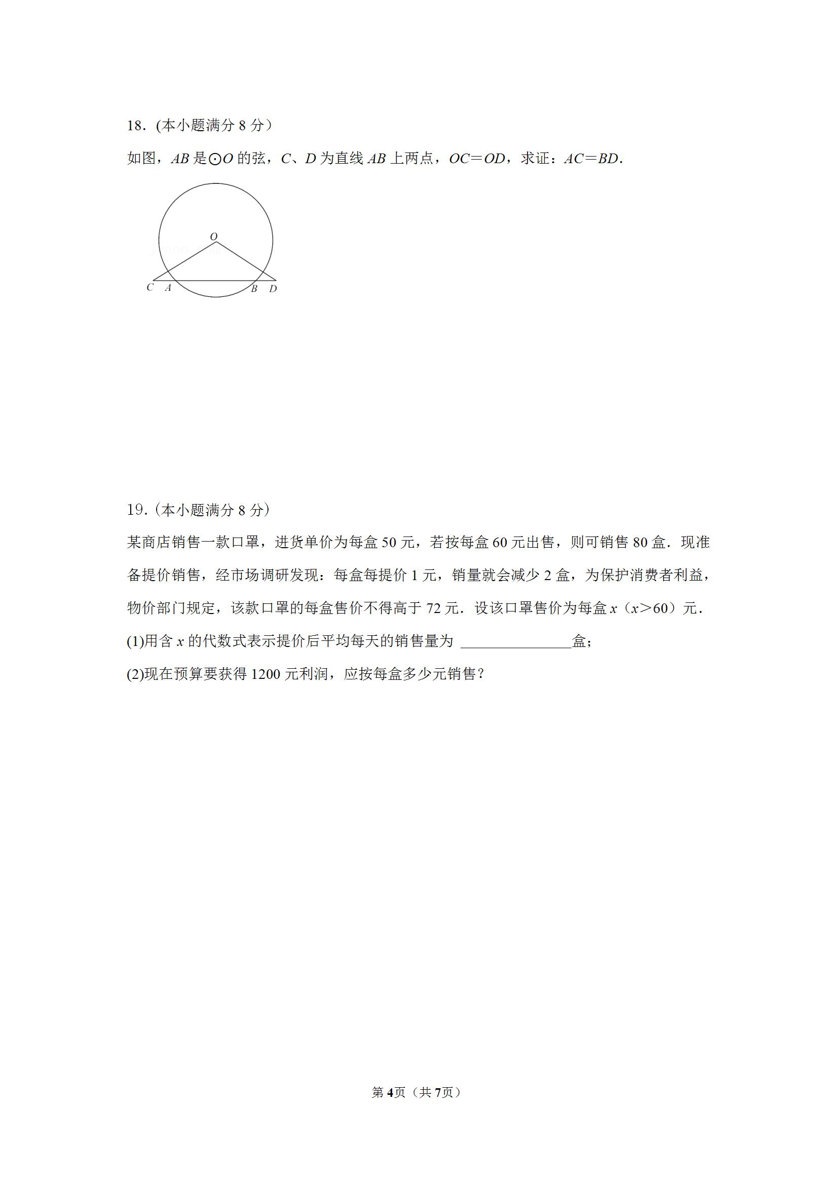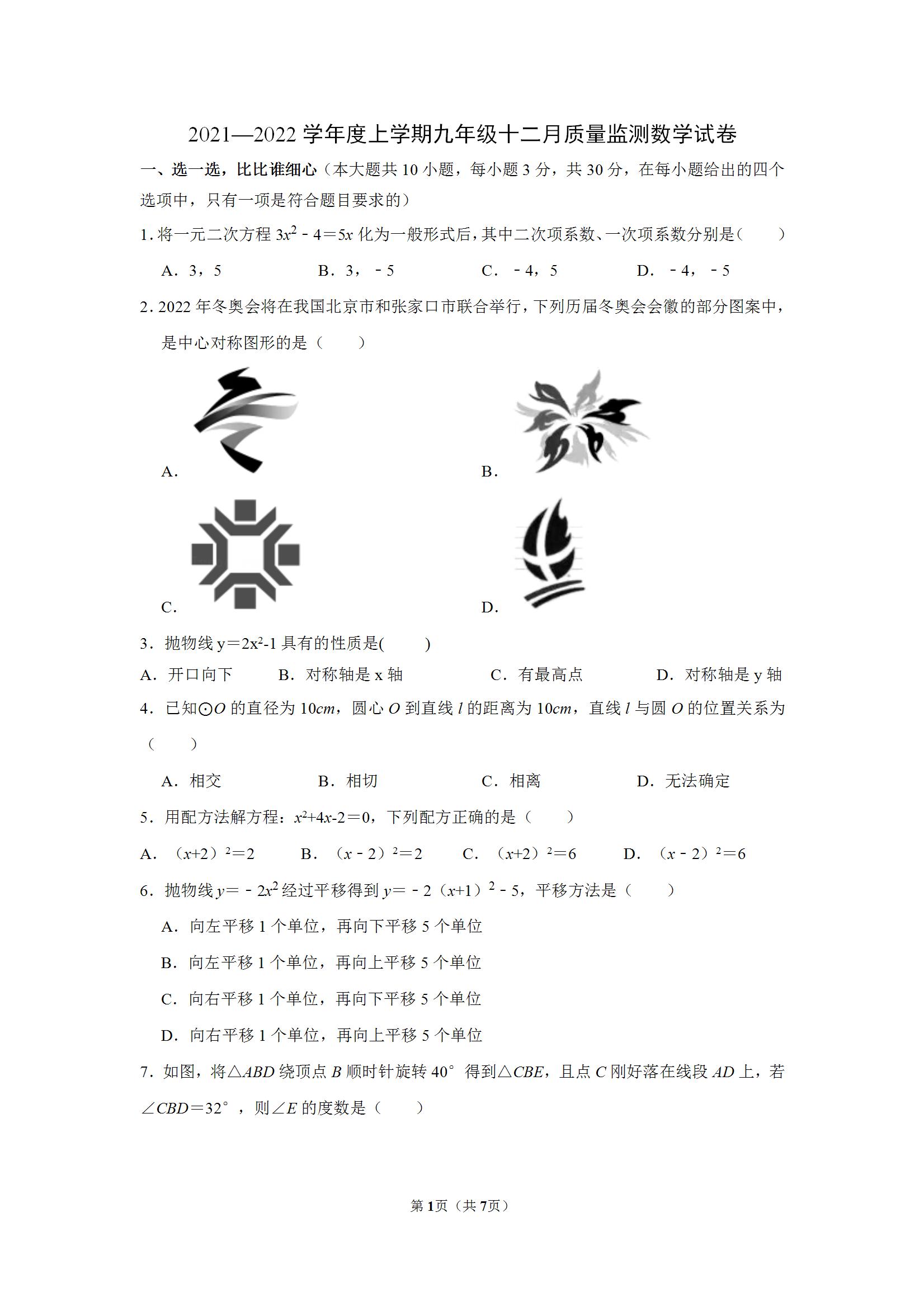 东西湖区2021—2022学年度上学期九年级十二月质量监测数学试卷(word版含答案)