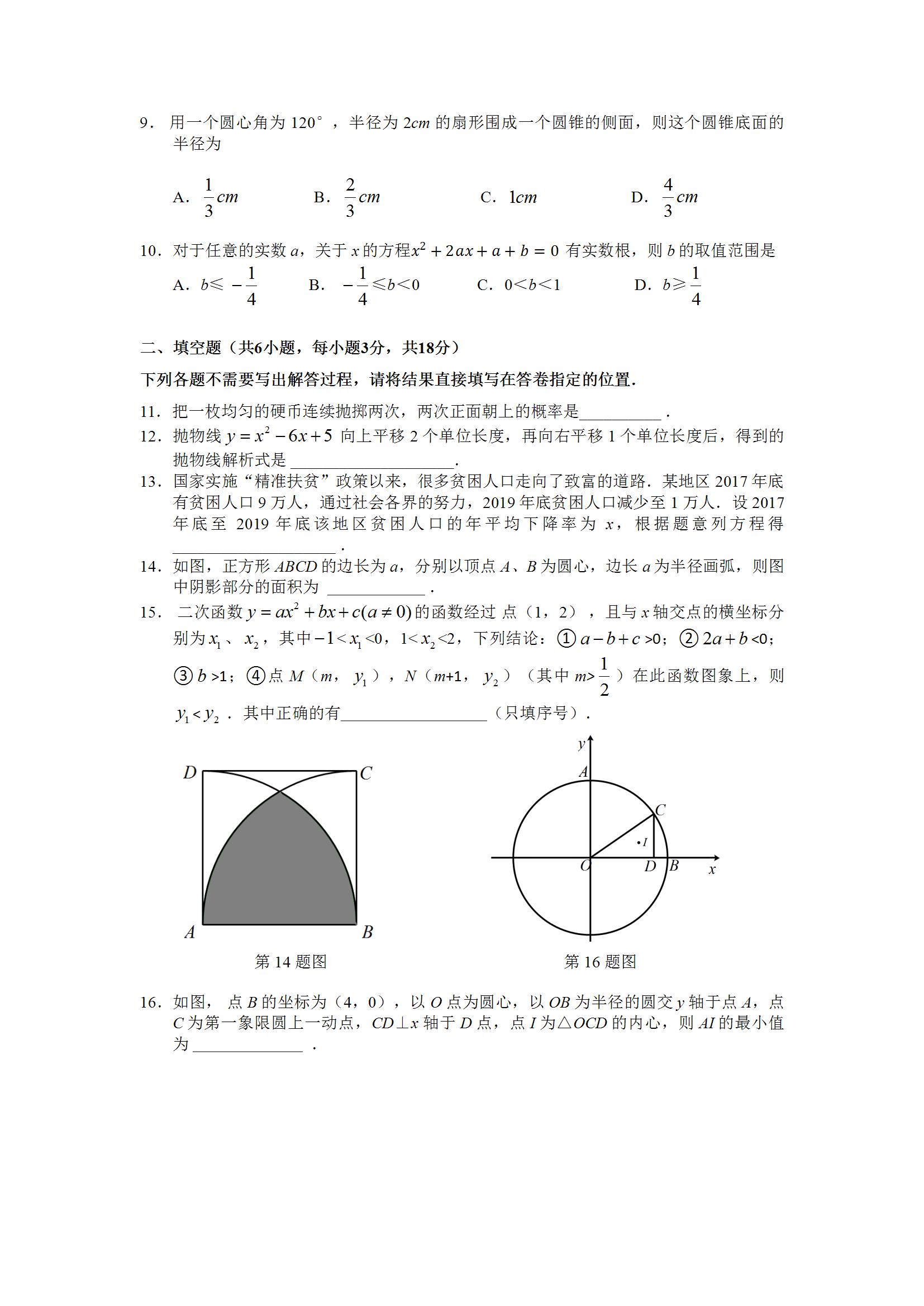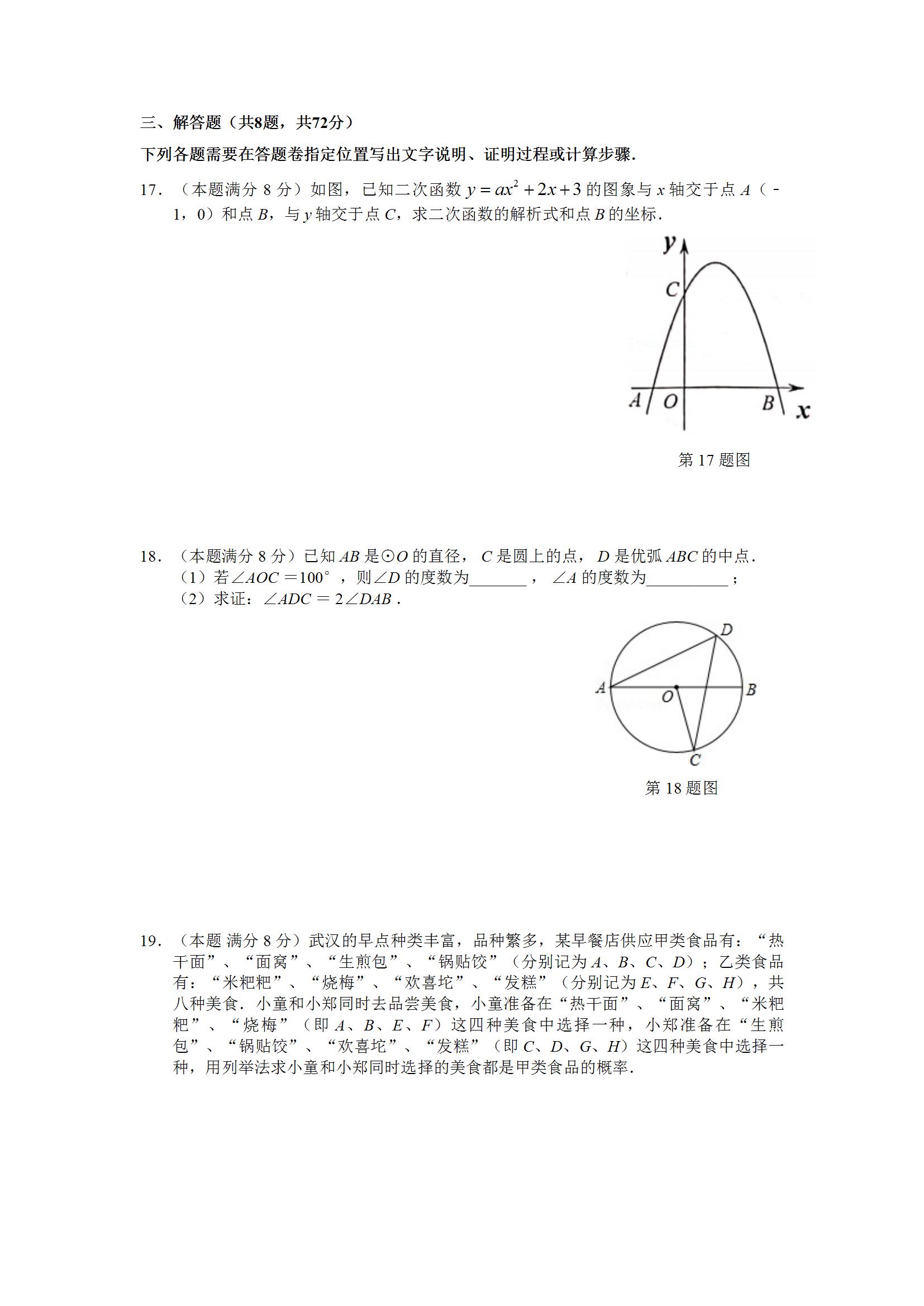 武汉市四校联盟2021-2022学年度12月质量检测九年级数学试题(word版)