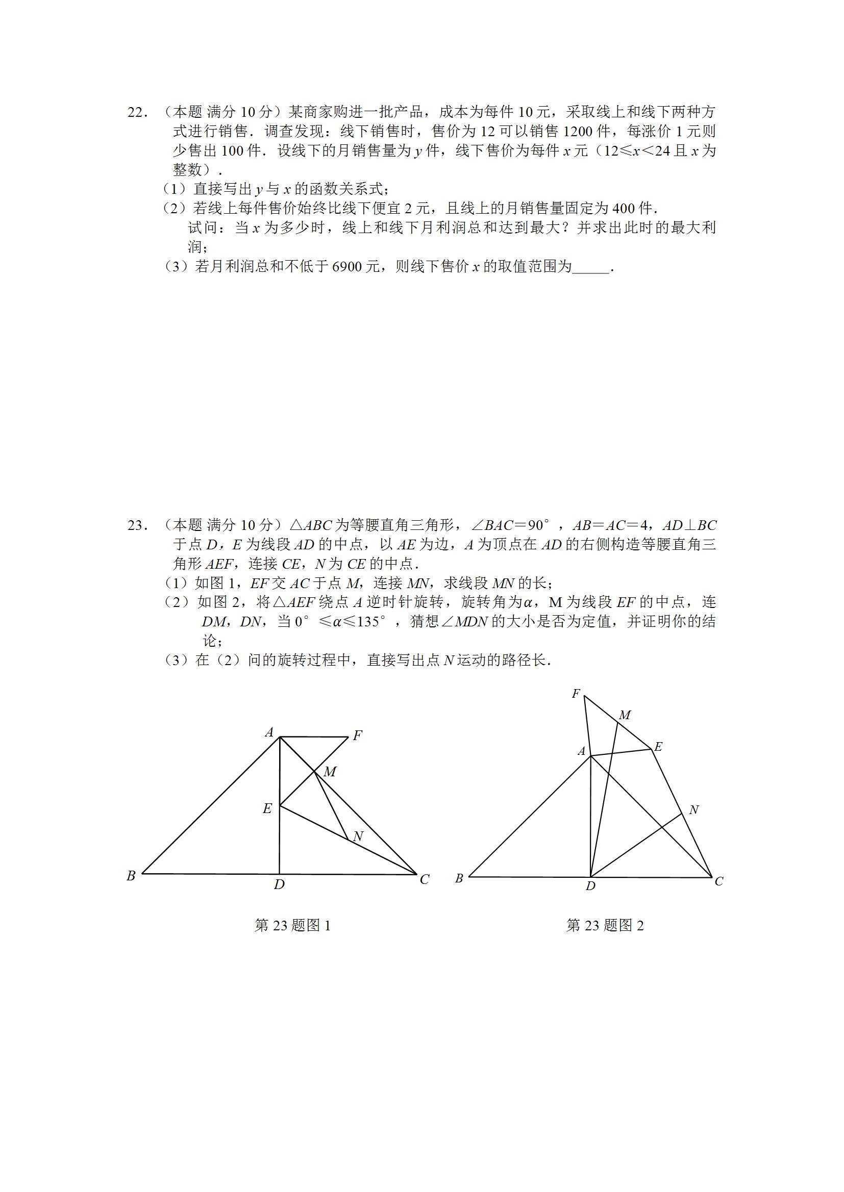 江汉区四校联盟2021-2022学年度12月质量检测九年级数学试题(word版含答案)