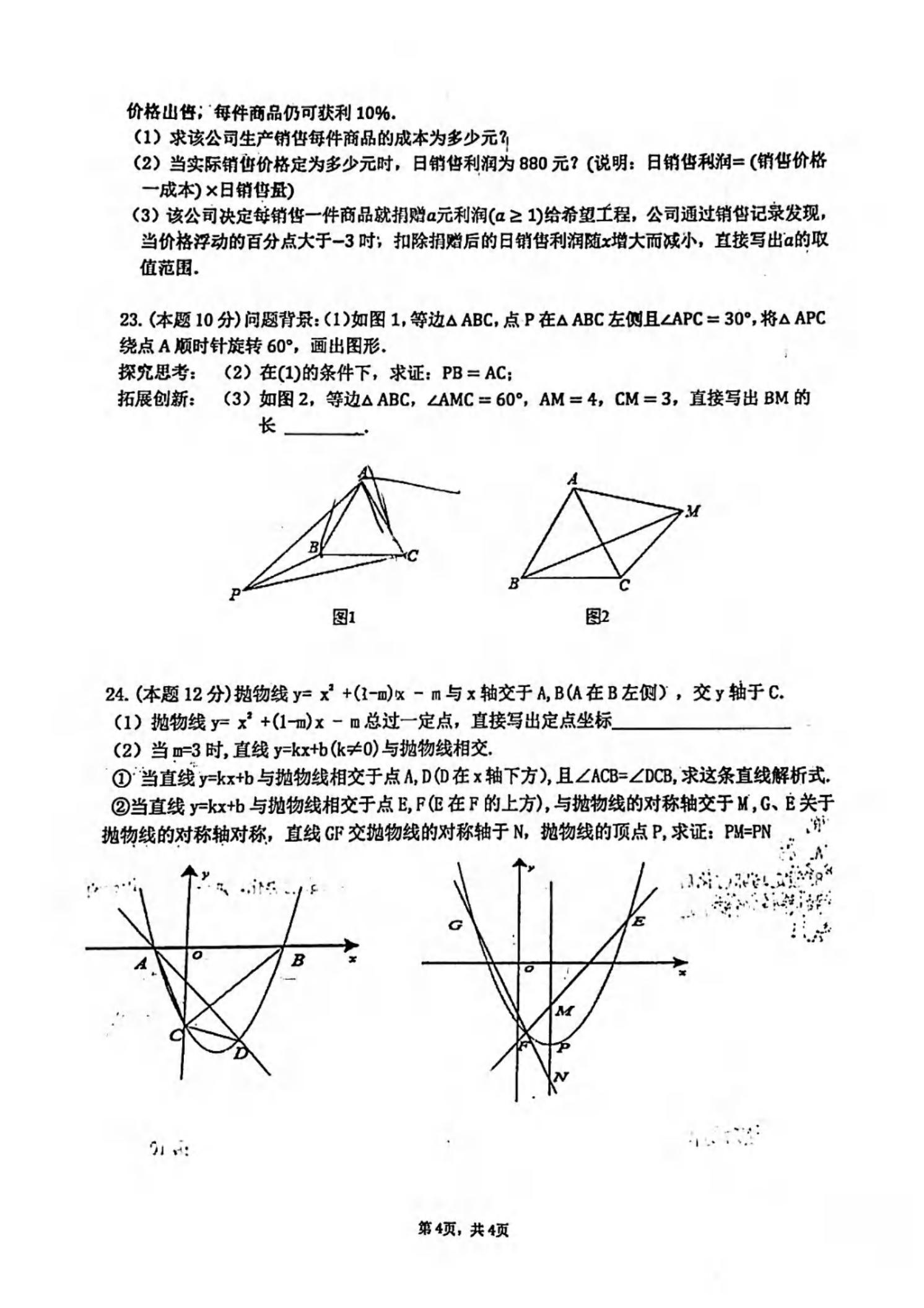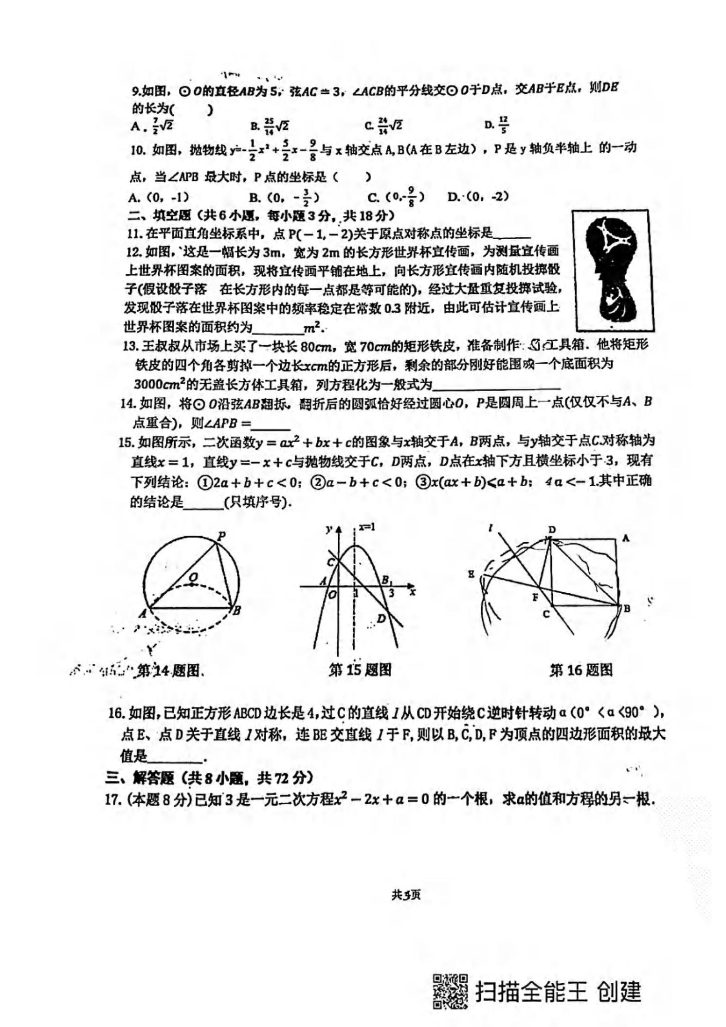 武汉卓刀泉中学2021-2022学年上学期12月测评九年级数学试题(扫描版)