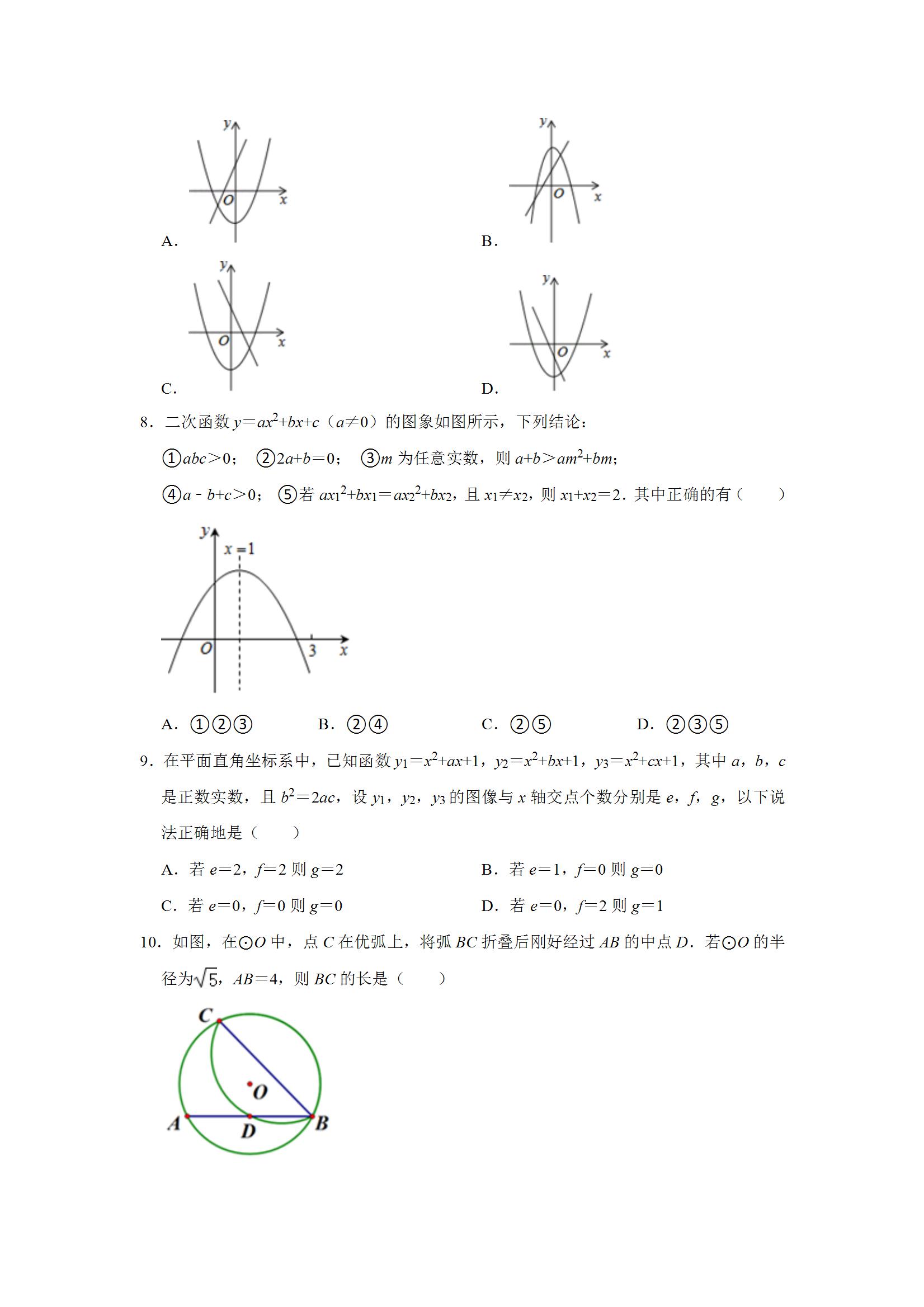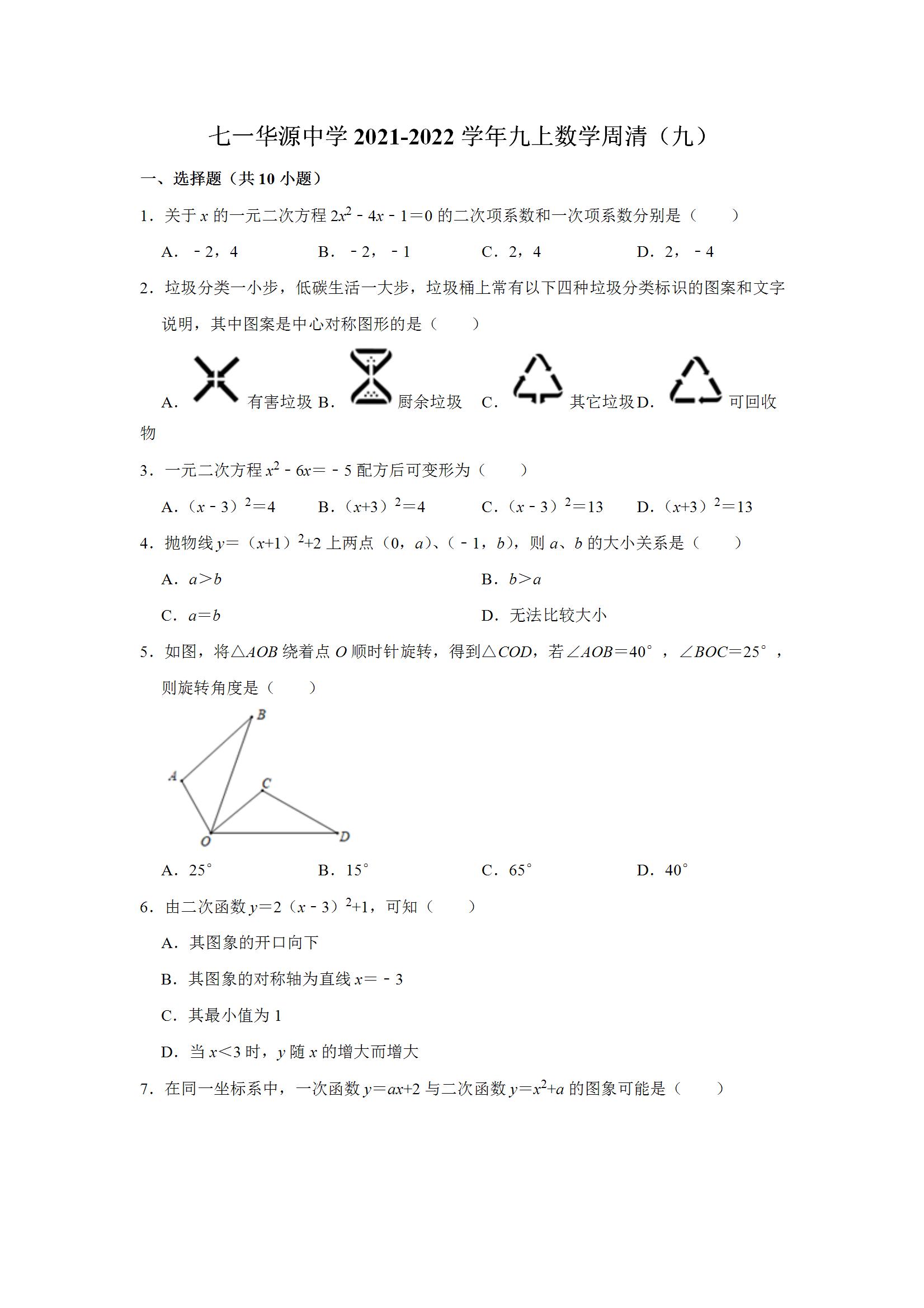 七一华源中学2021-2022学年九上数学周清(十)(word版)
