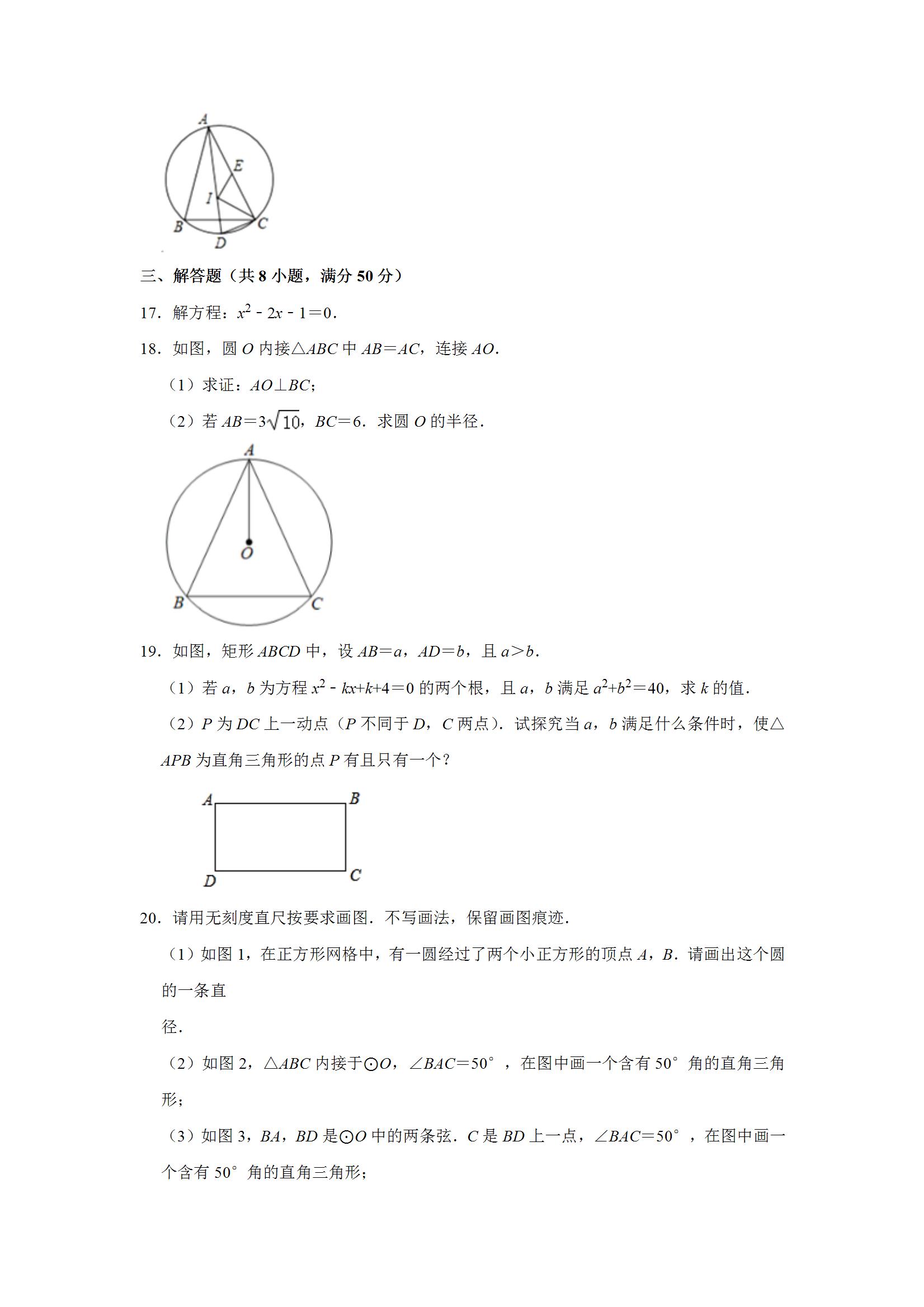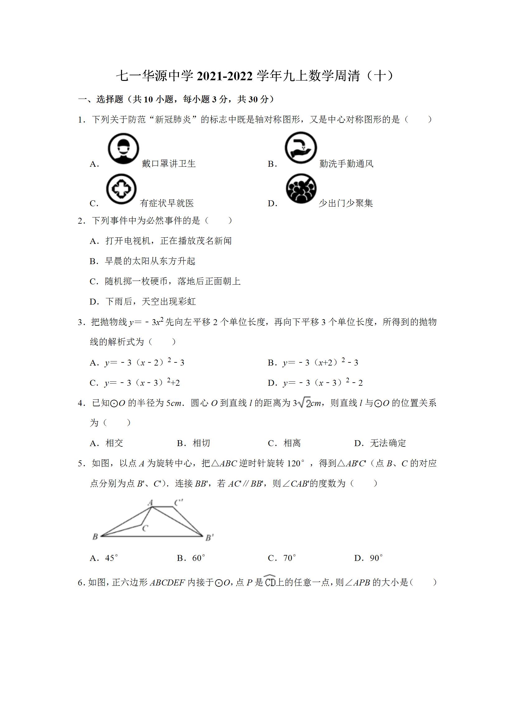七一华源中学2021-2022学年九上数学周清(十)(word版)