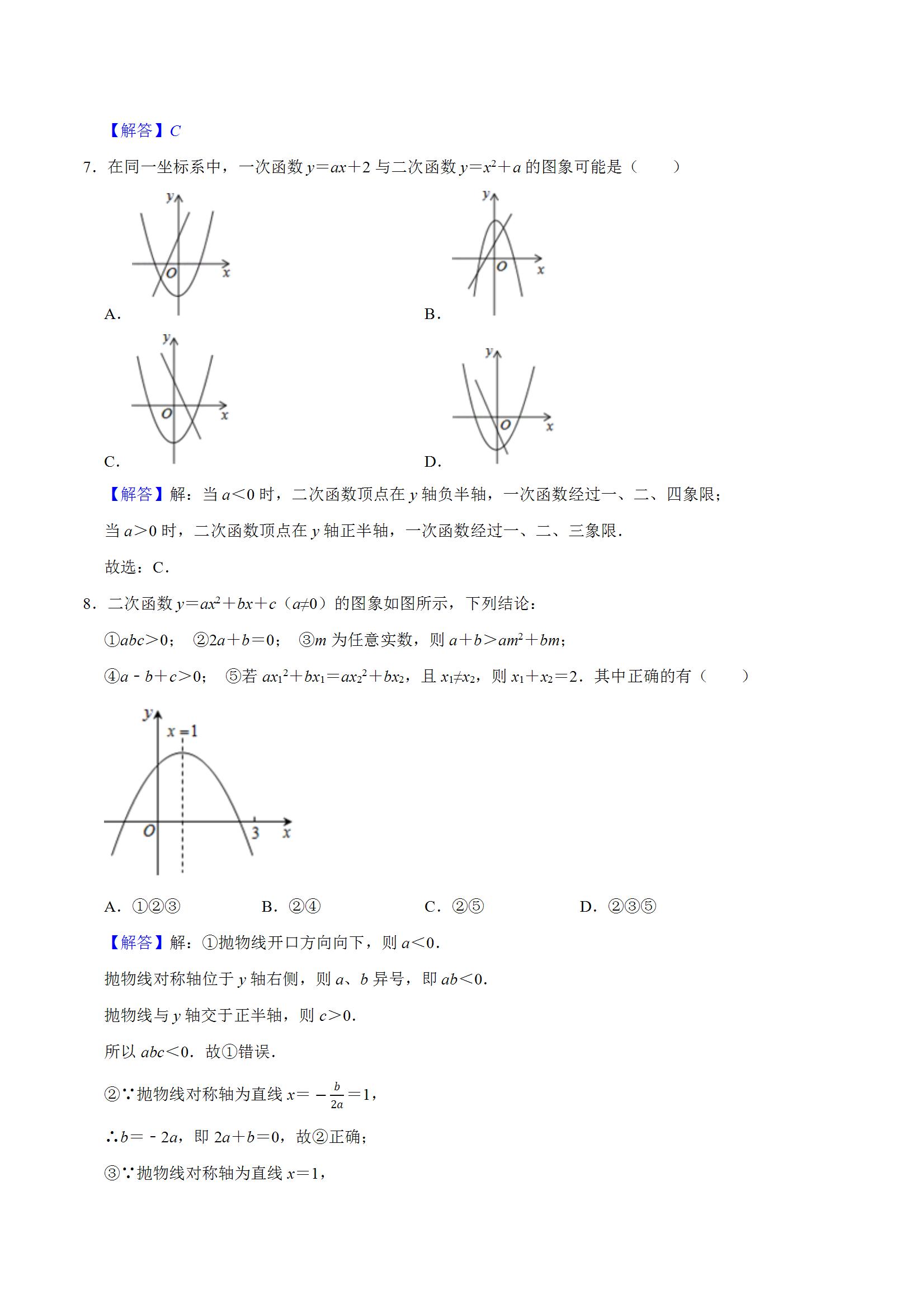 七一华源中学2021-2022学年九上数学周清(九)(解析版)