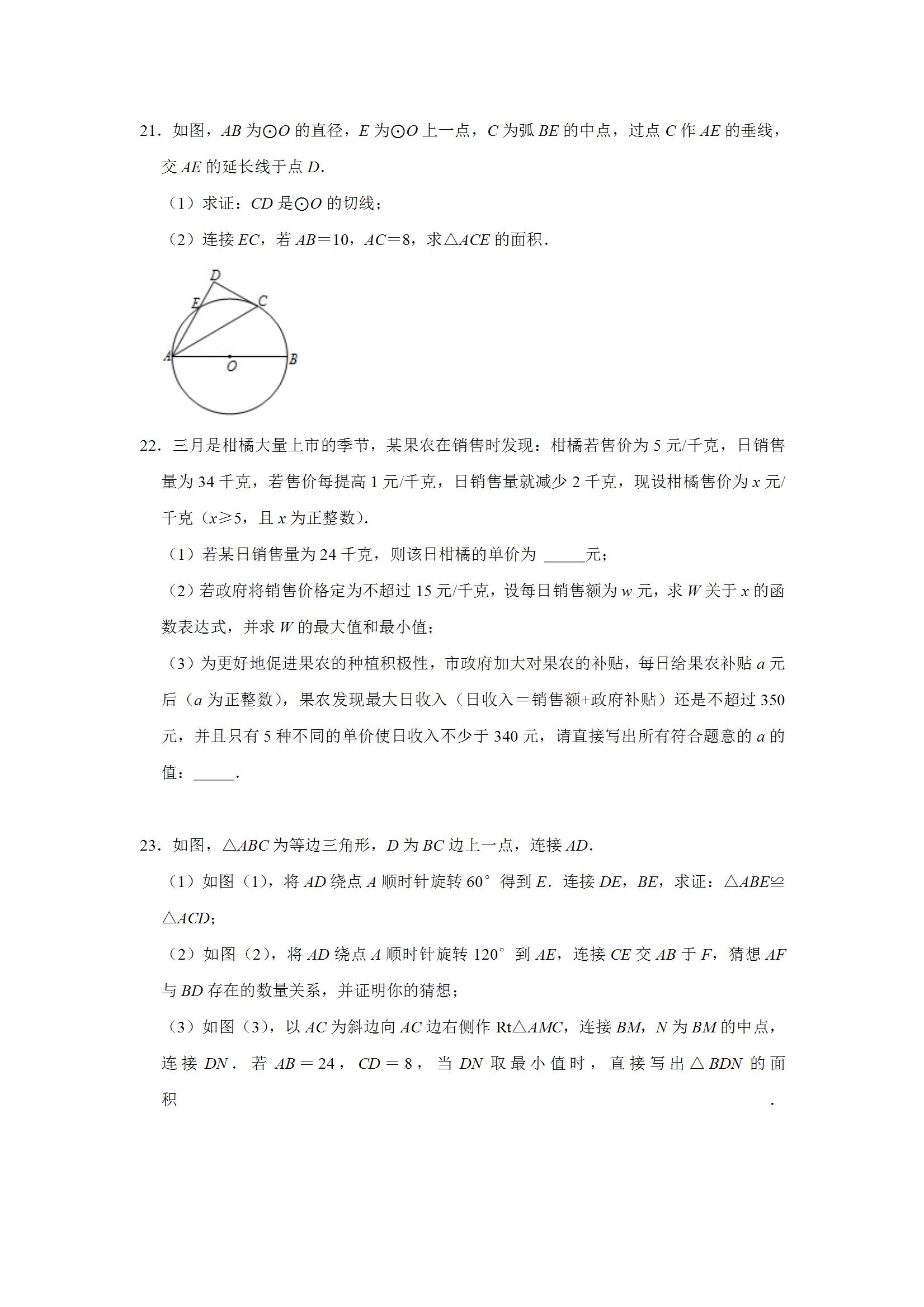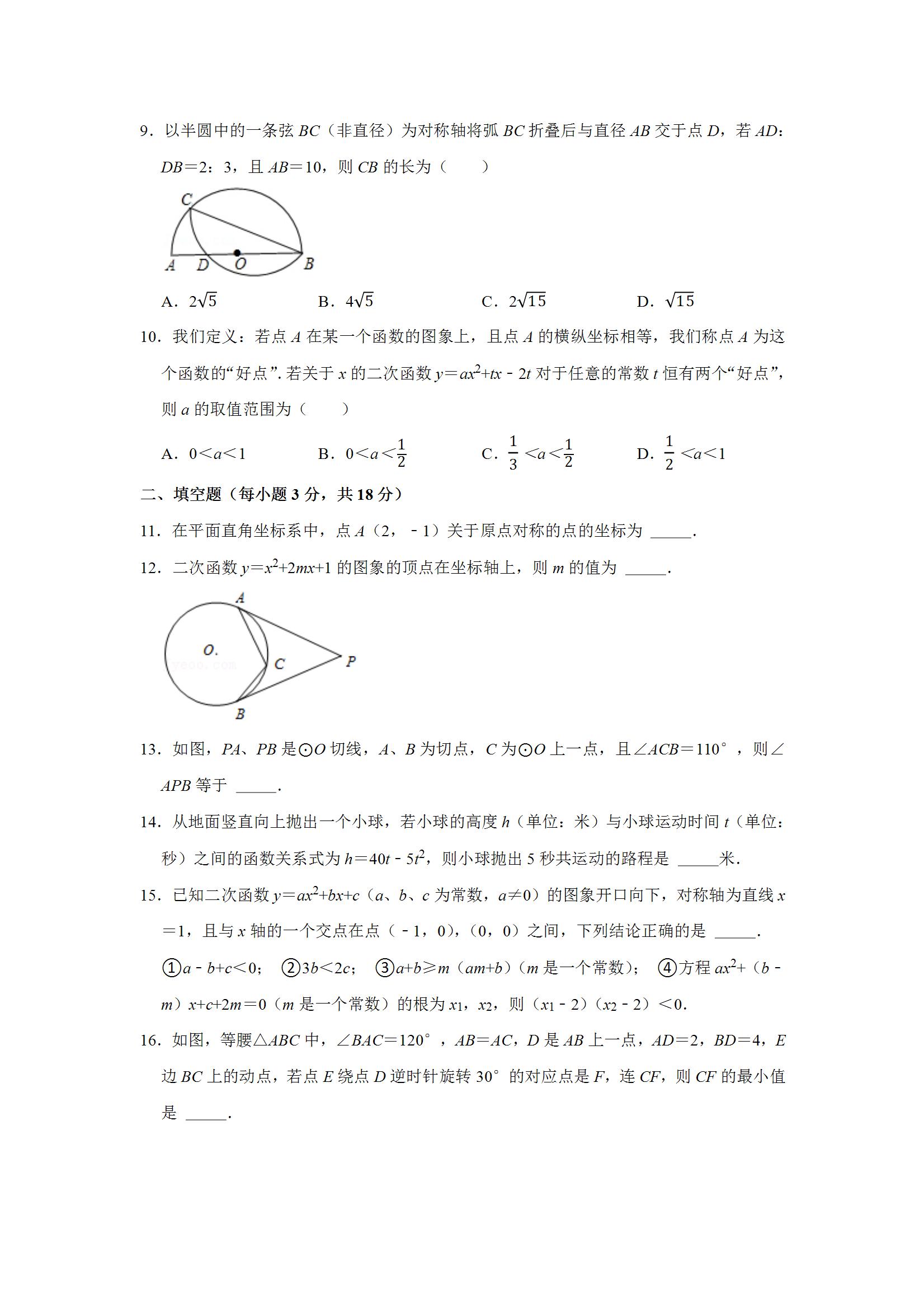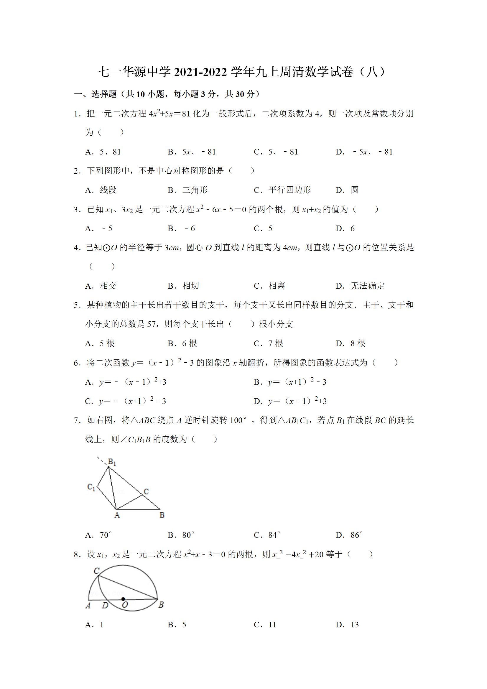 七一华源中学2021-2022学年九上数学周清(八)(word版)