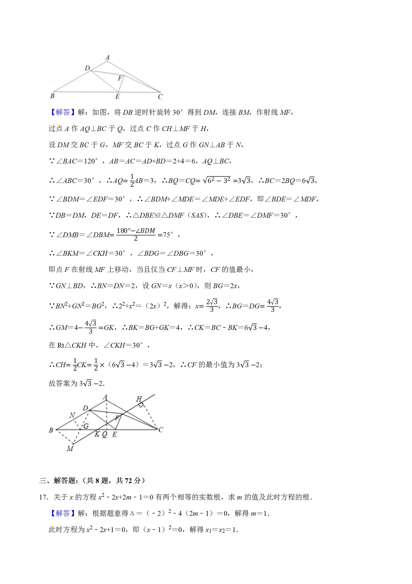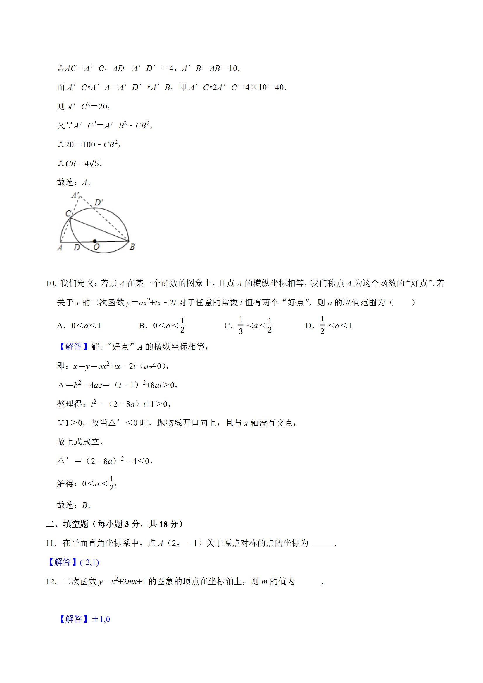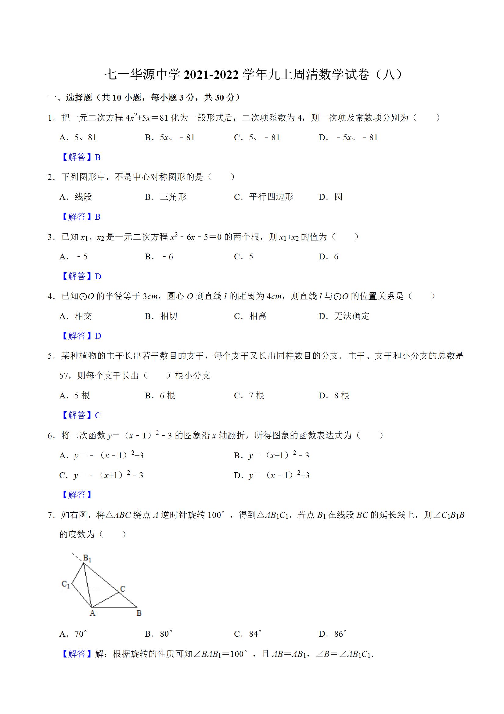 七一华源中学2021-2022学年九上周清数学试卷(八)(解析版)