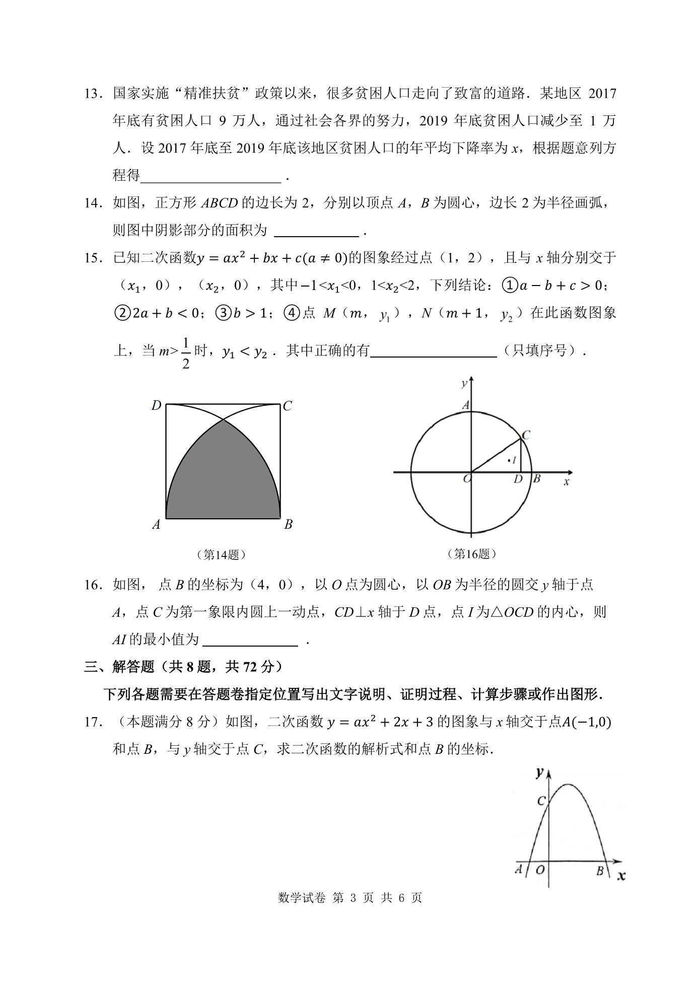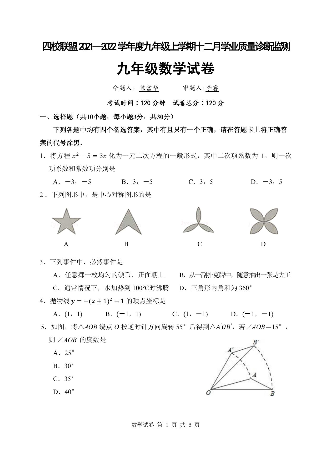 江汉区四校联盟2021-2022学年度12月质量检测九年级数学试题(高清pdf版)