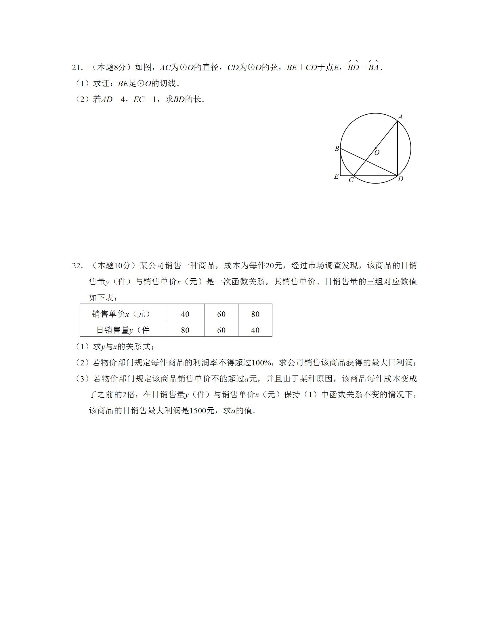 江汉区四校联盟2021-2022学年度12月质量检测九年级数学试题(高清pdf版)
