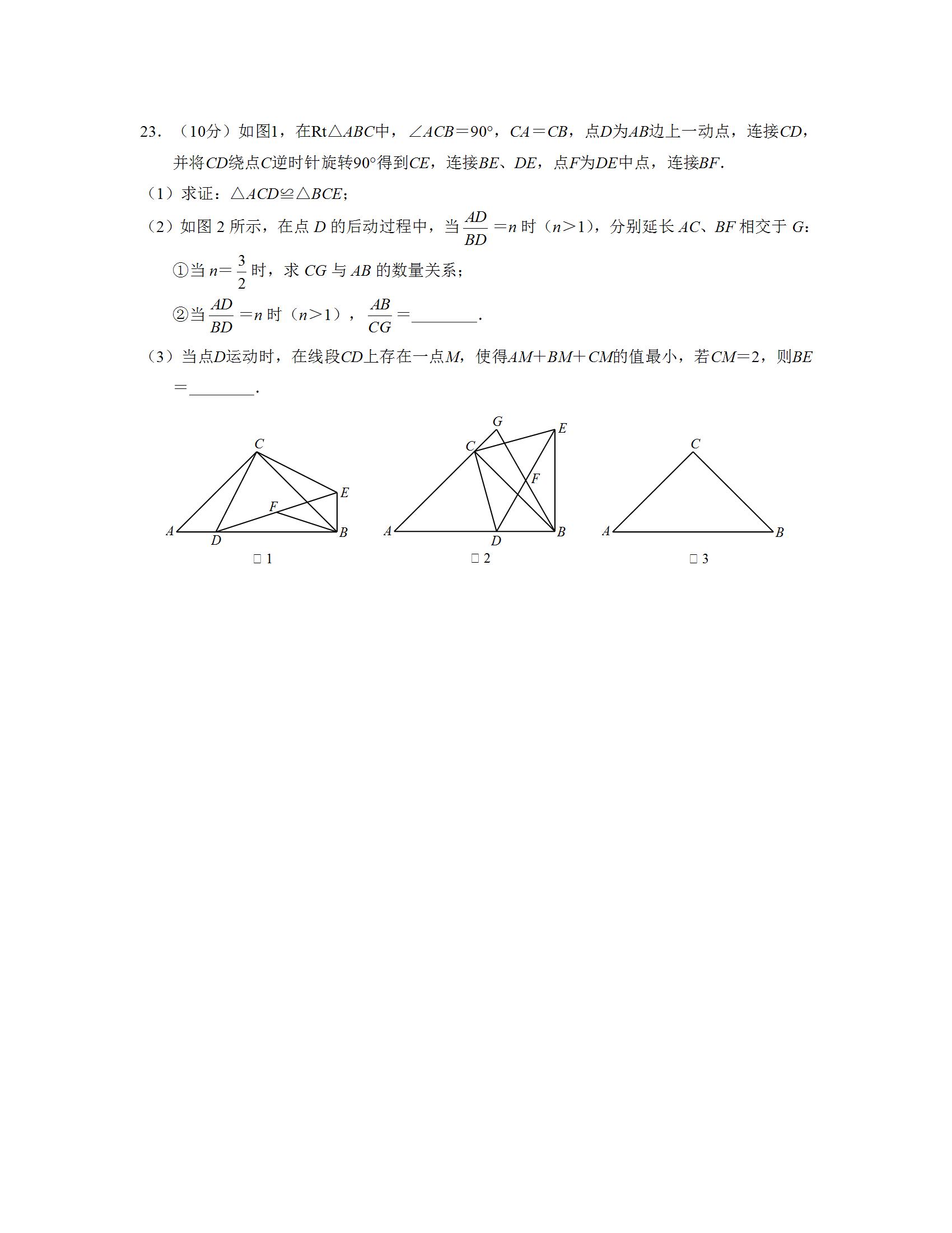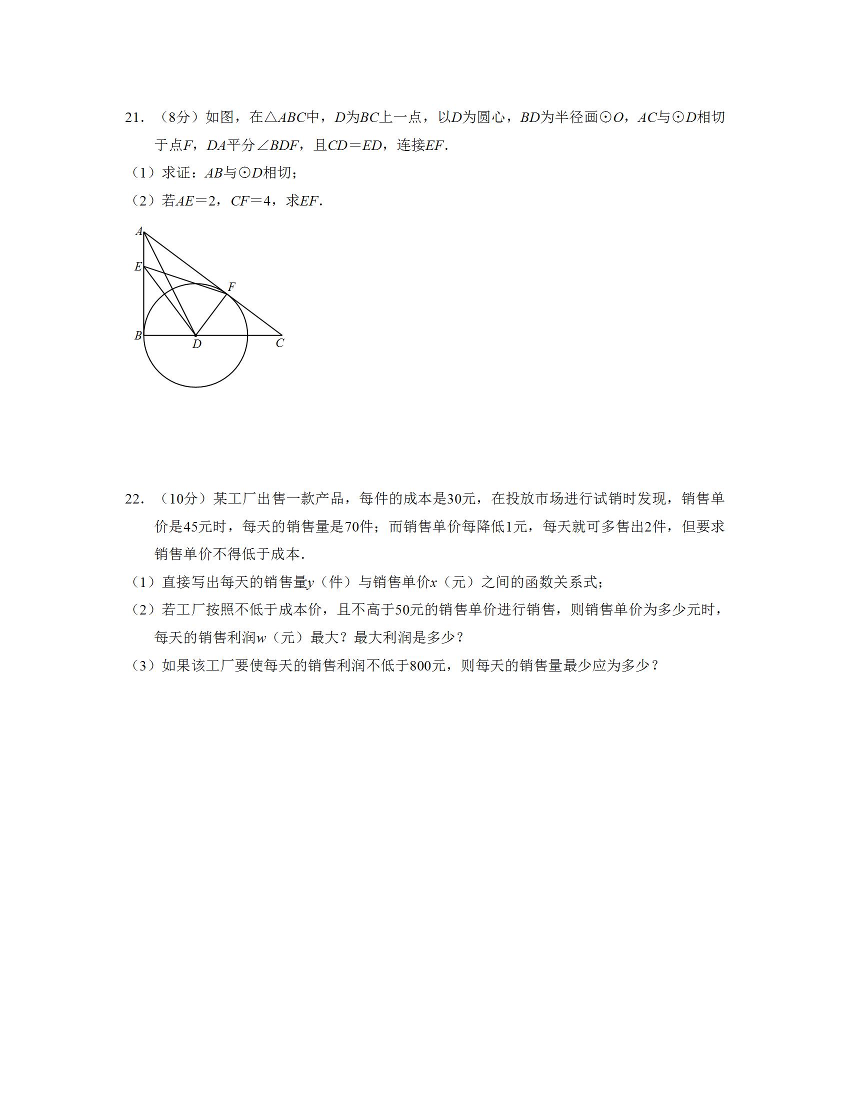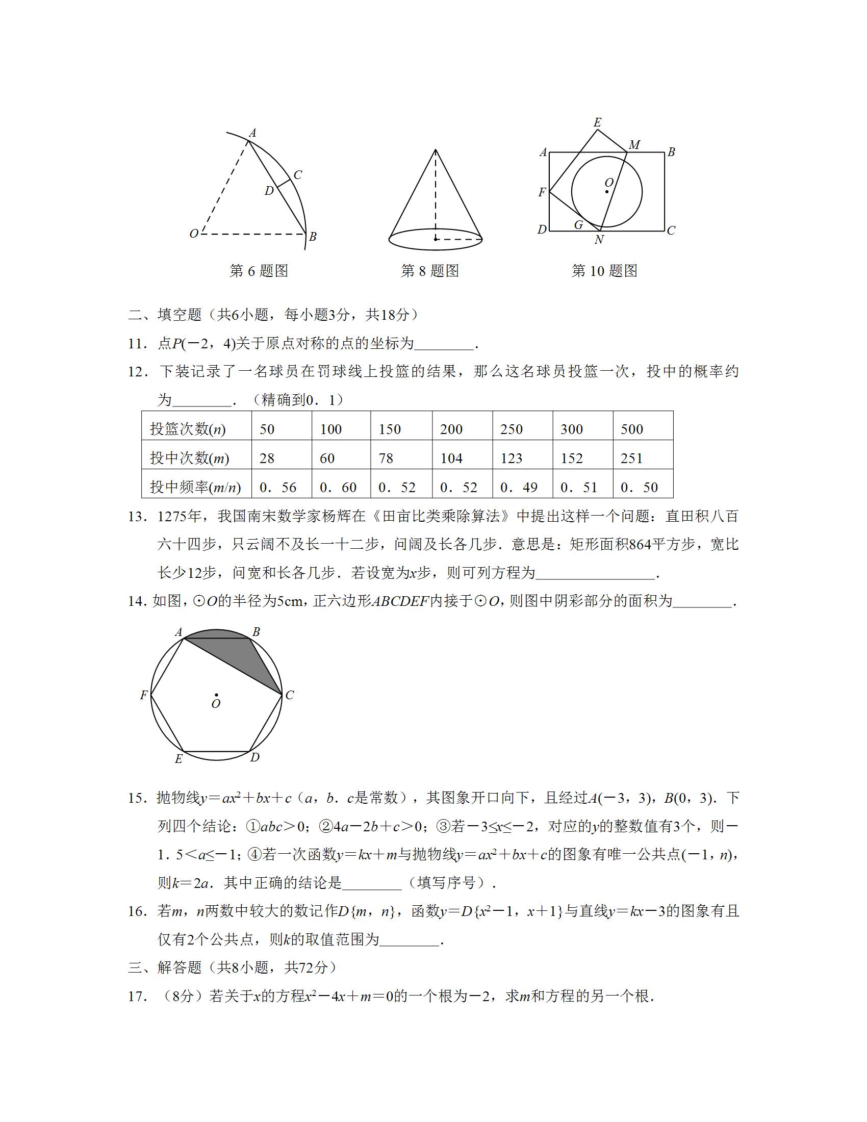 武汉外校2021-2022学年度12月考九年级数学练习(二)(word版)