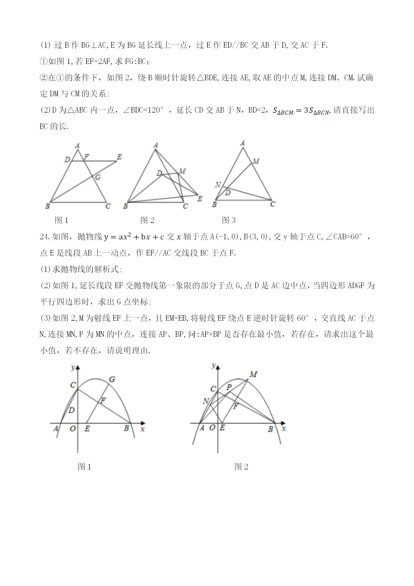 武汉外校2021-2022学年度12月考九年级数学练习(二)参考答案