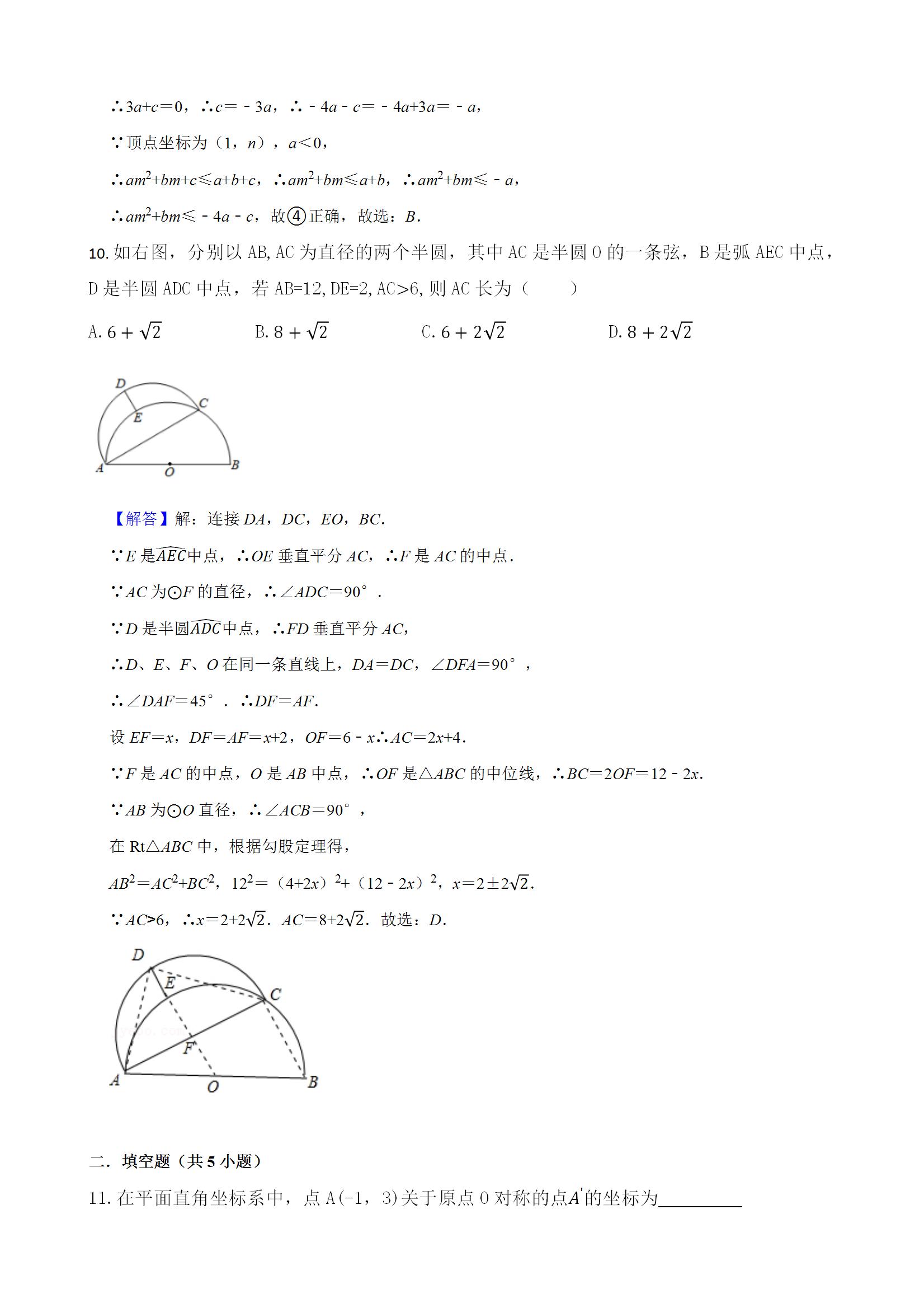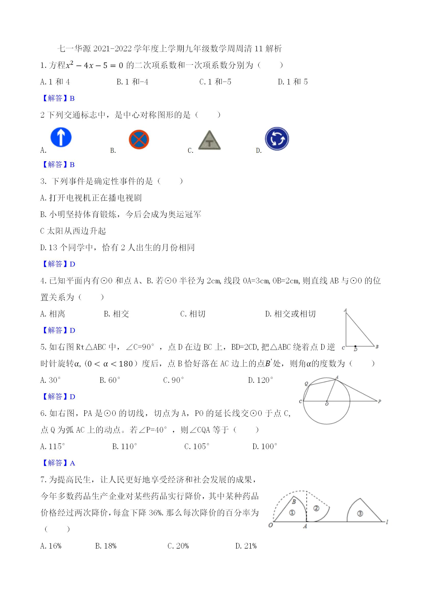 七一华源2021-2022学年度上学期九年级数学周周清11(解析版)