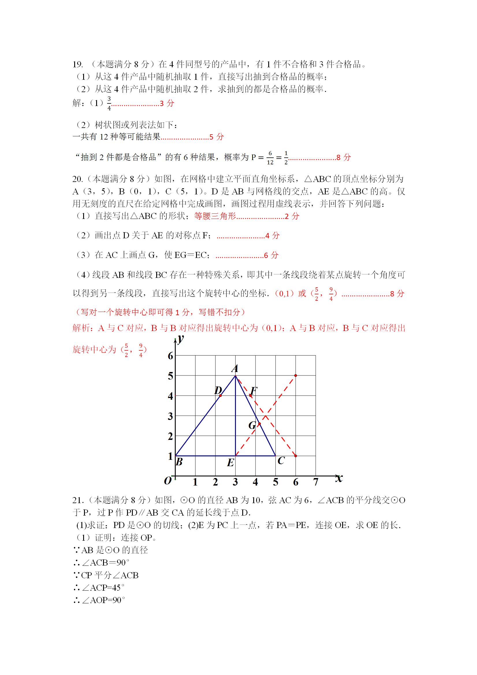 华一寄宿2021-2022学年12月学情调查九年级数学试题(高清PDF版)