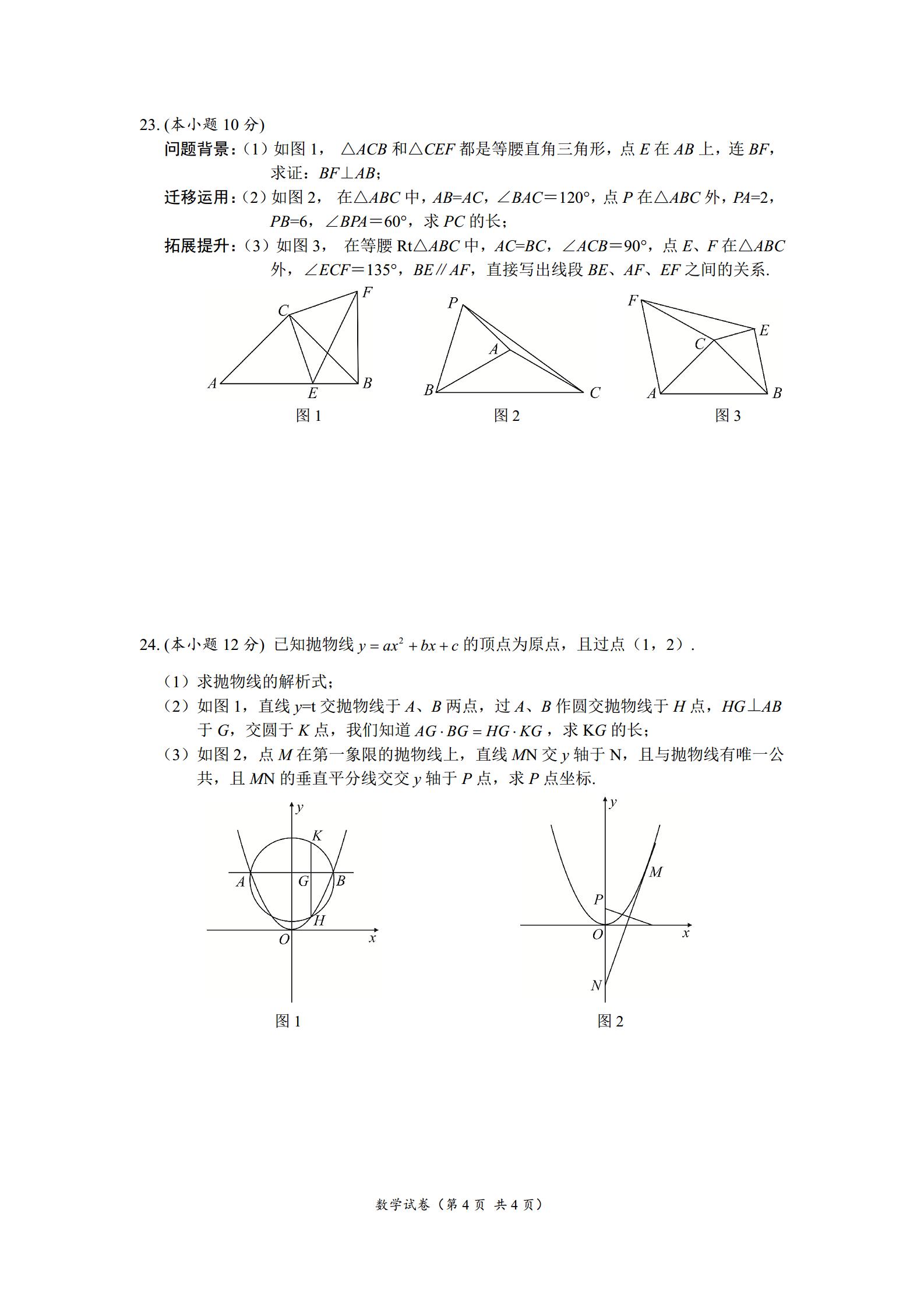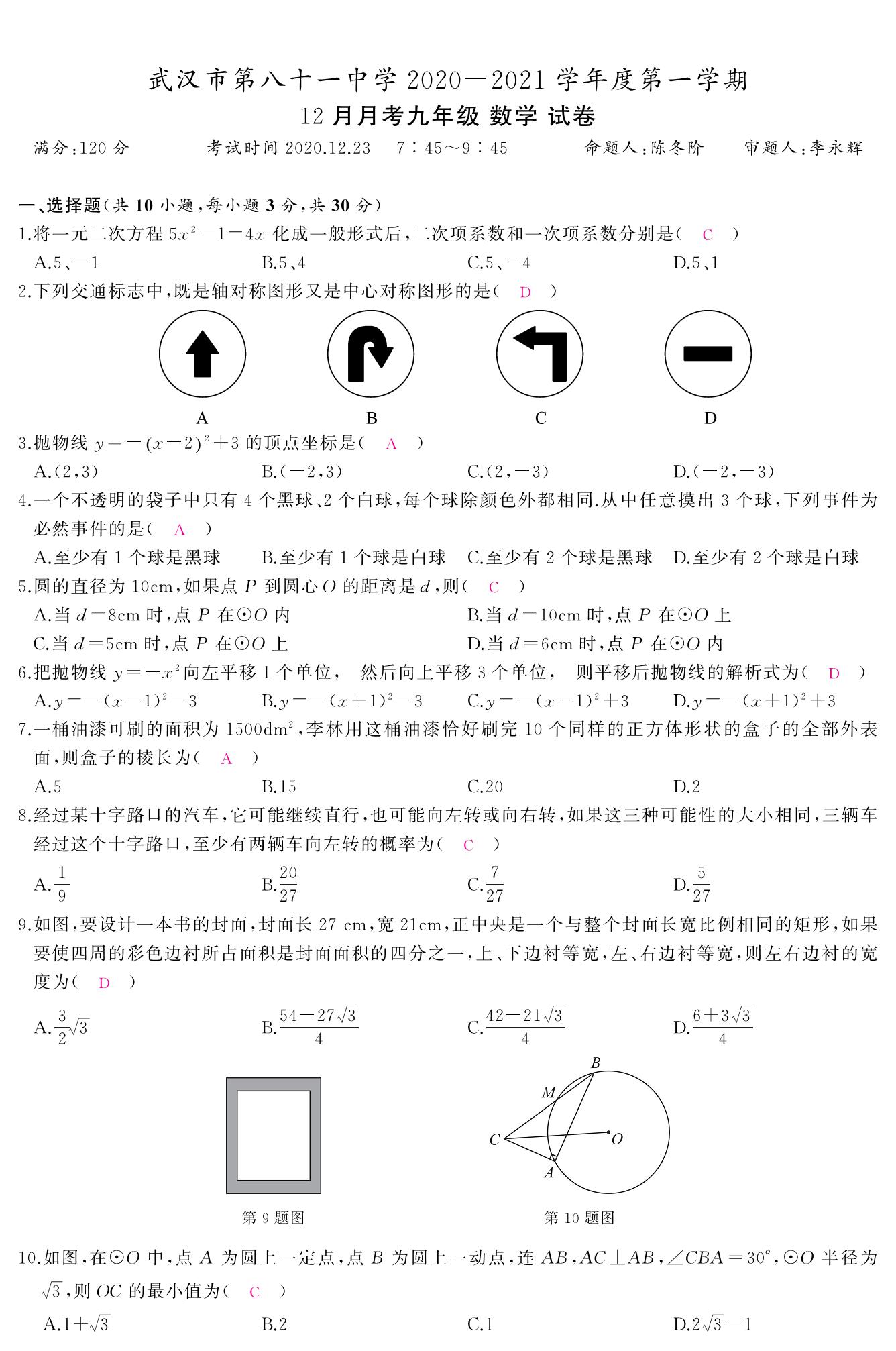 武汉市81中2021-2022学年度12月考九年级数学试题(高清PDF版含答案)
