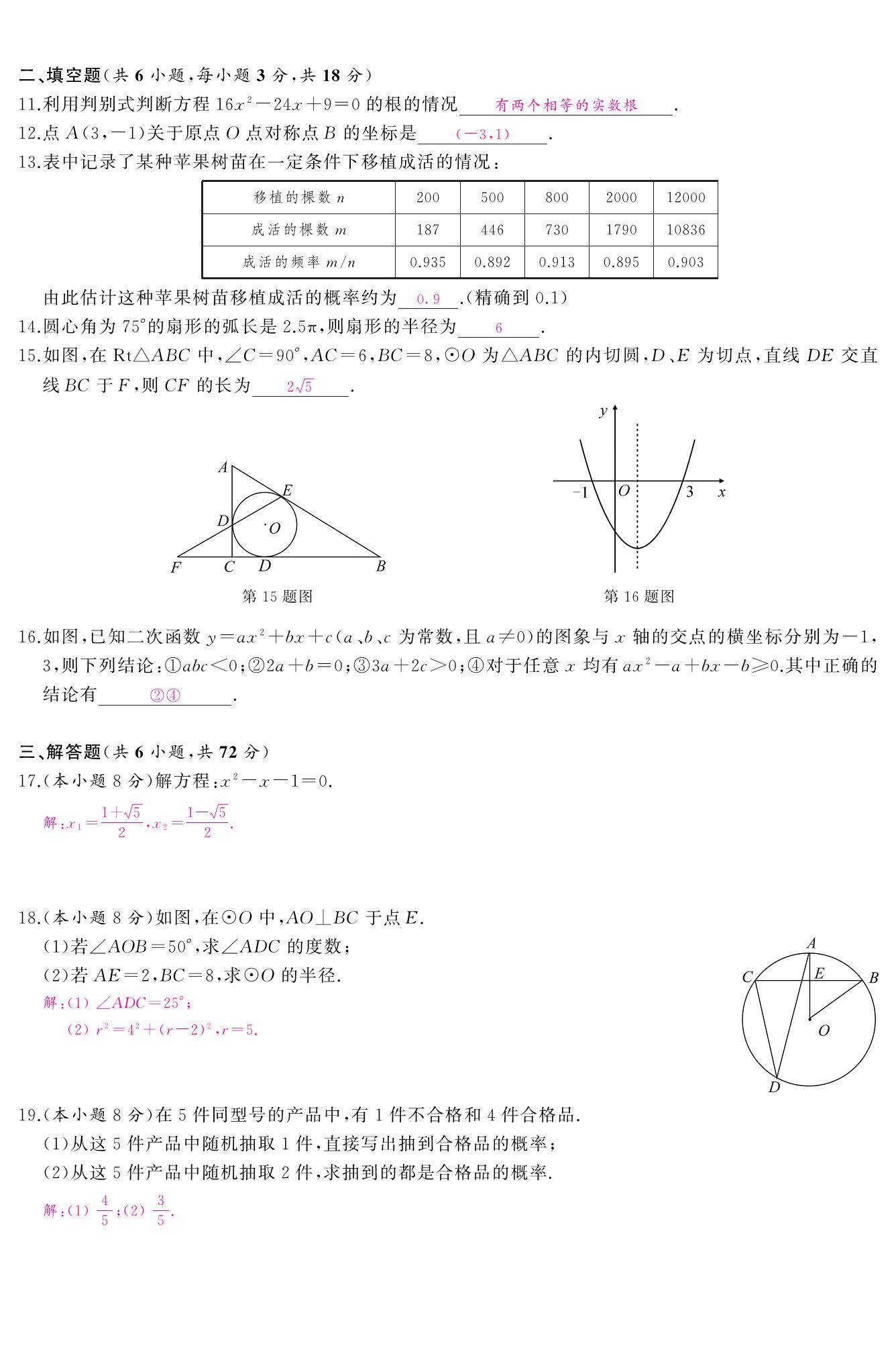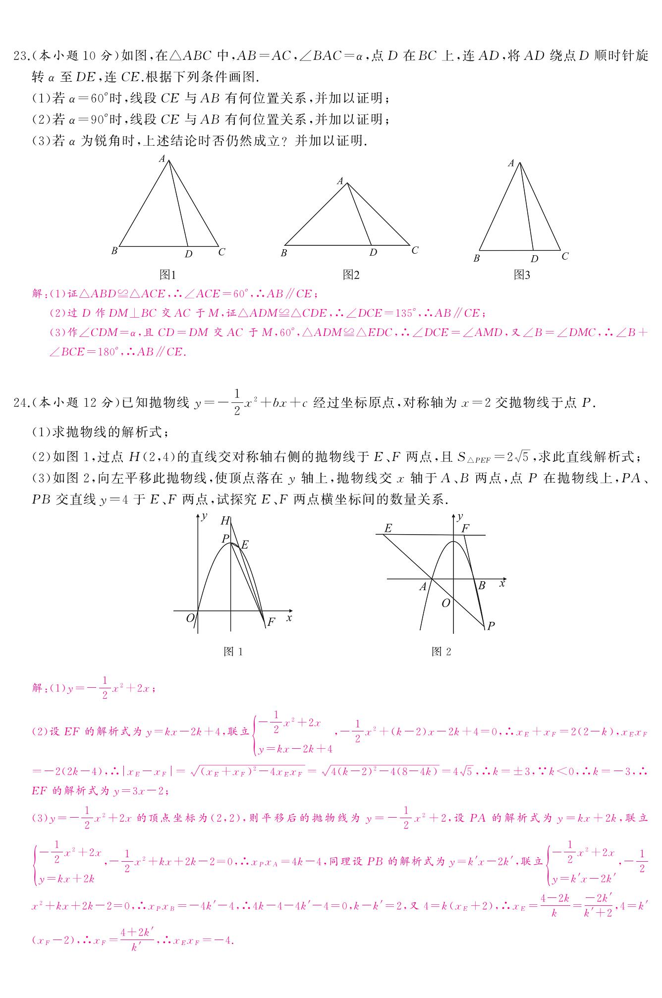 武汉二中广雅中学2021-2022学年九上数学集体作业12月18日参考答案