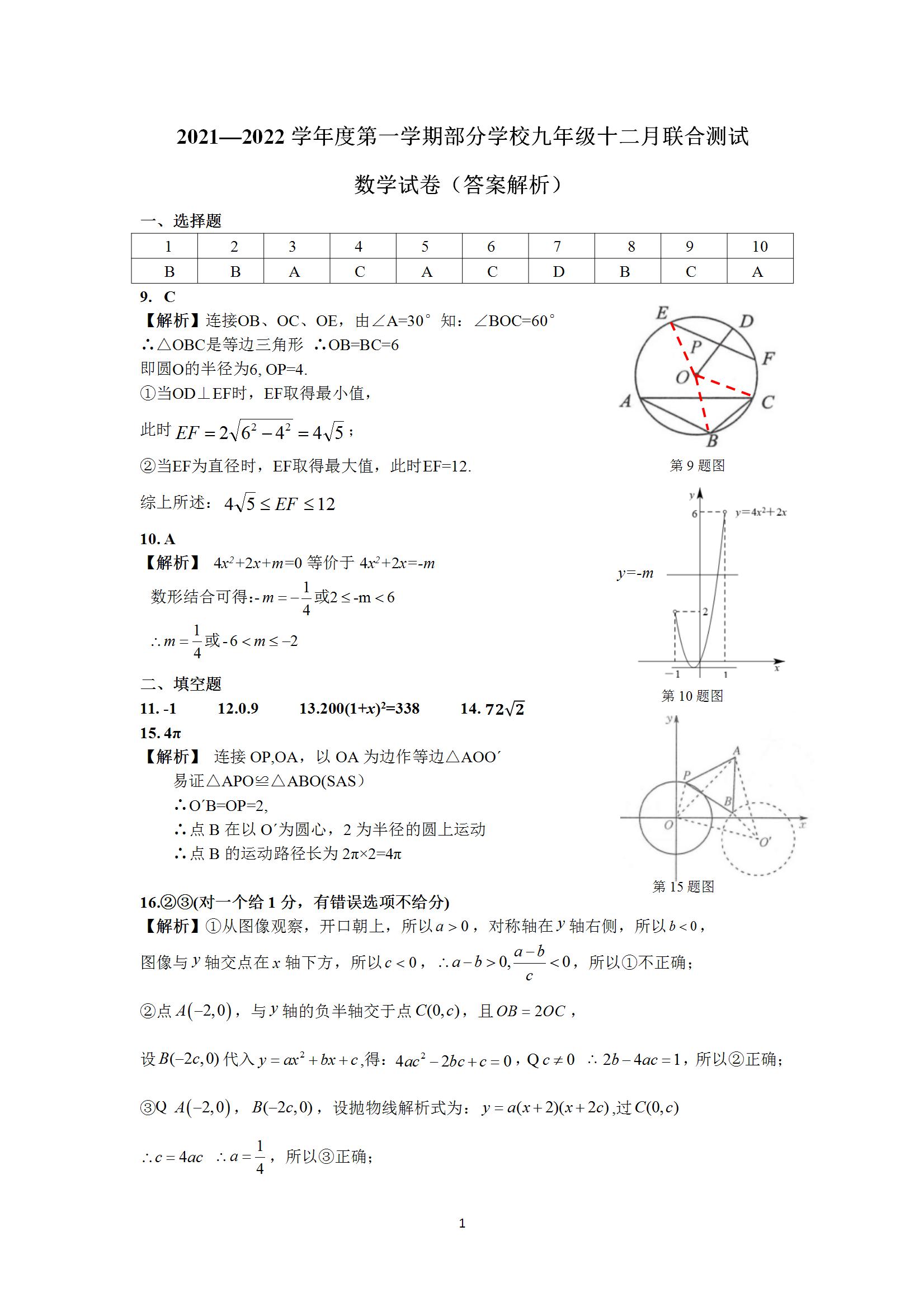 武汉市81中2021-2022学年度12月考九年级数学试题(高清PDF版含答案)