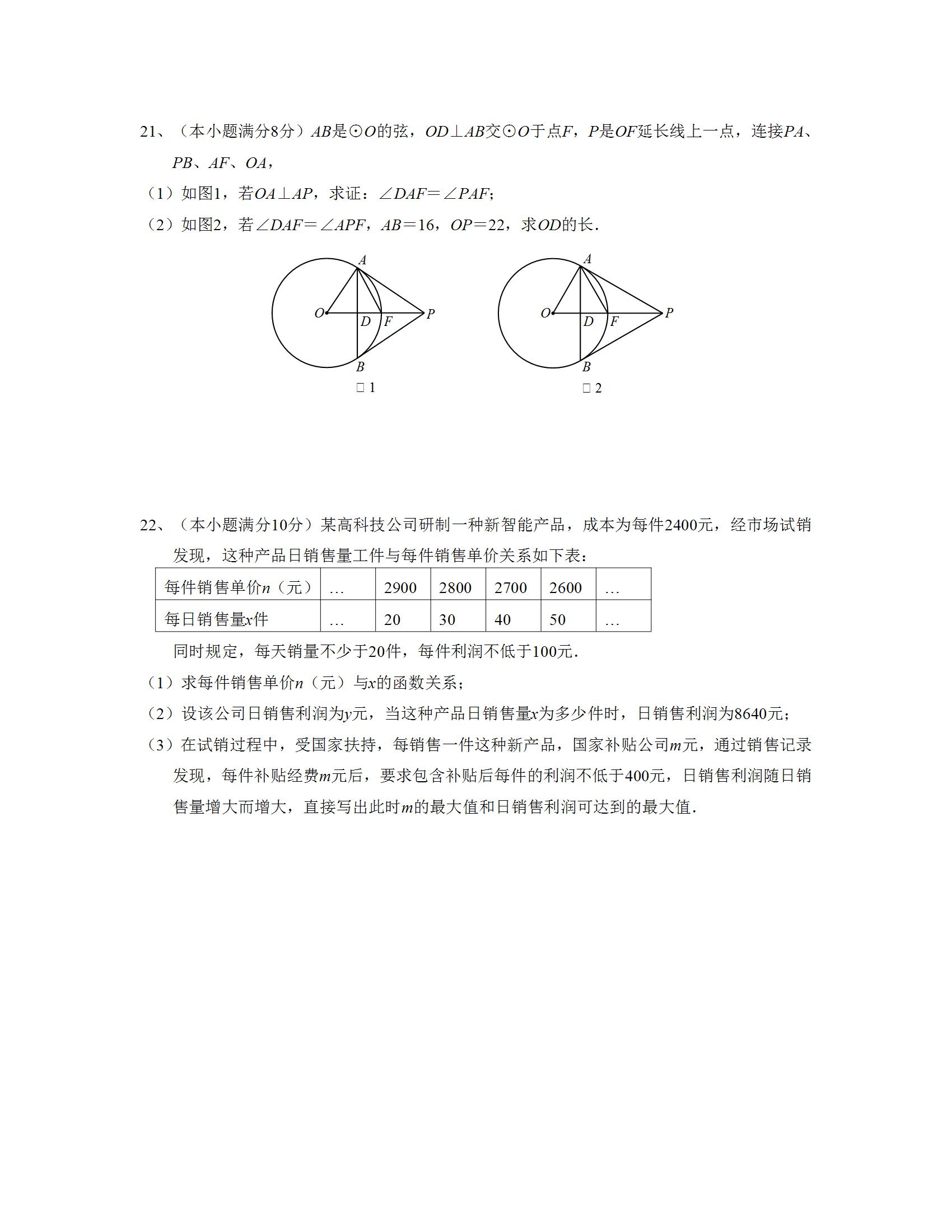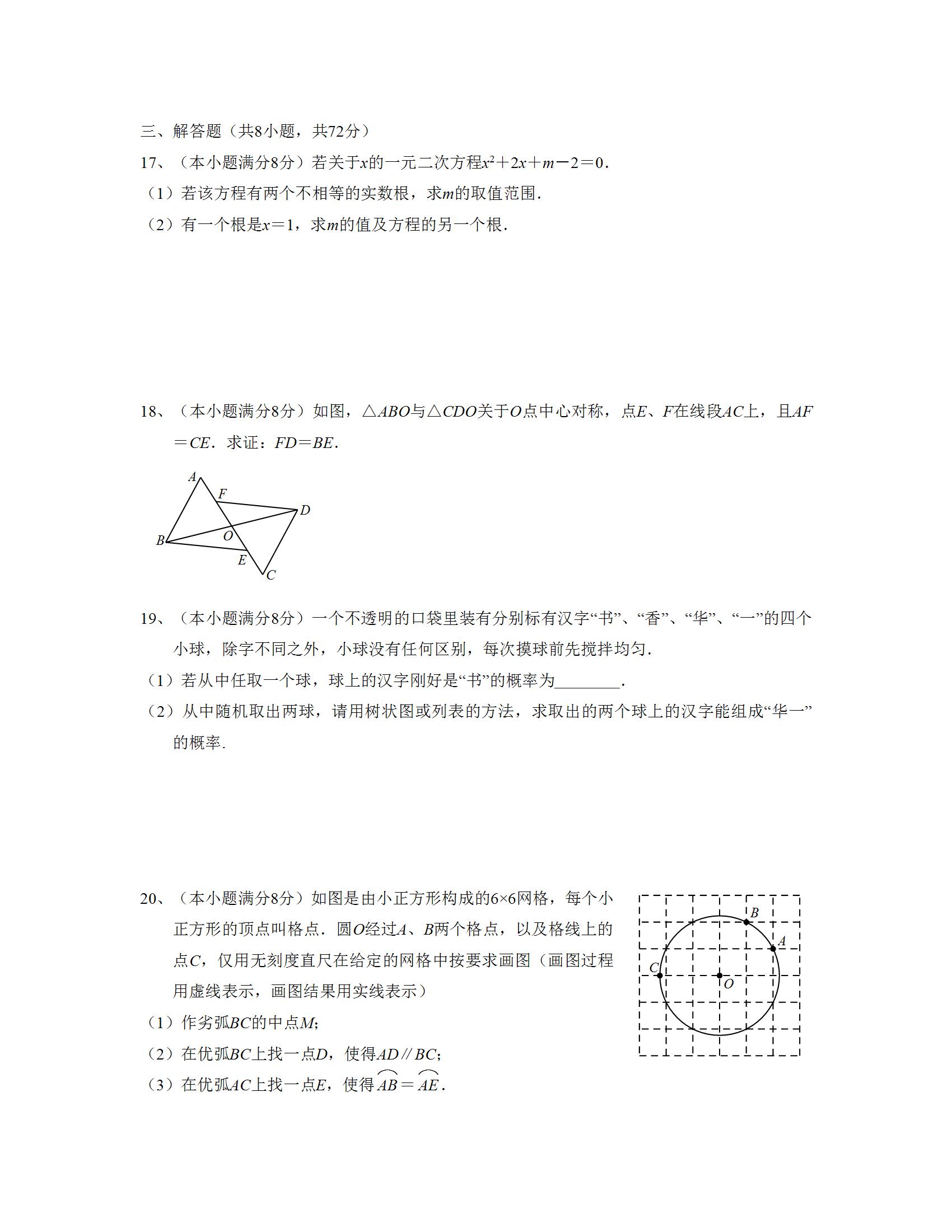 华一寄宿2021-2022学年12月学情调查九年级数学试题(word版)