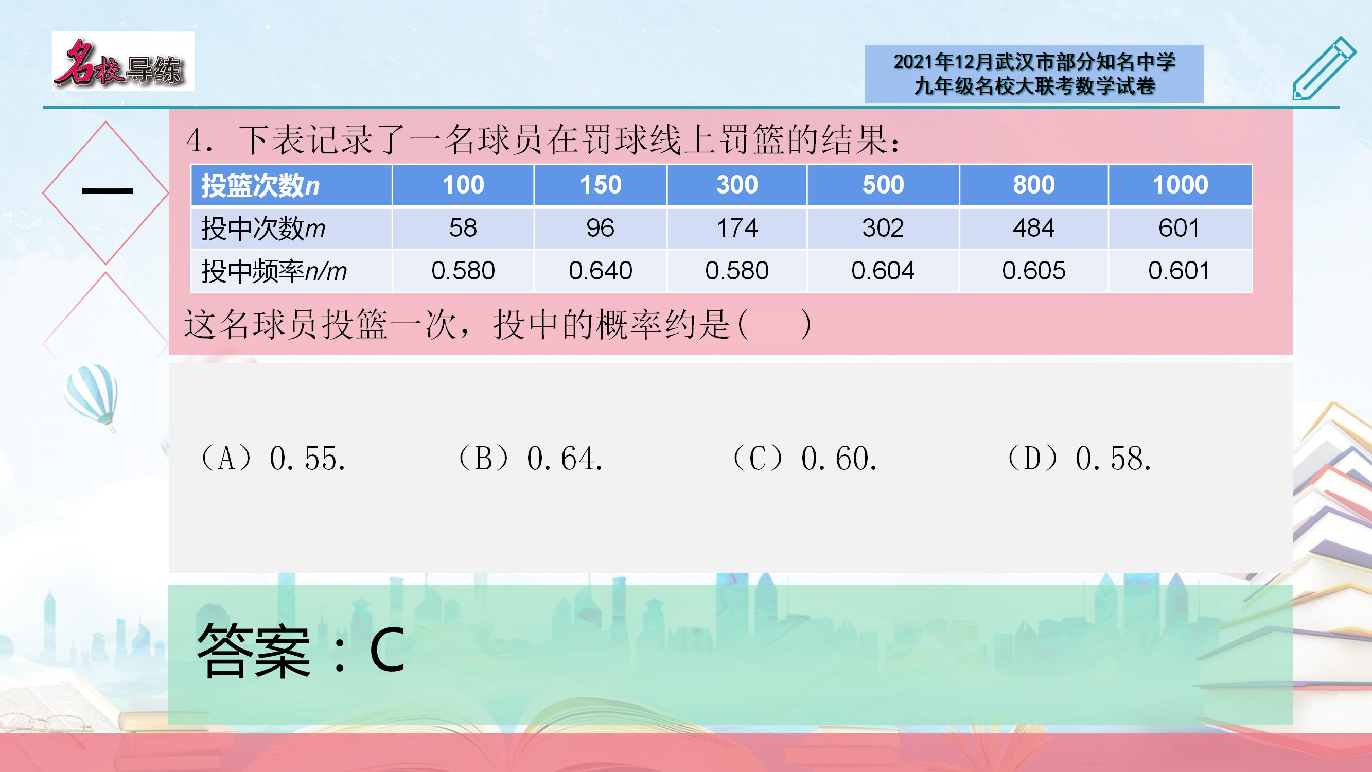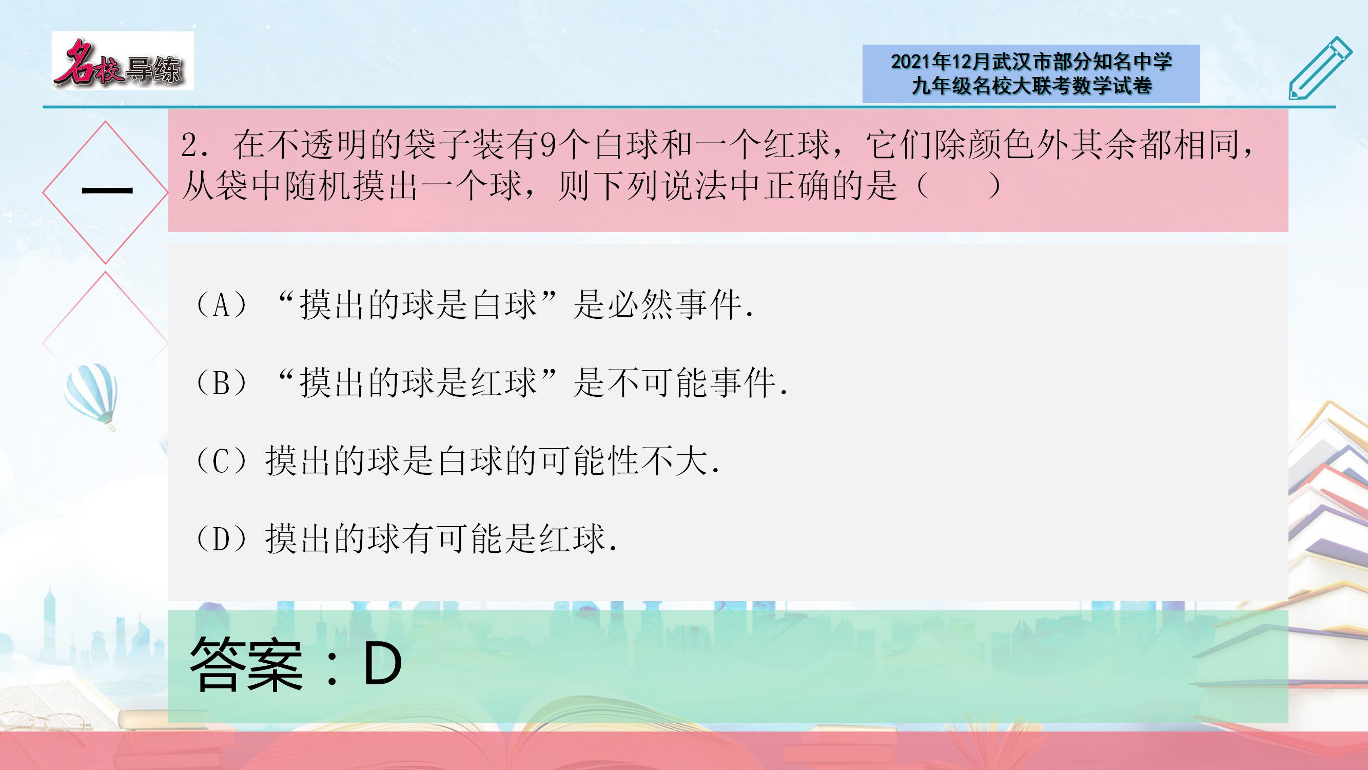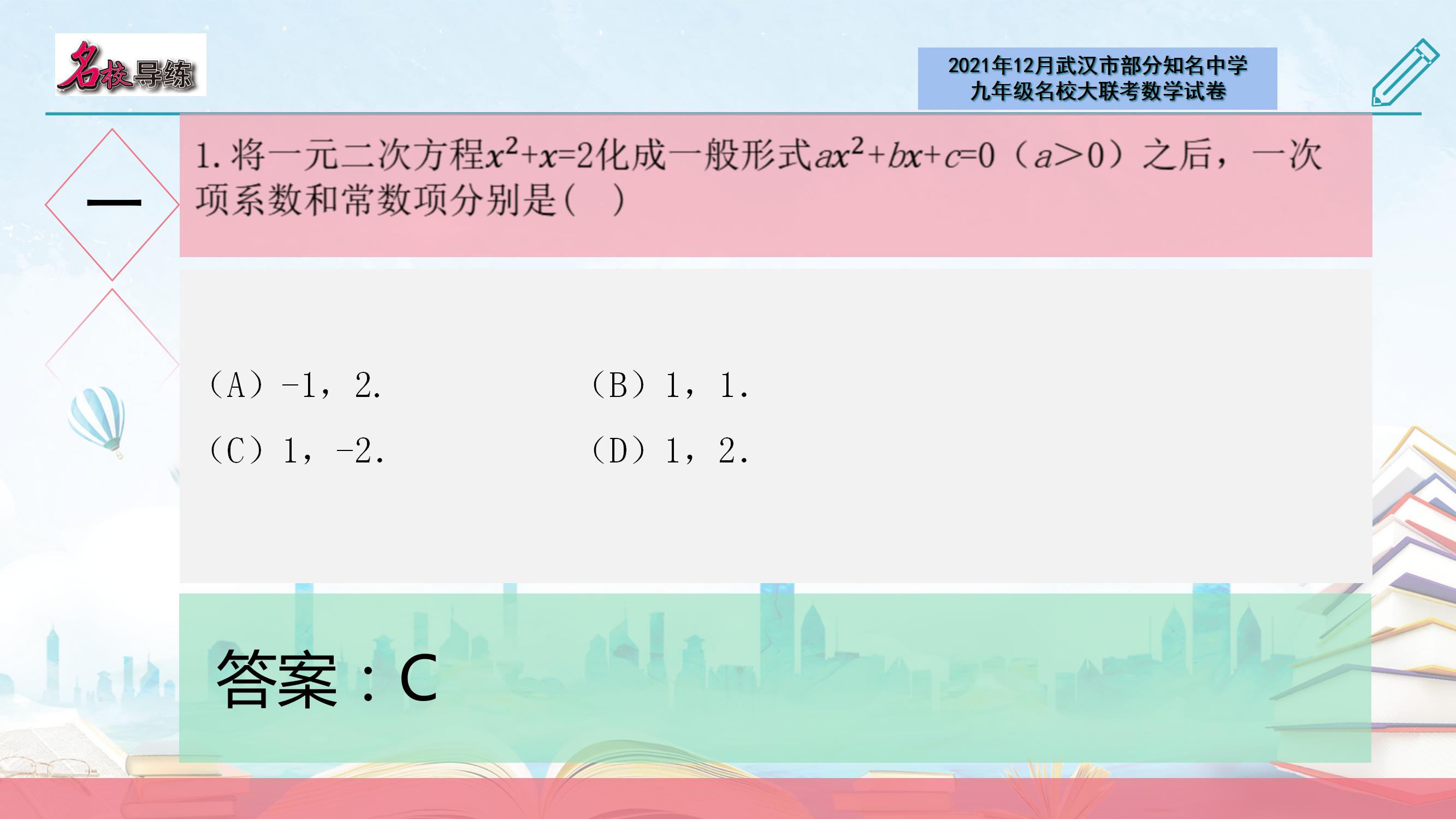 武汉市部分名校2021年12月联考九年级数学试题PPT讲解