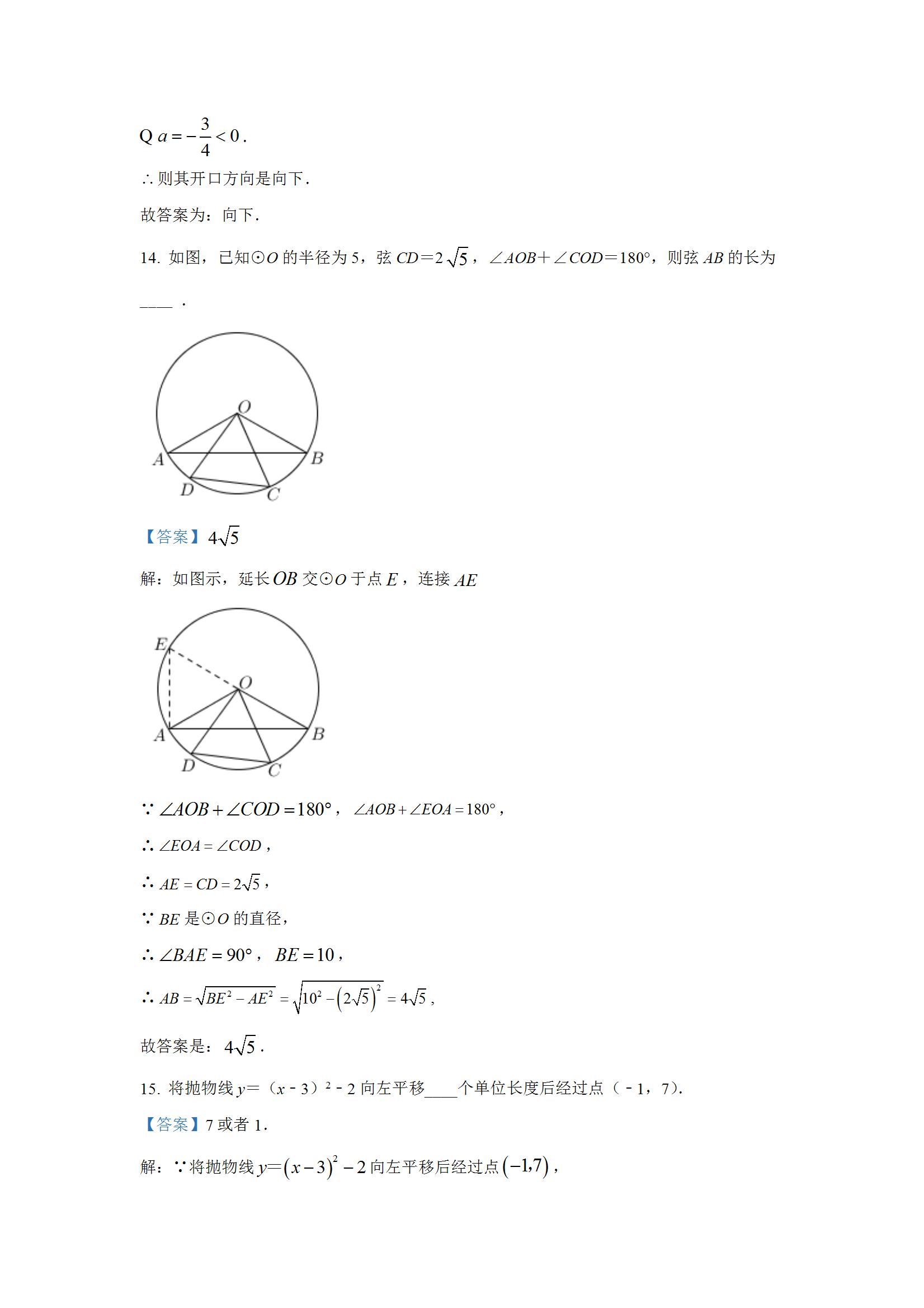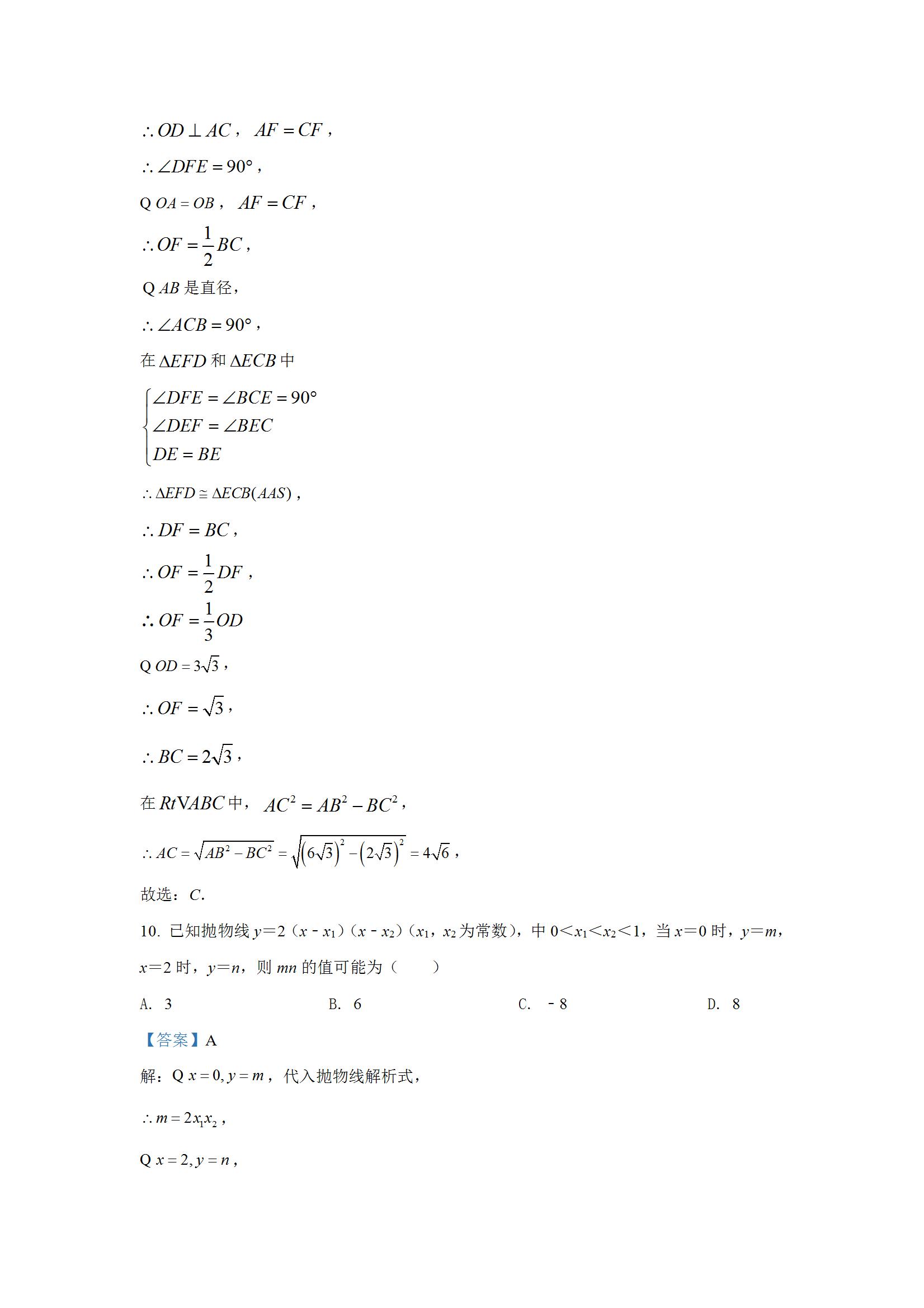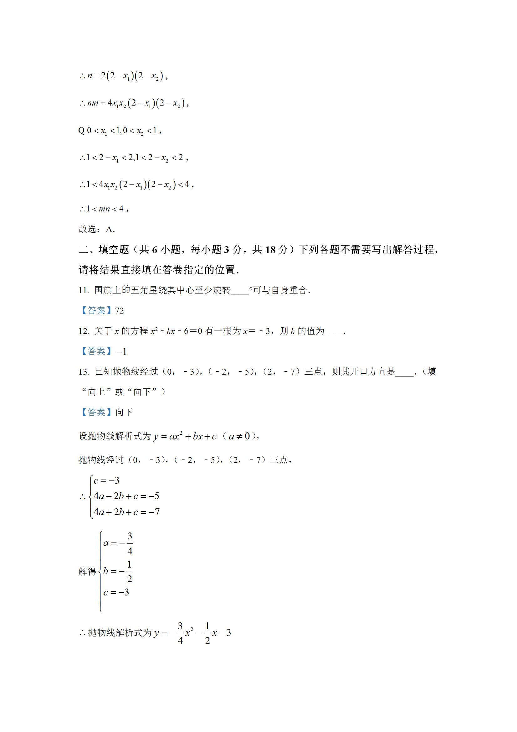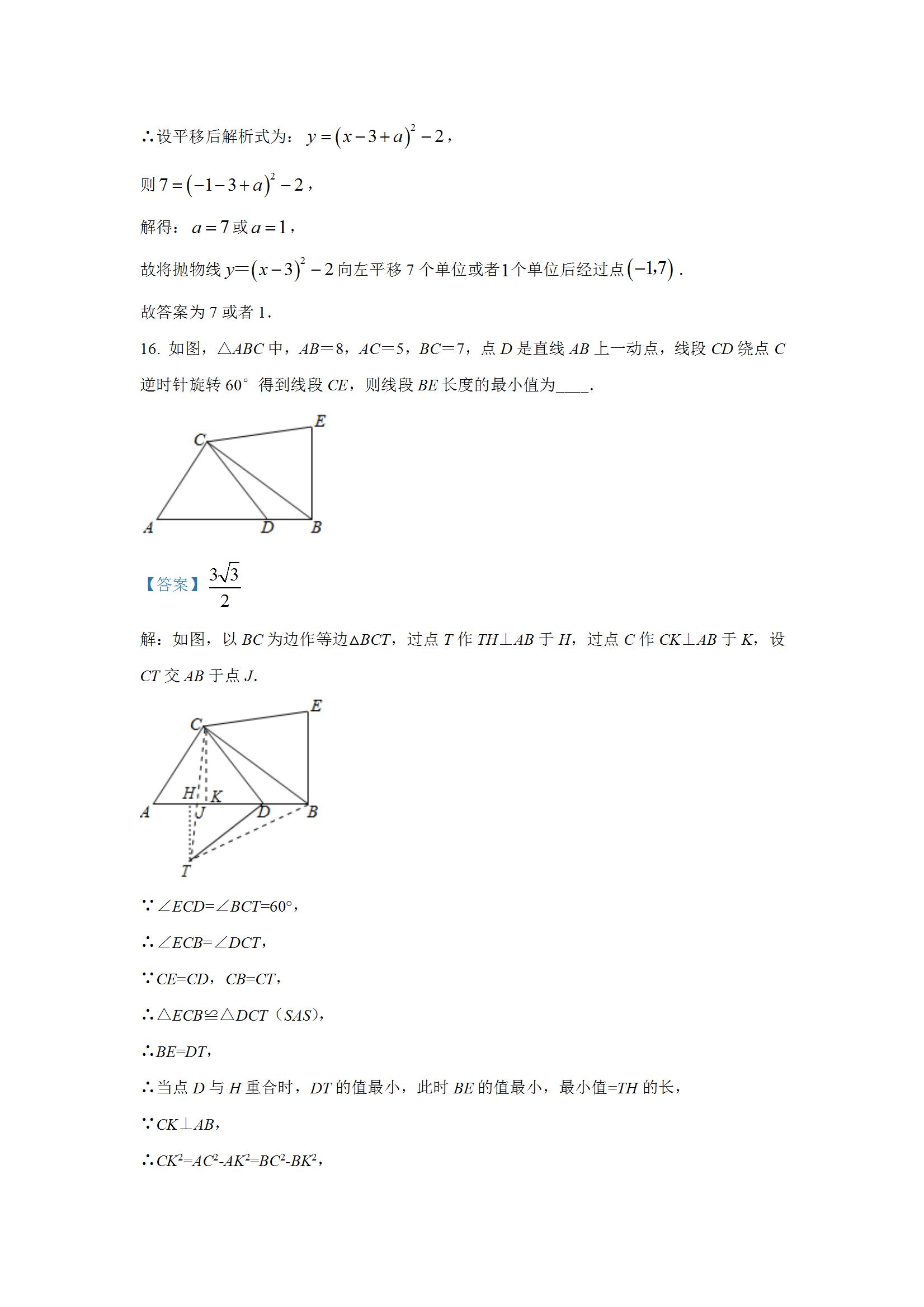 、武汉一初慧泉2021-2022学年度10月九年级数学试题(解析版)
