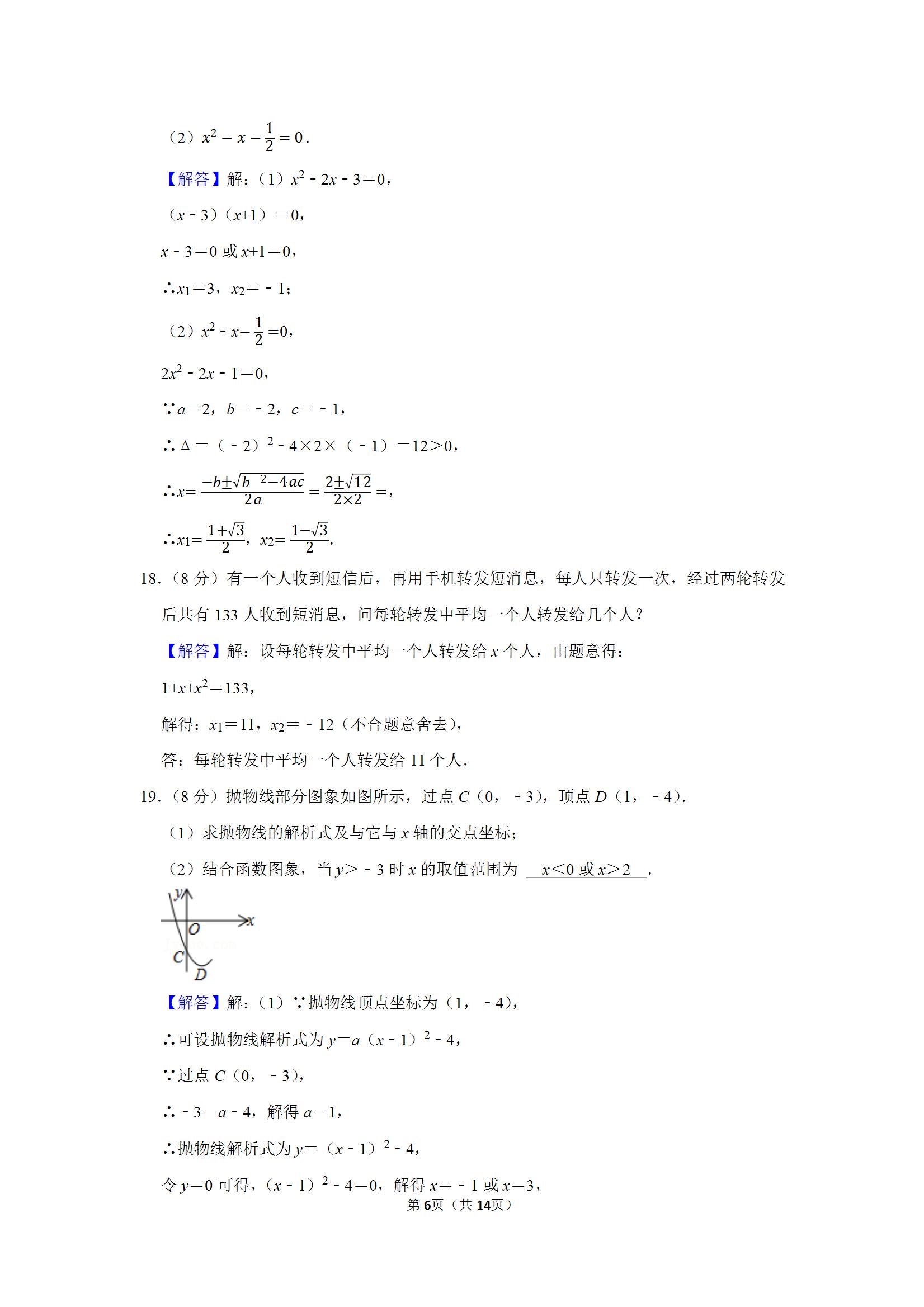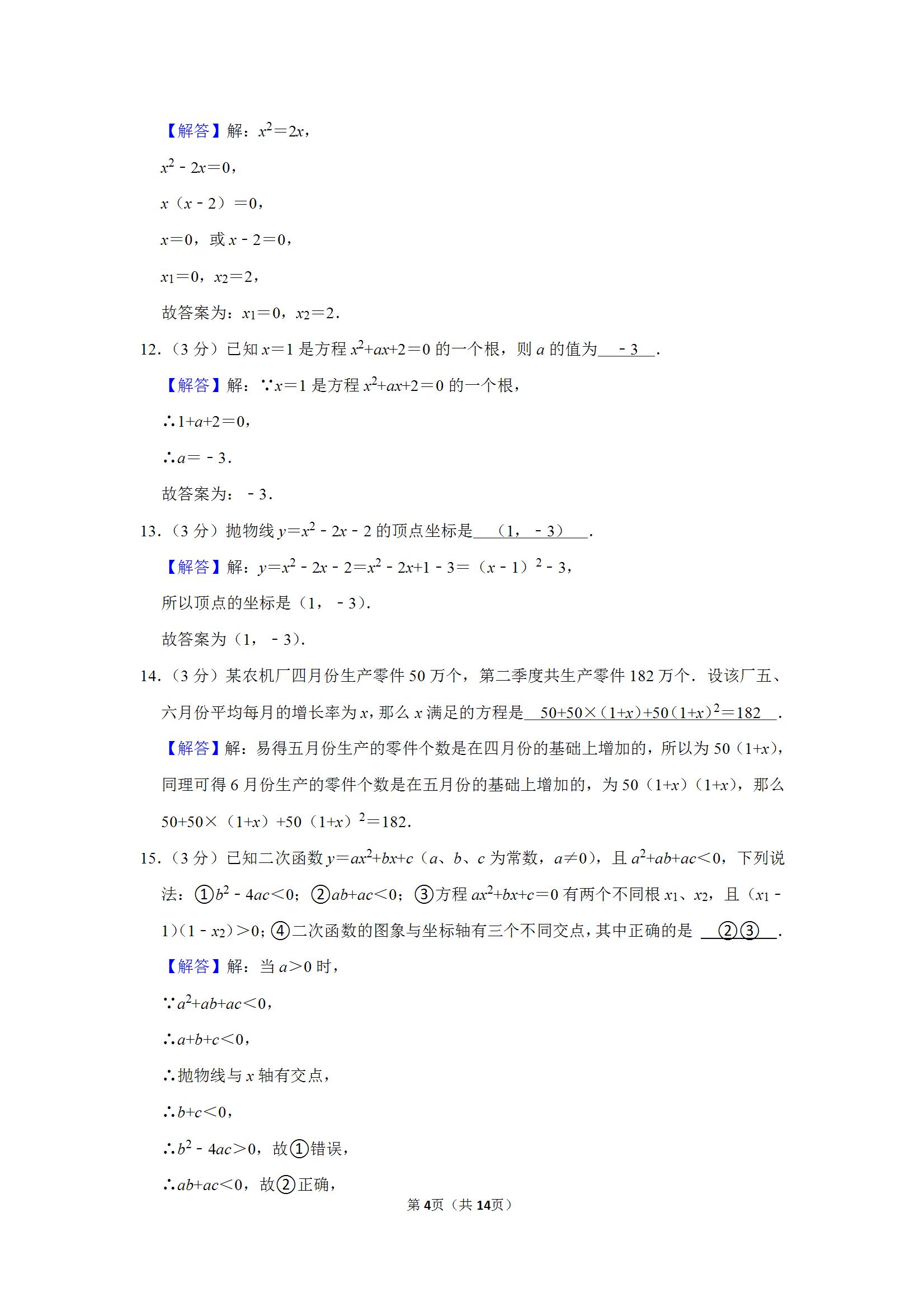 武钢实验学校2021-2022学年九上10月考数学试卷(解析版)