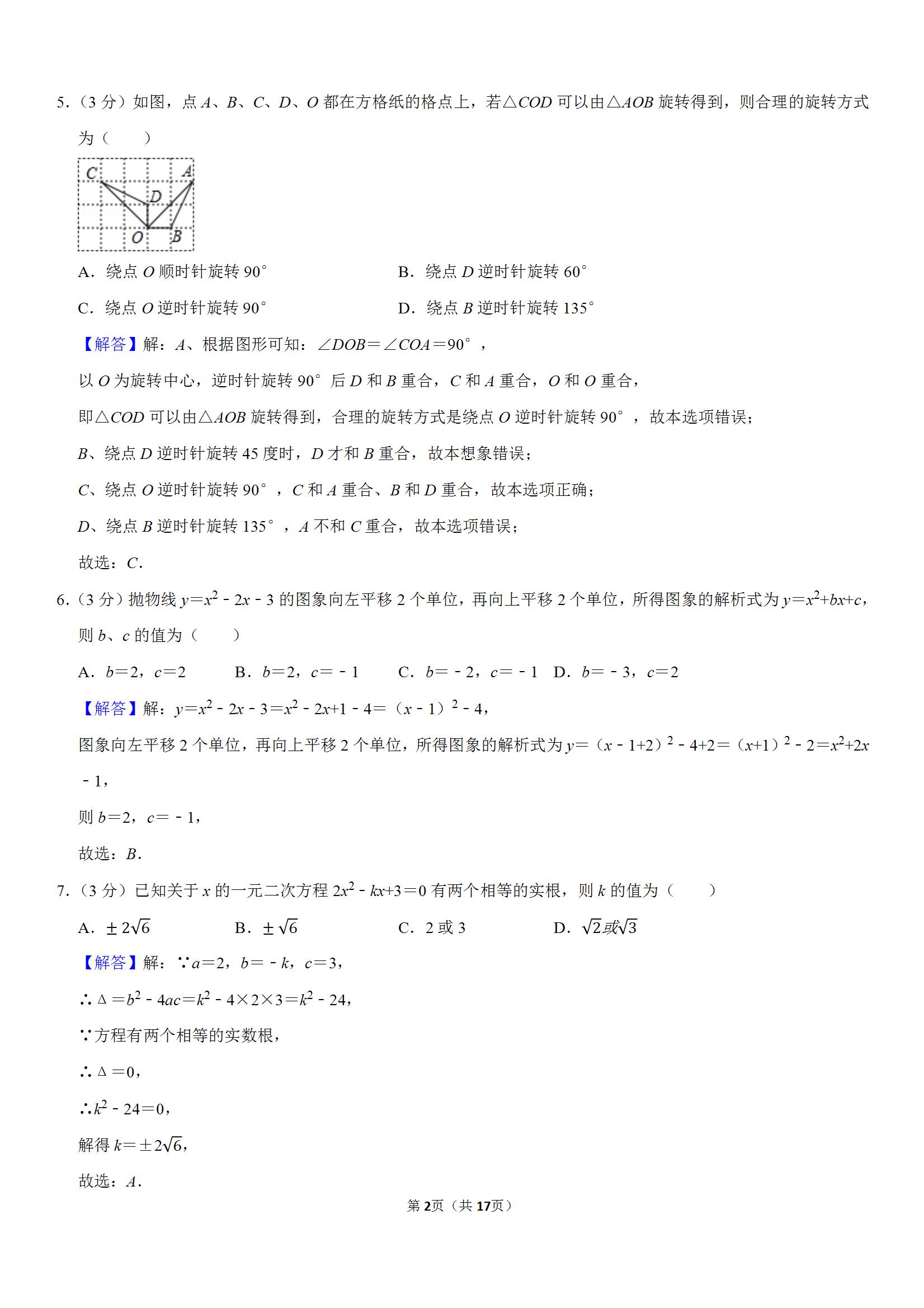 武汉二中广雅中学2021-2022学年九上数学练习(一)(解析版)