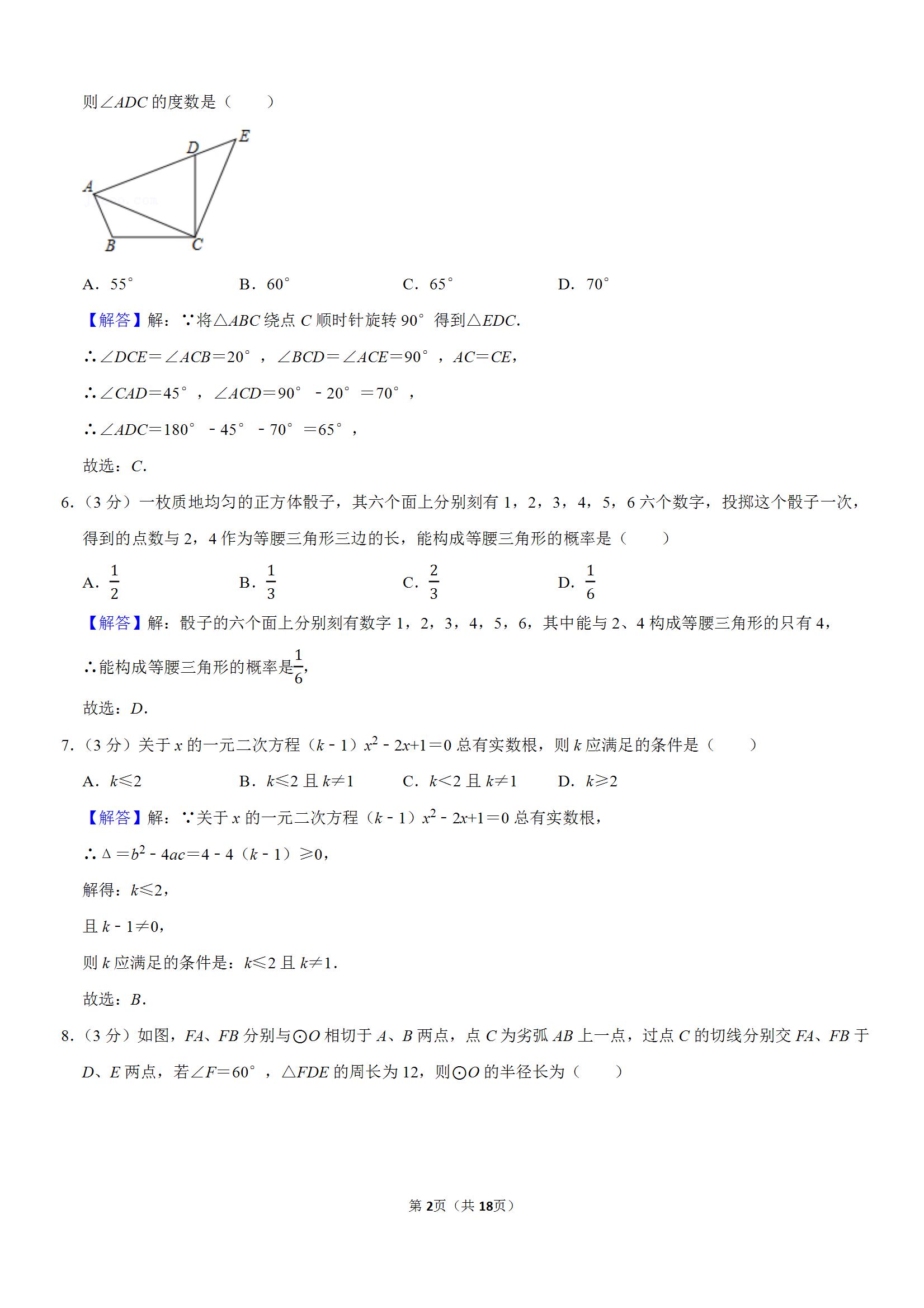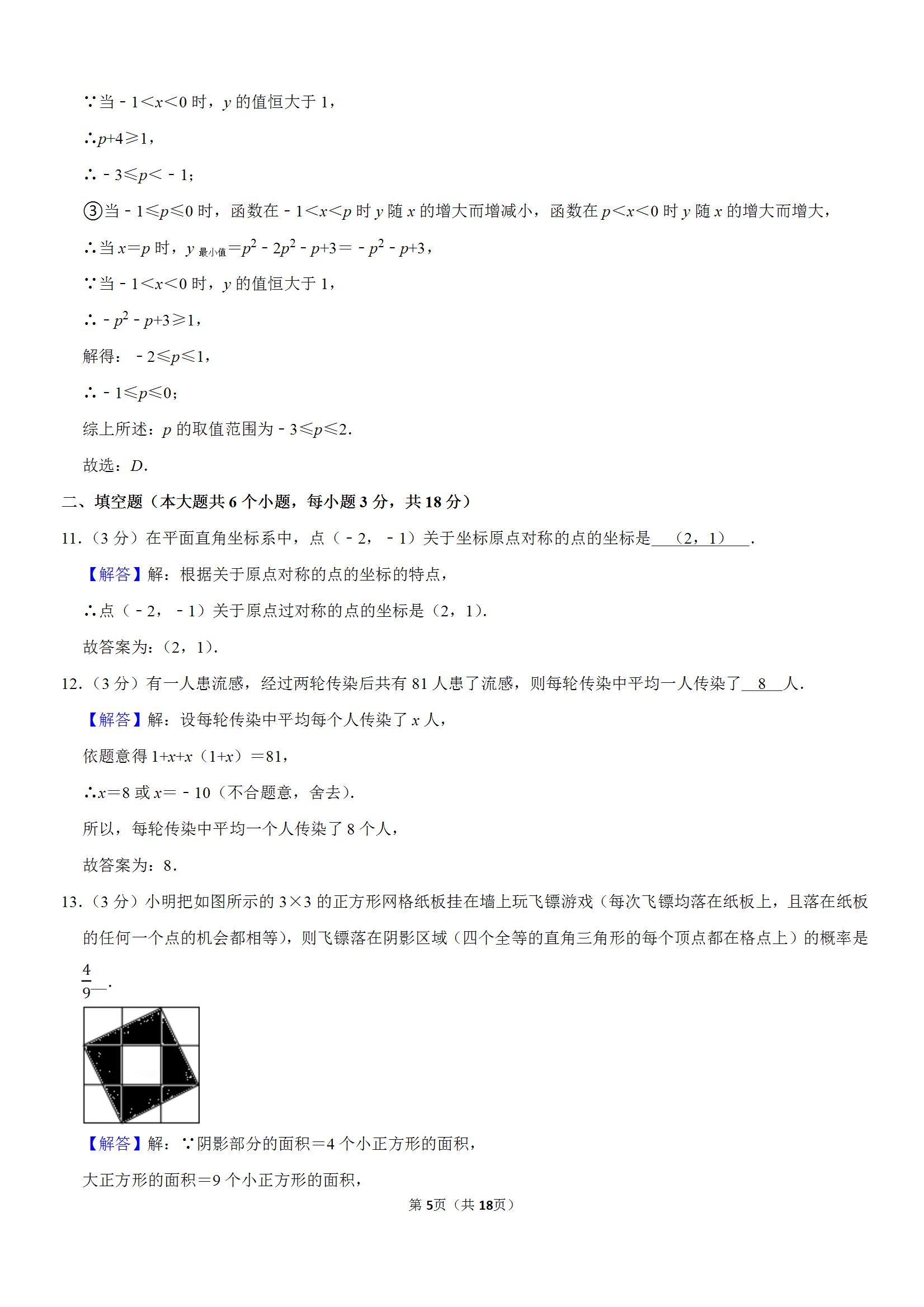 七一华源中学2021-2022学年九上12月归纳小结数学试卷(解析版)
