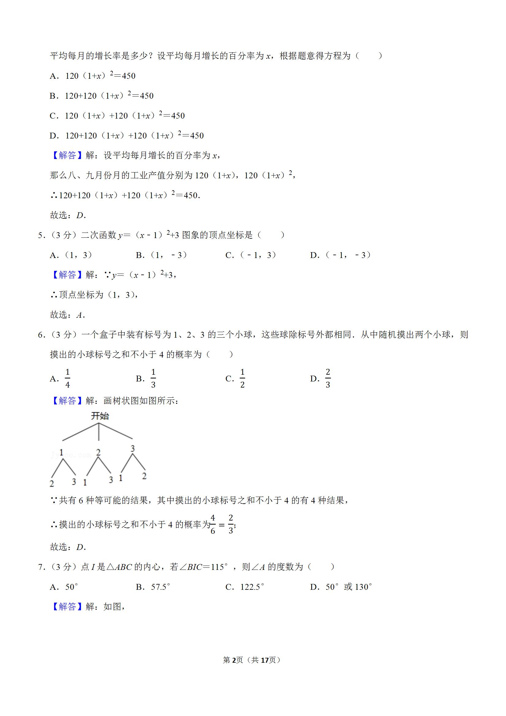 武汉市第三寄宿2021-2022学年九上12月考数学试卷(解析版)