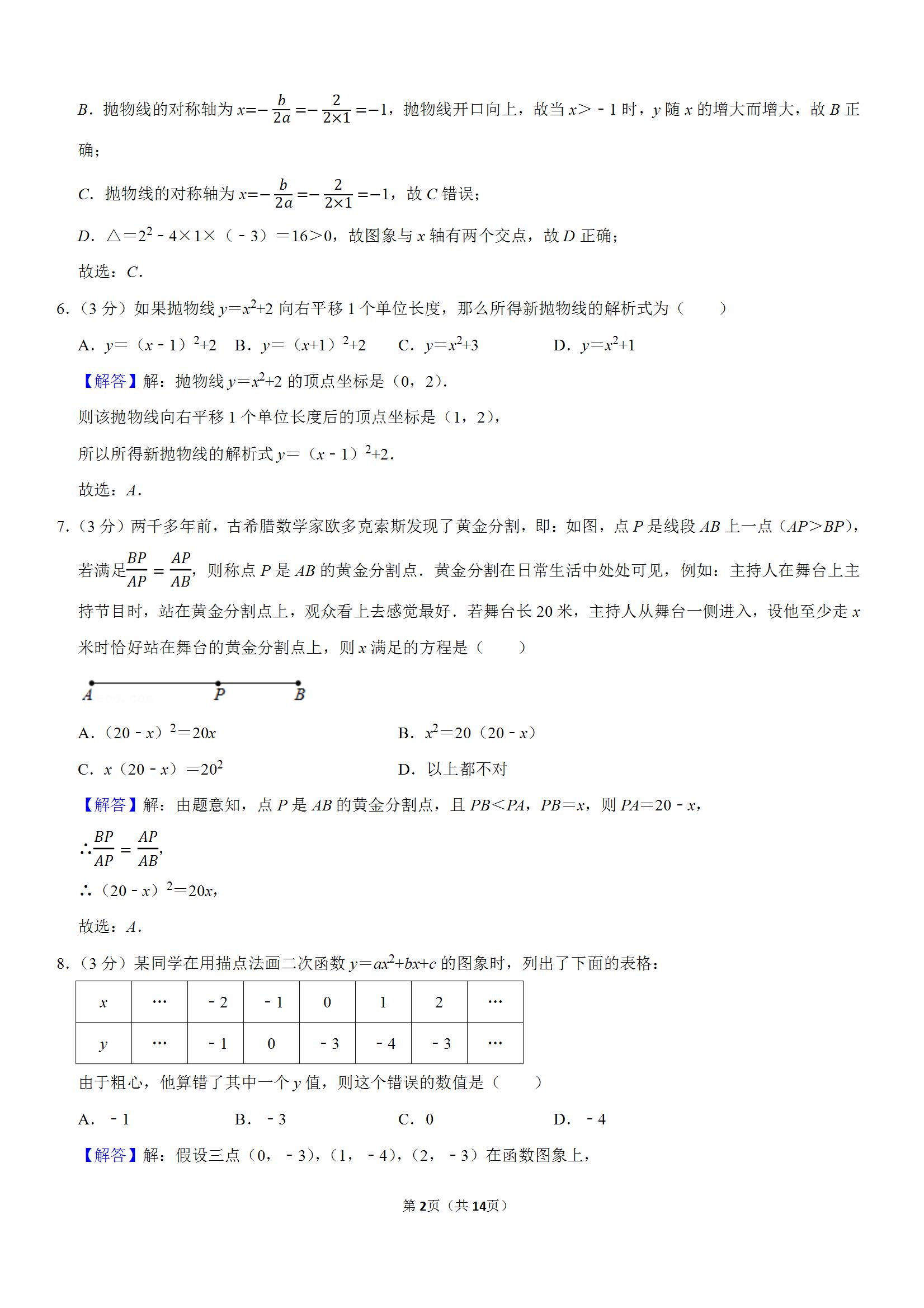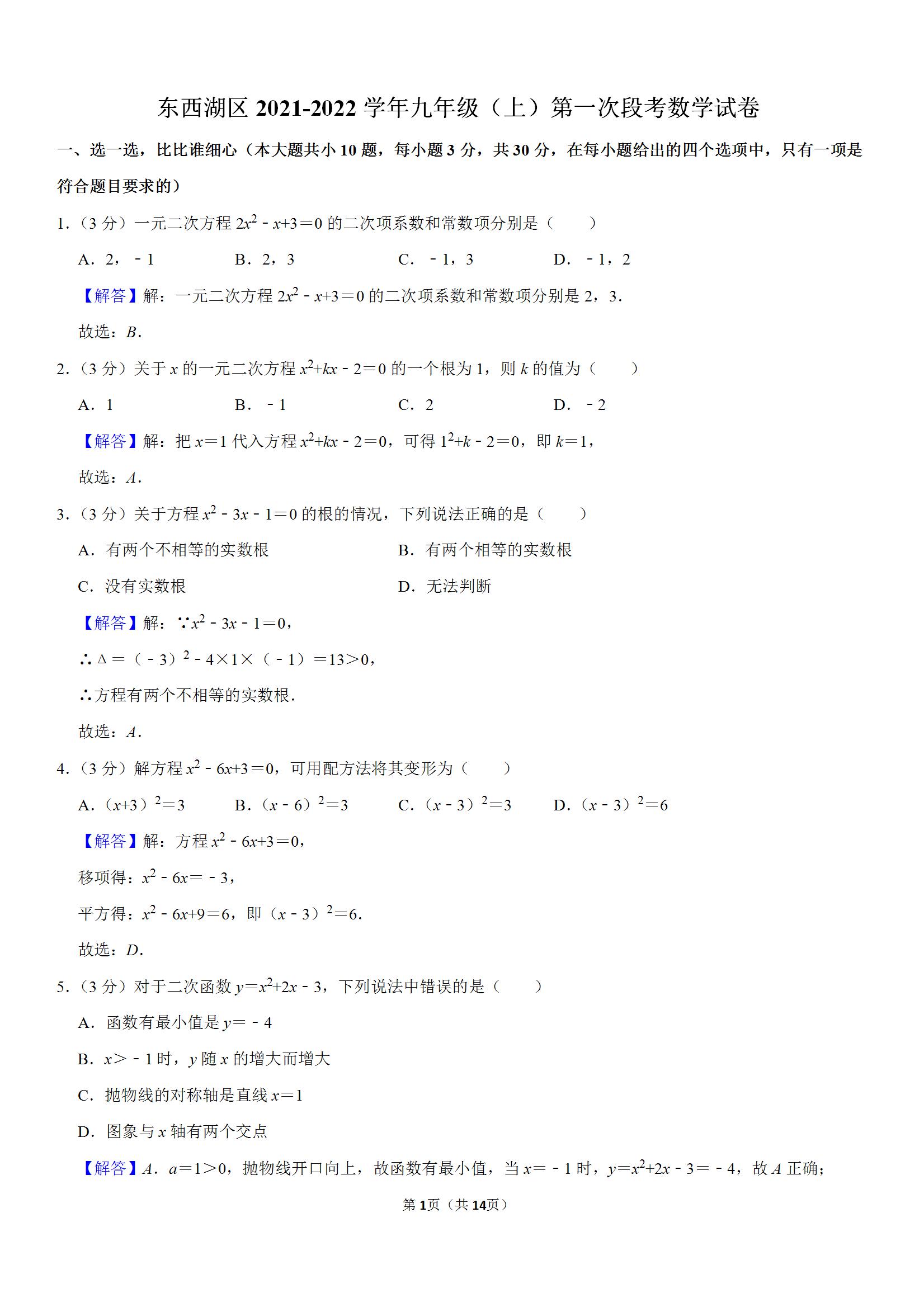 东西湖区2021-2022学年九年级(上)第一次段考数学试卷(解析版)