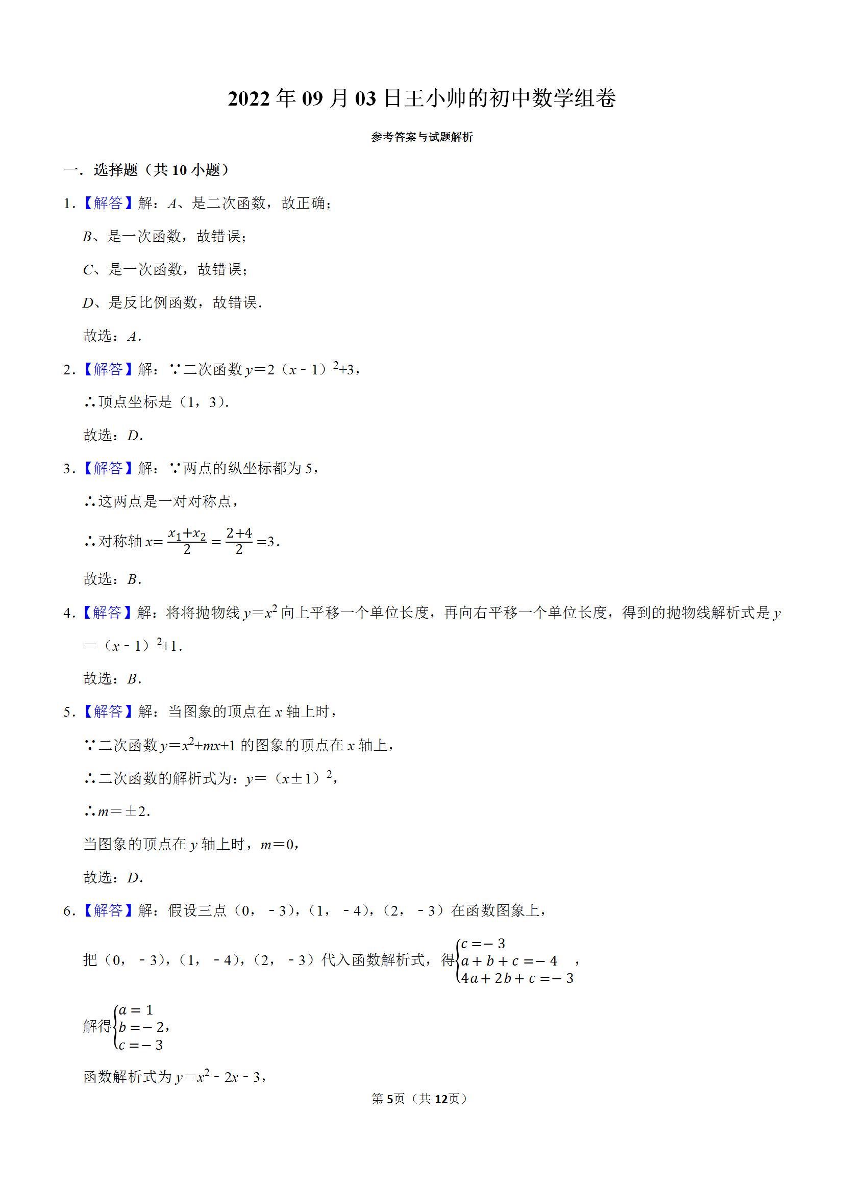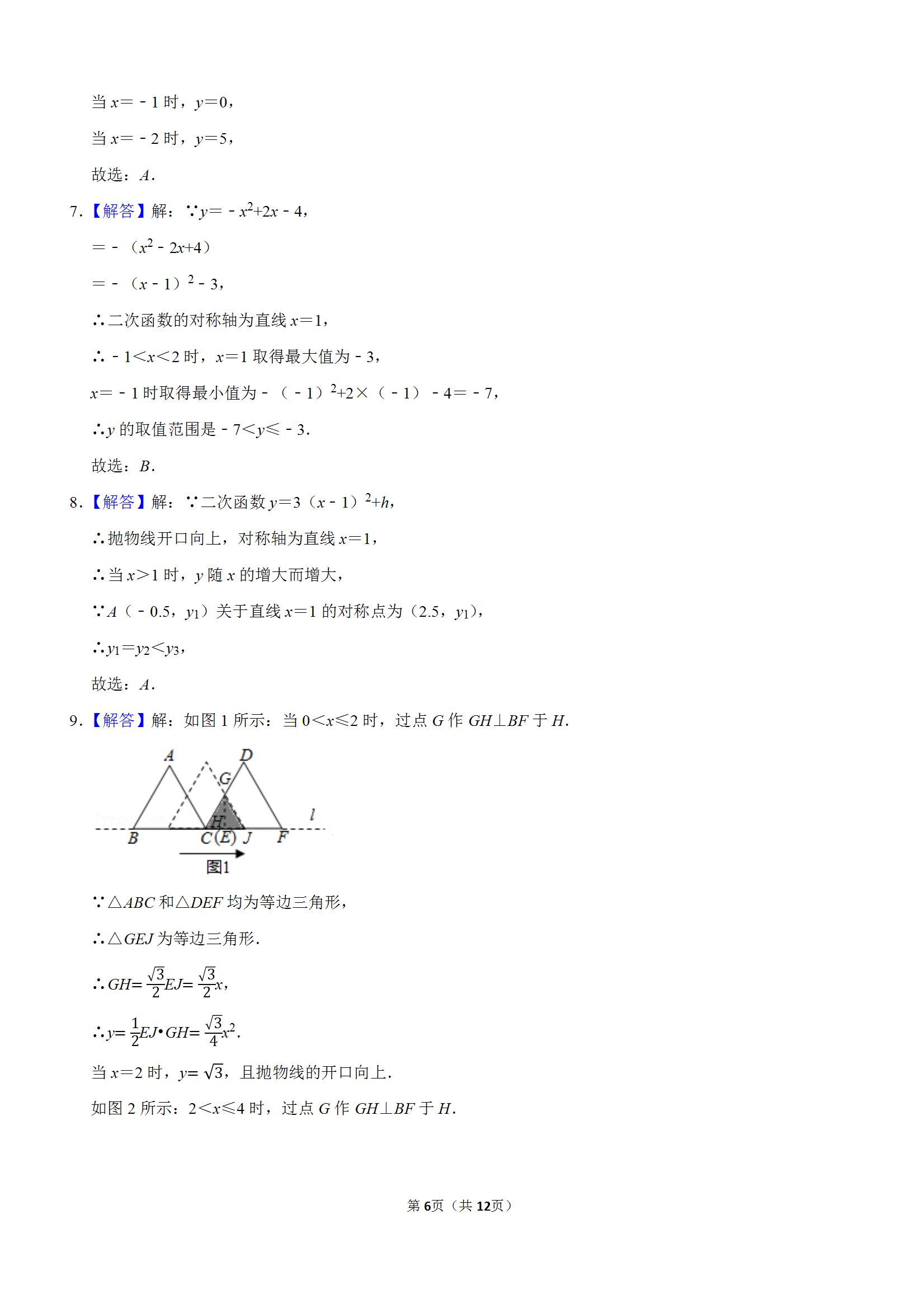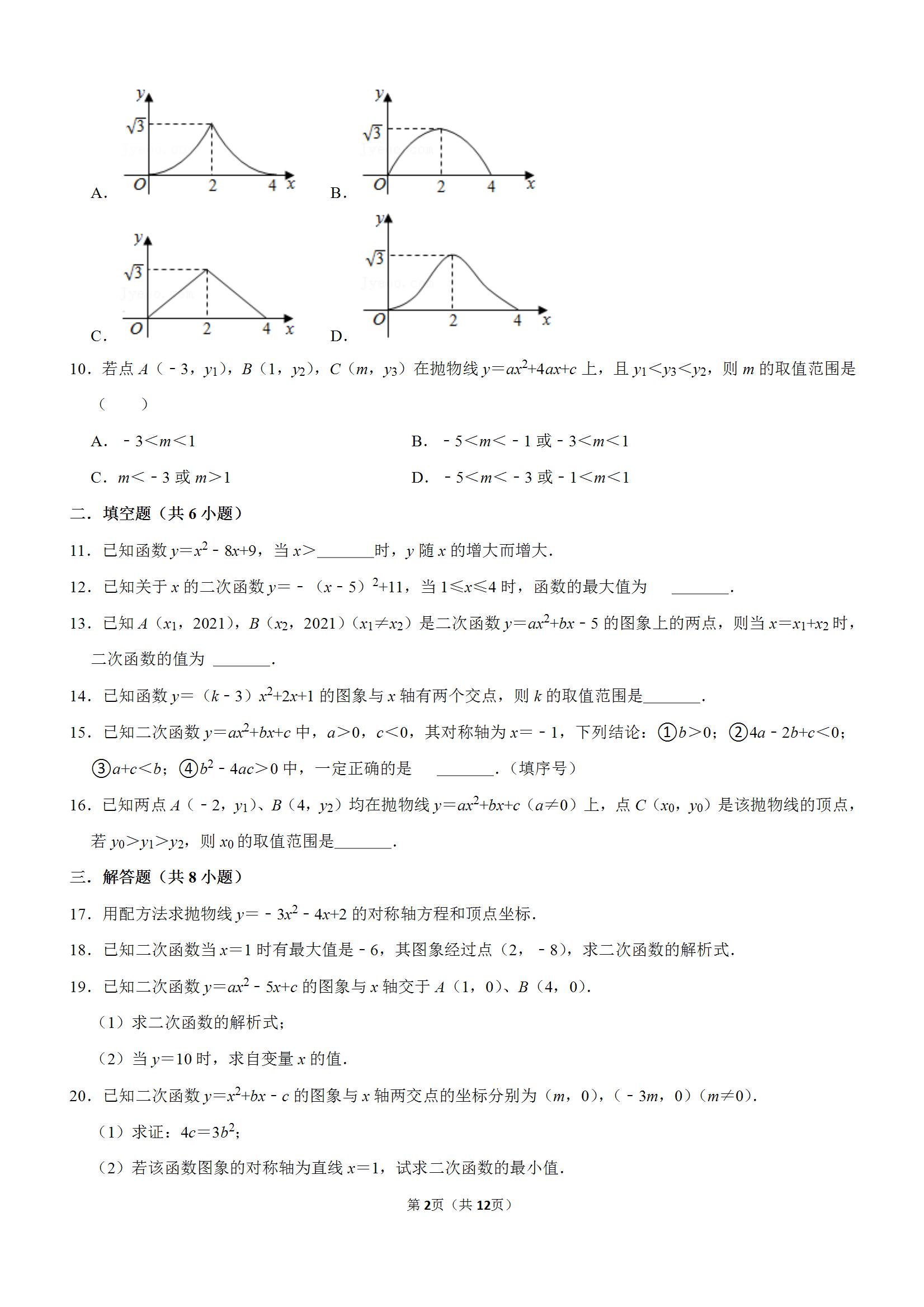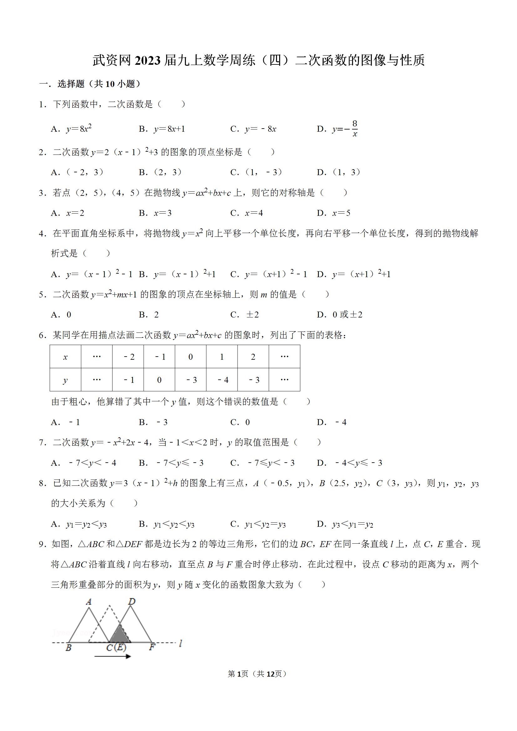 武资网2023届九上数学周练(四)二次函数的图像与性质(word版含答案)