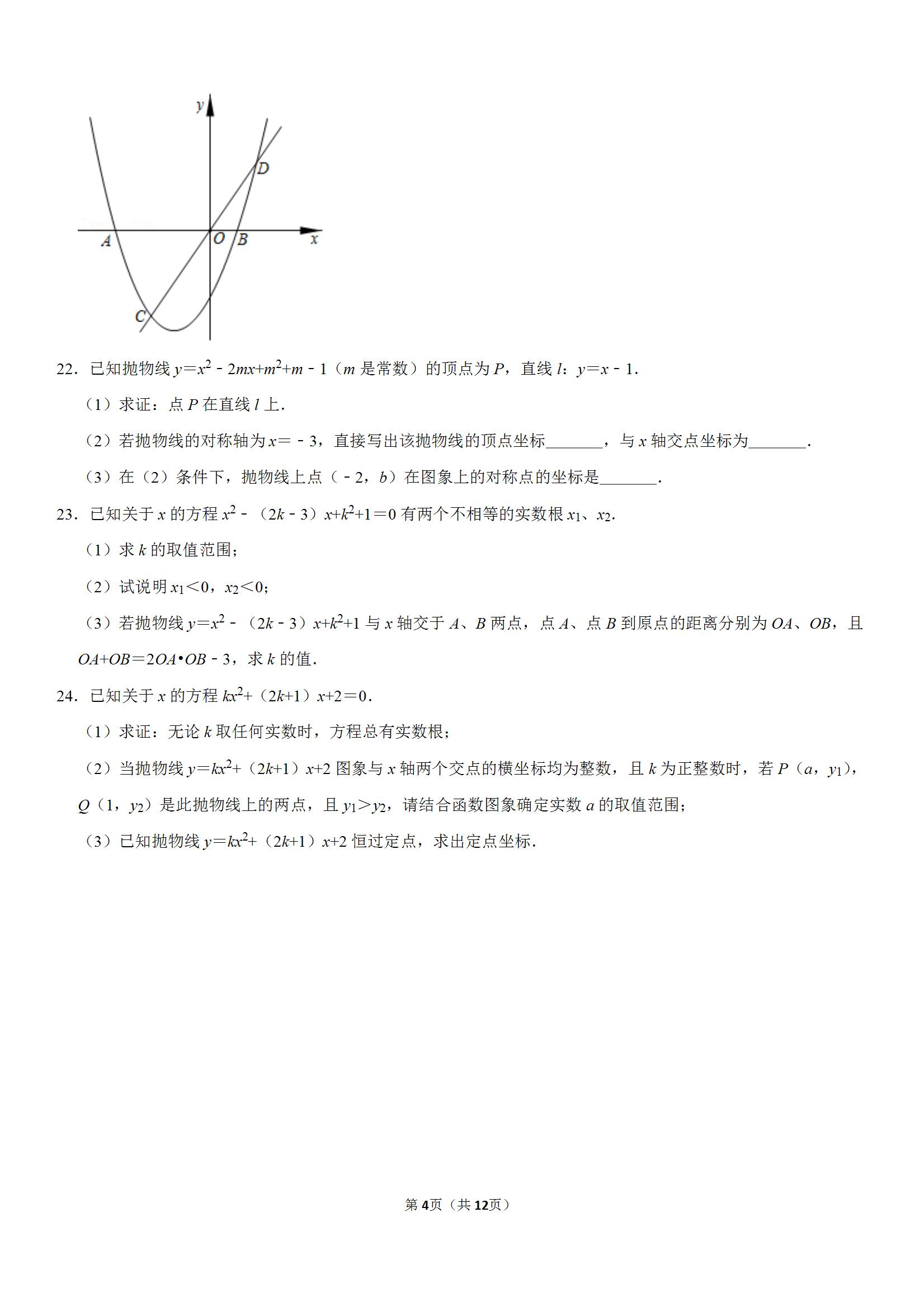 武资网2023届九上数学周练(四)二次函数的图像与性质(word版含答案)