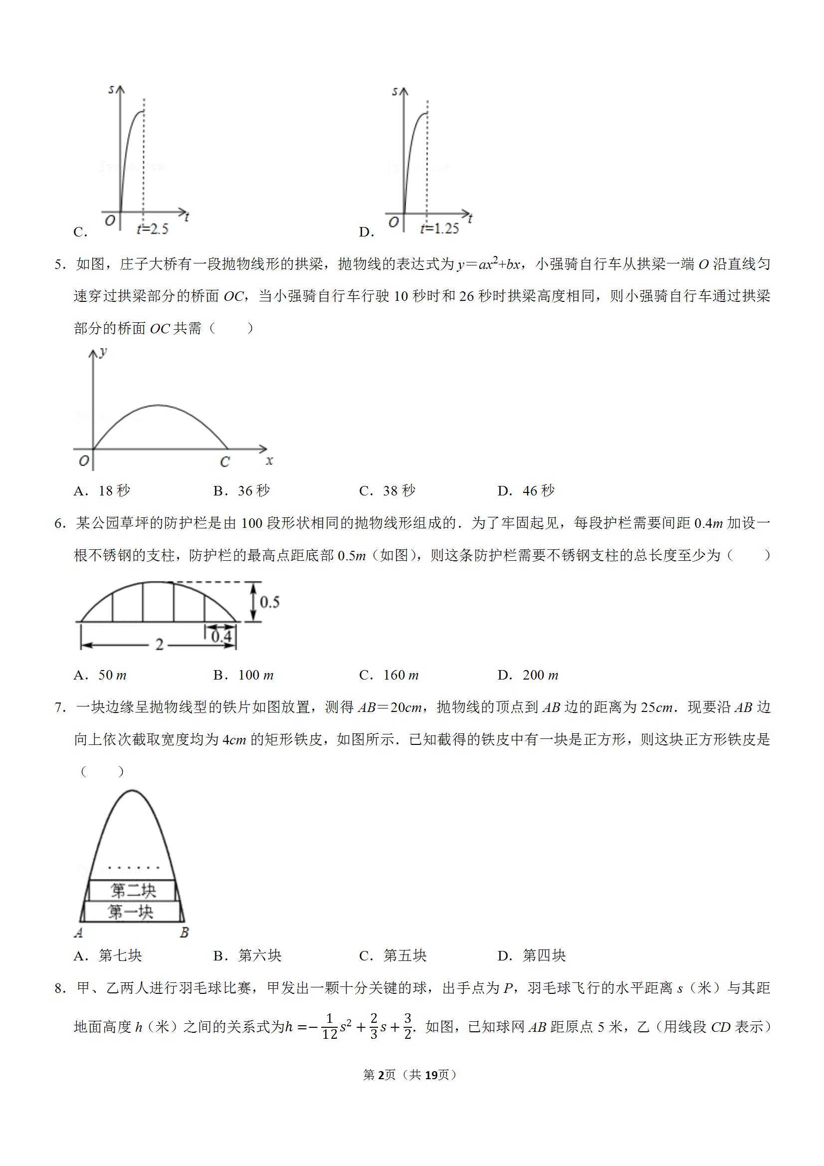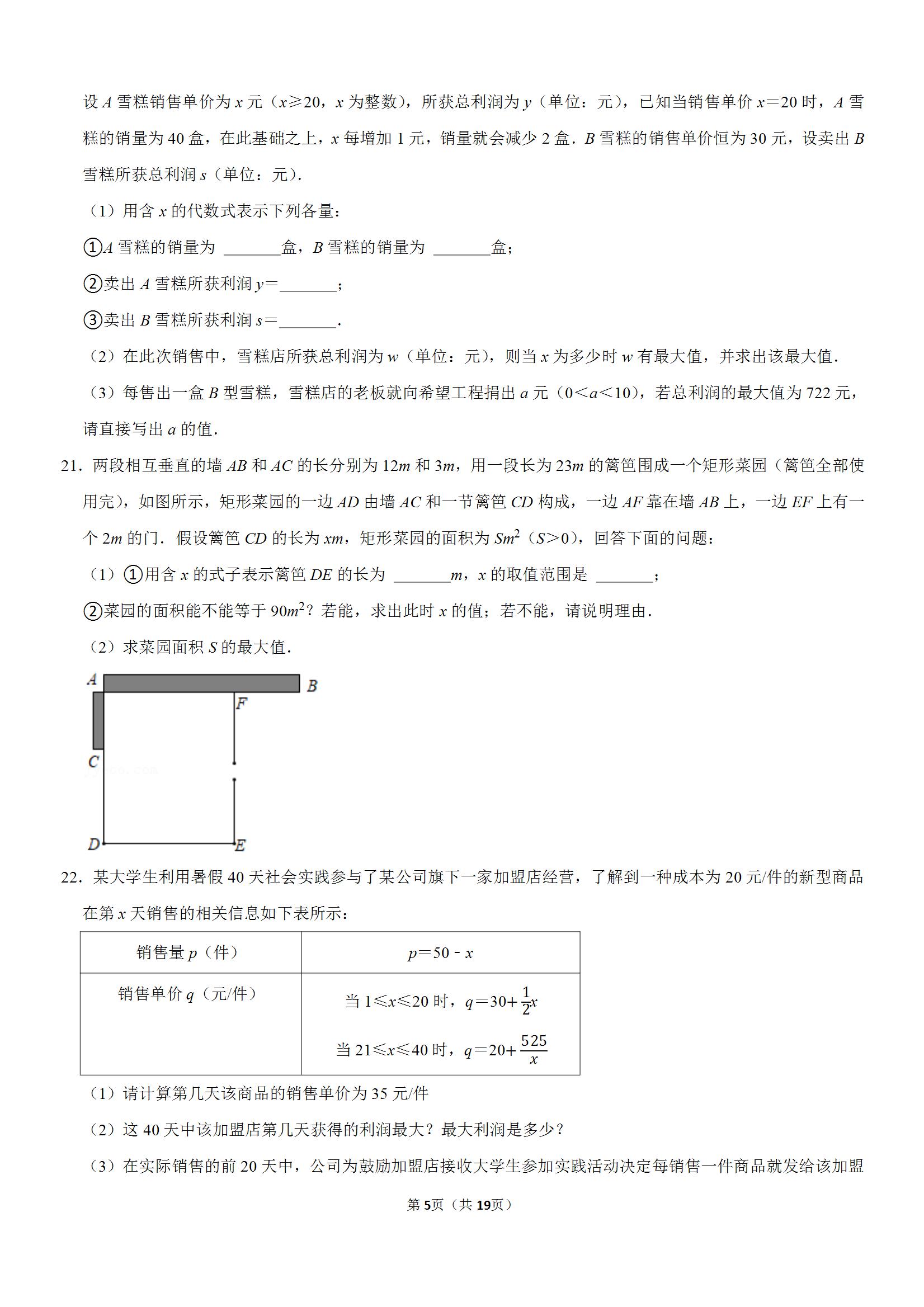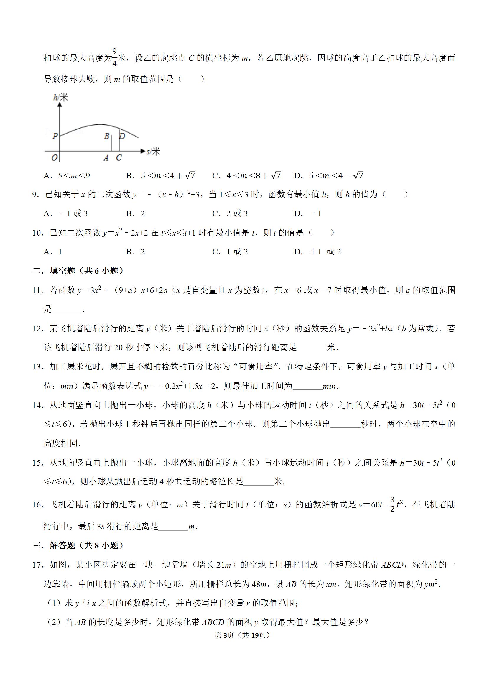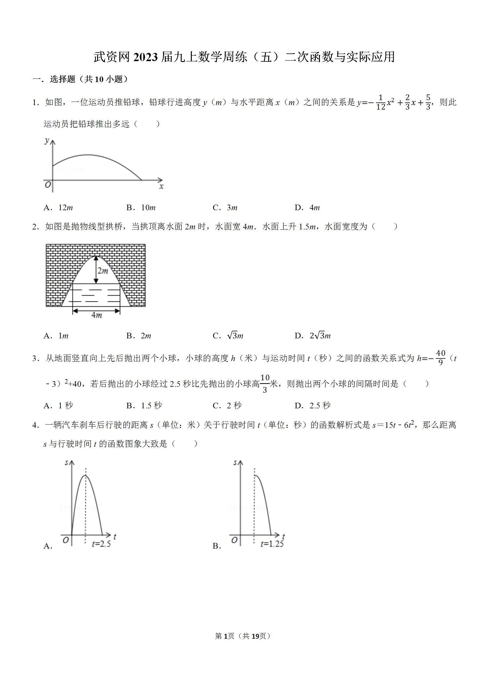 武资网2023届九上数学周练(六)二次函数与实际应用(word版含答案)