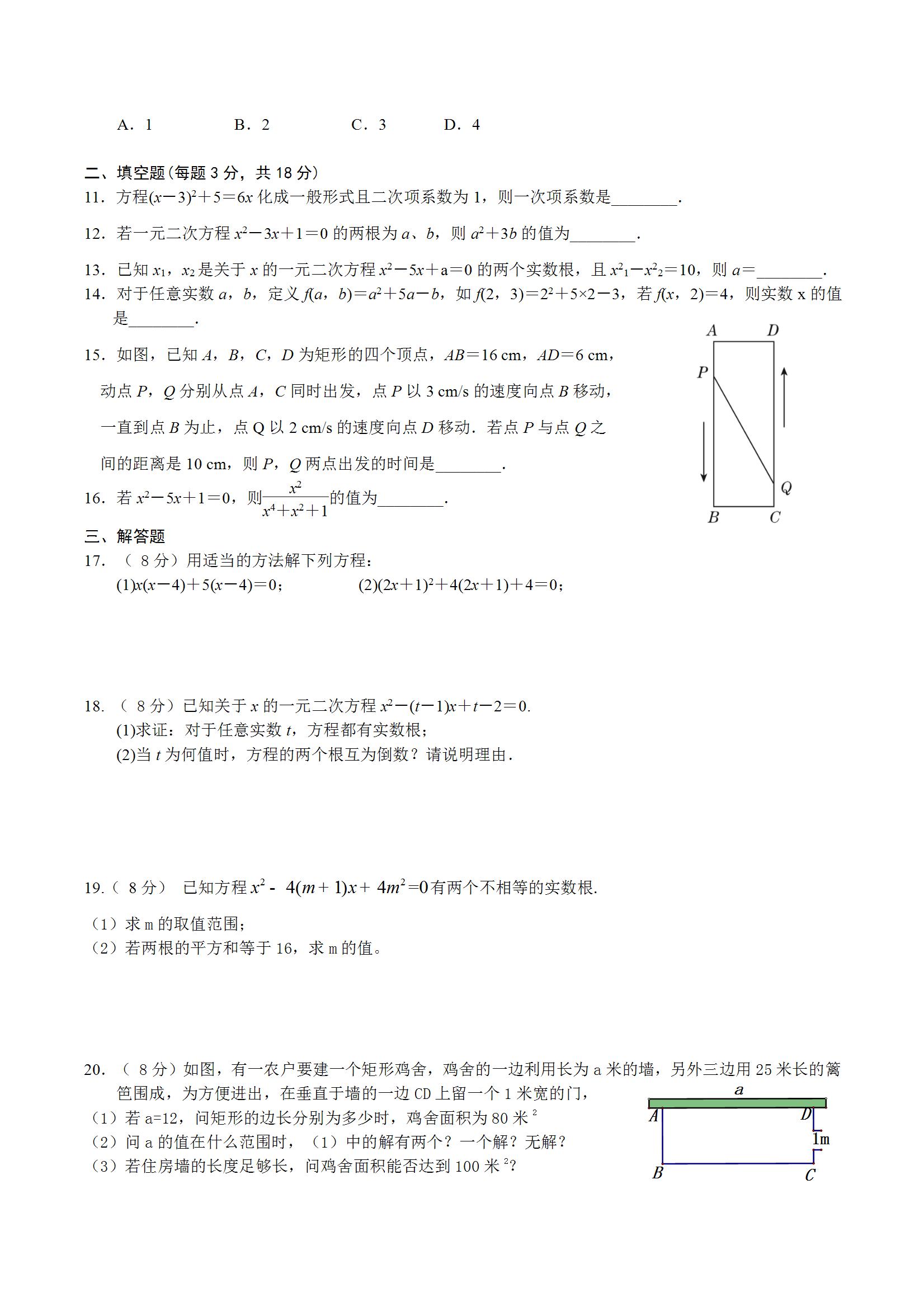 九上数学月考