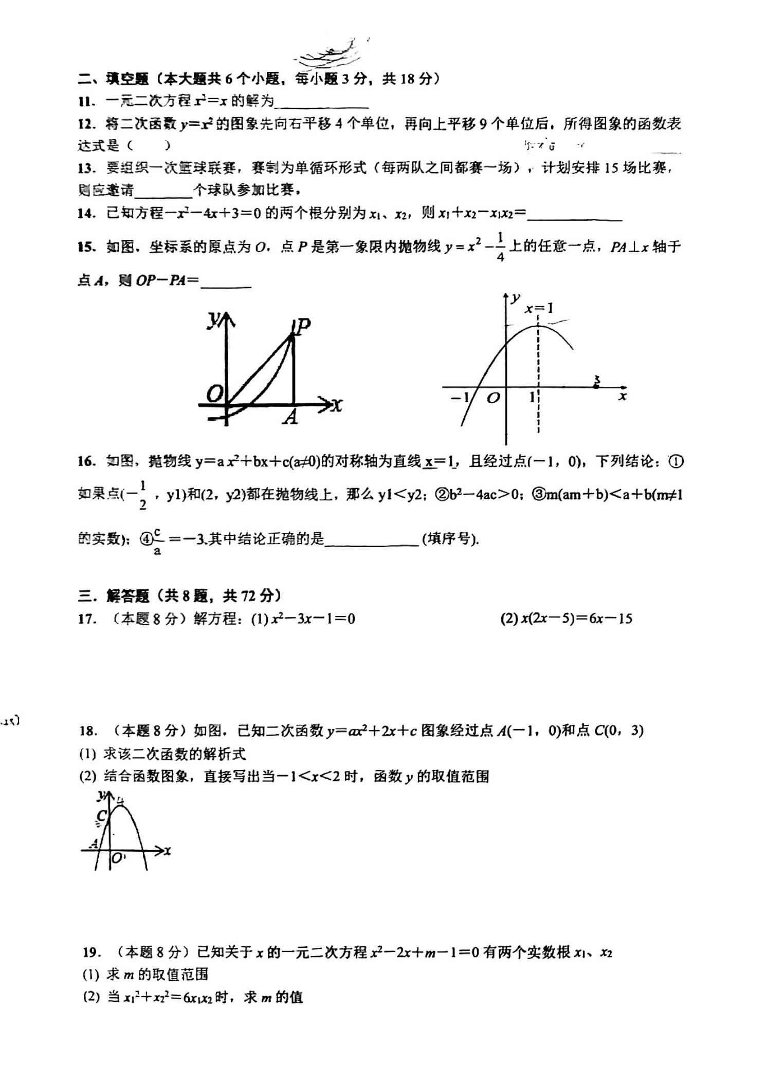 江夏区2022--2023学年度第一学期九年级9月学科小结数学试卷(word版)