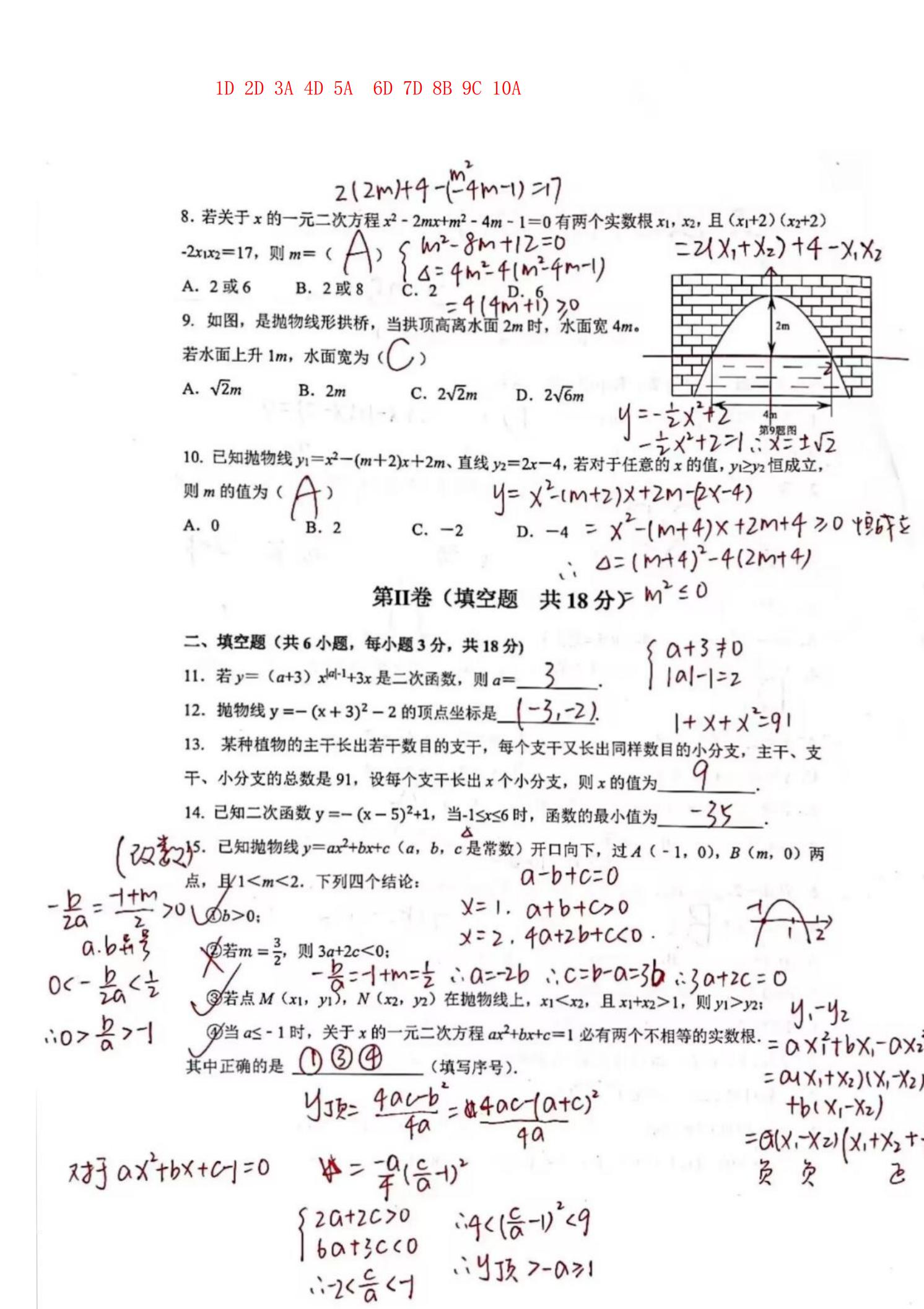 武汉二中广雅中学2022-2023学年上学期九年级数学易错二(扫描版)