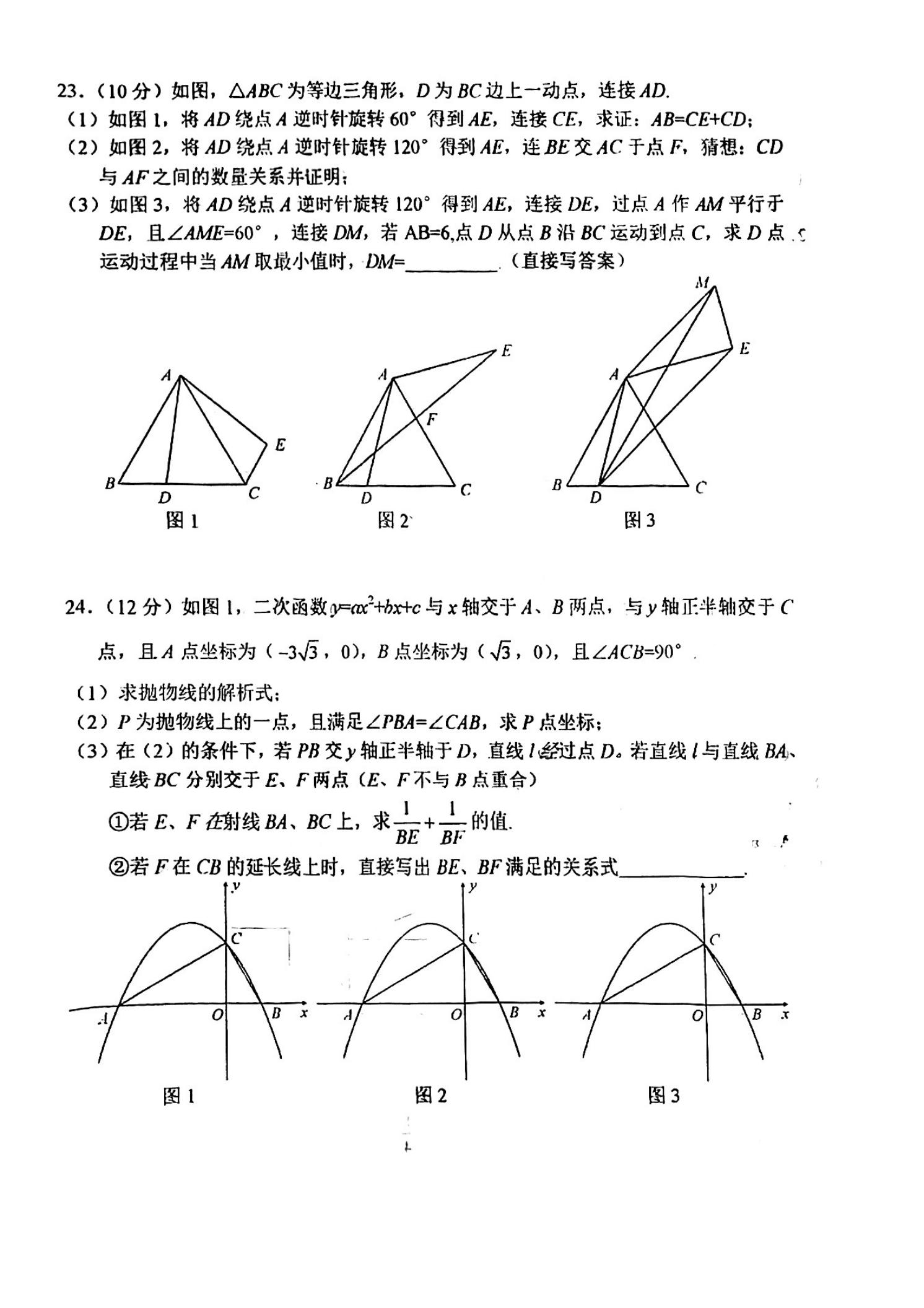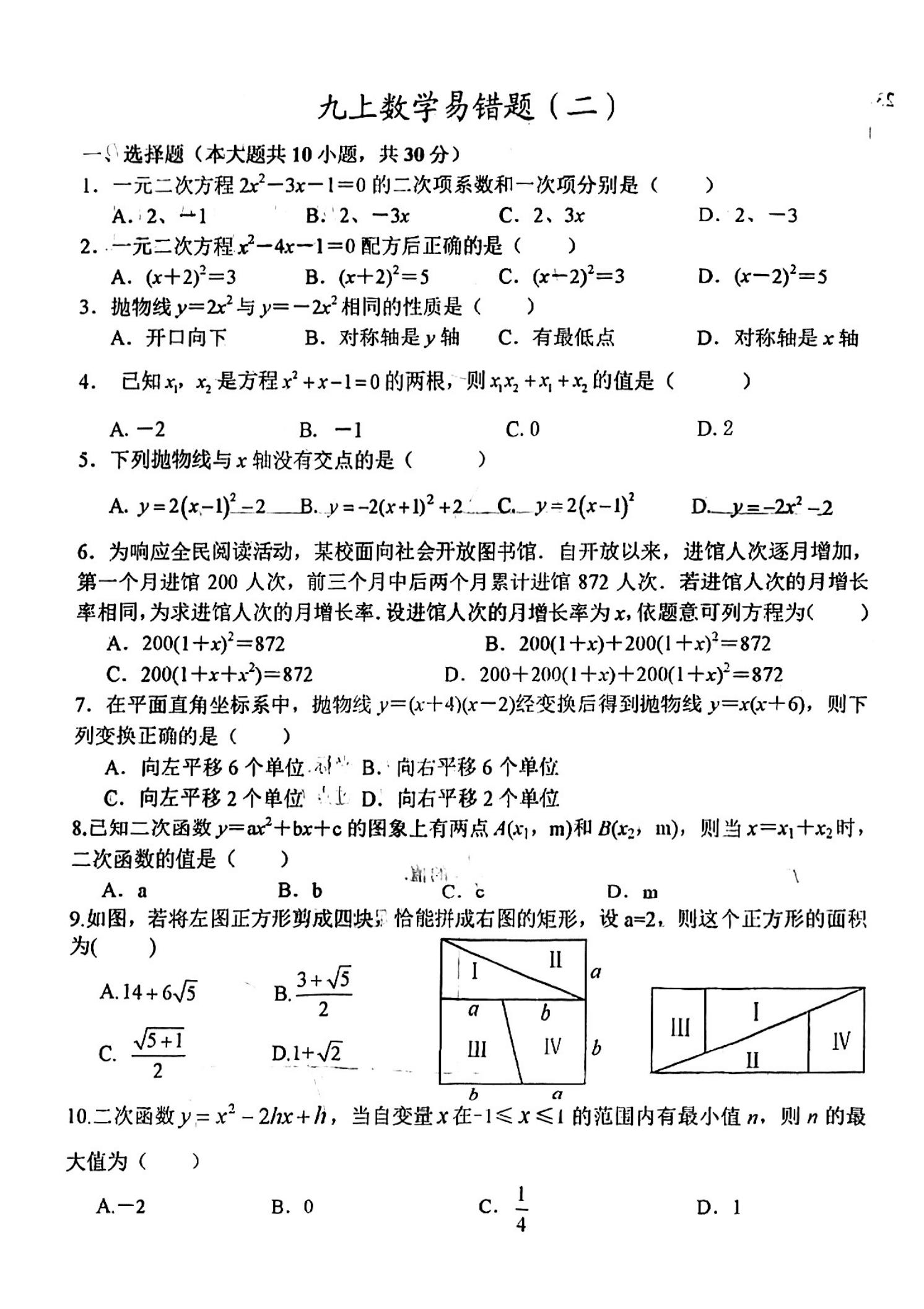 武汉二中广雅中学2022-2023学年上学期九年级数学易错二(扫描版)