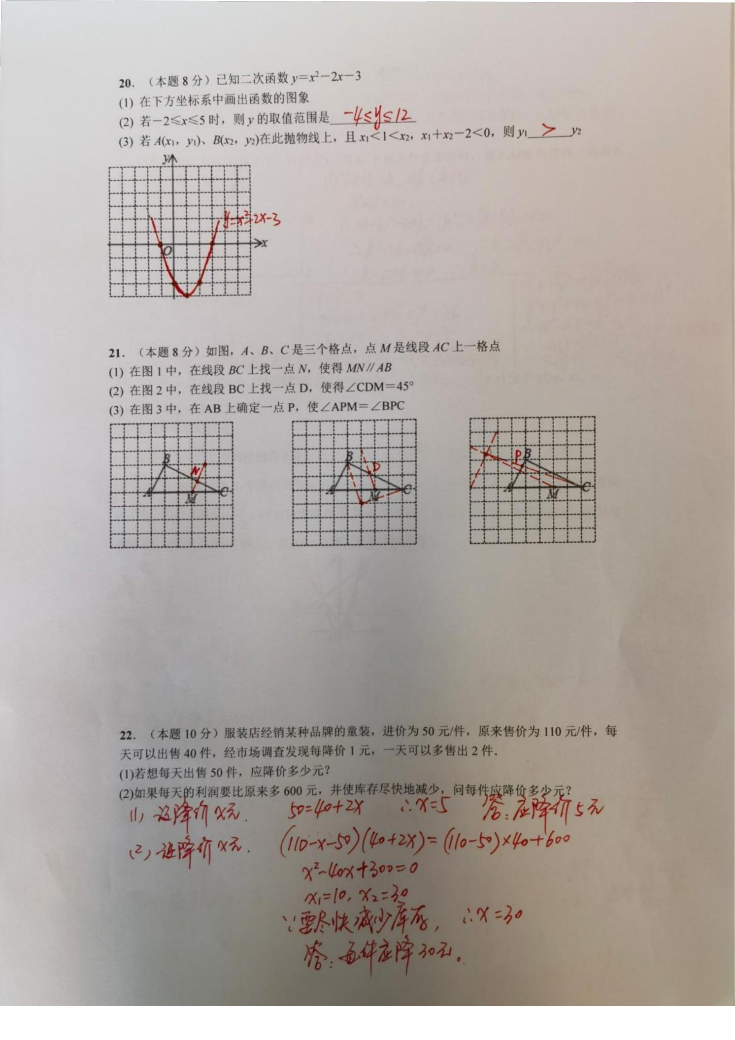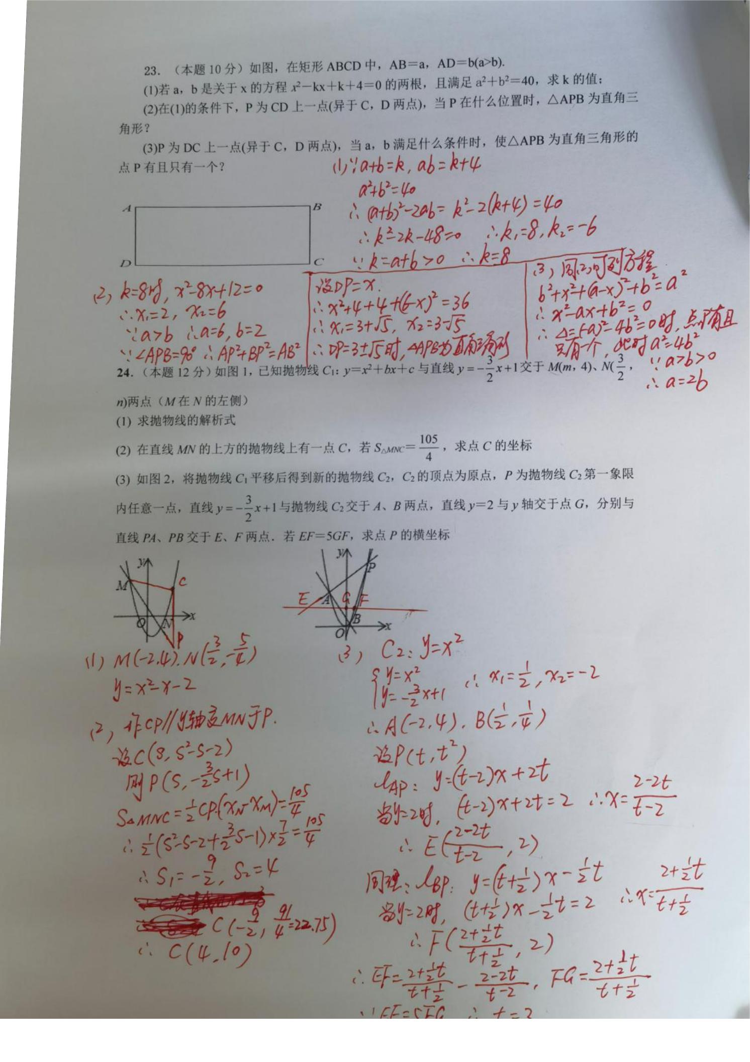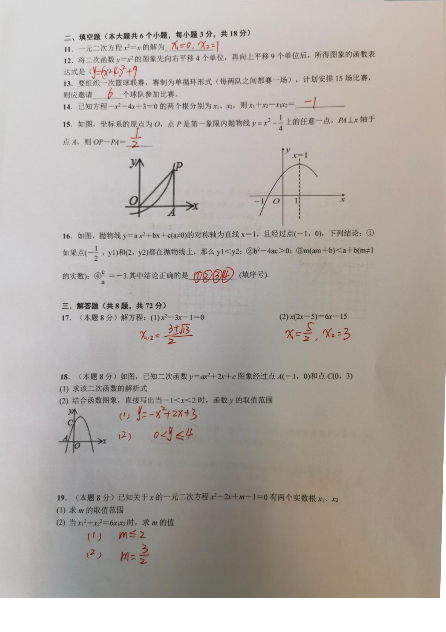 武汉二中广雅中学2022-2023学年上学期九年级数学易错二(扫描版)