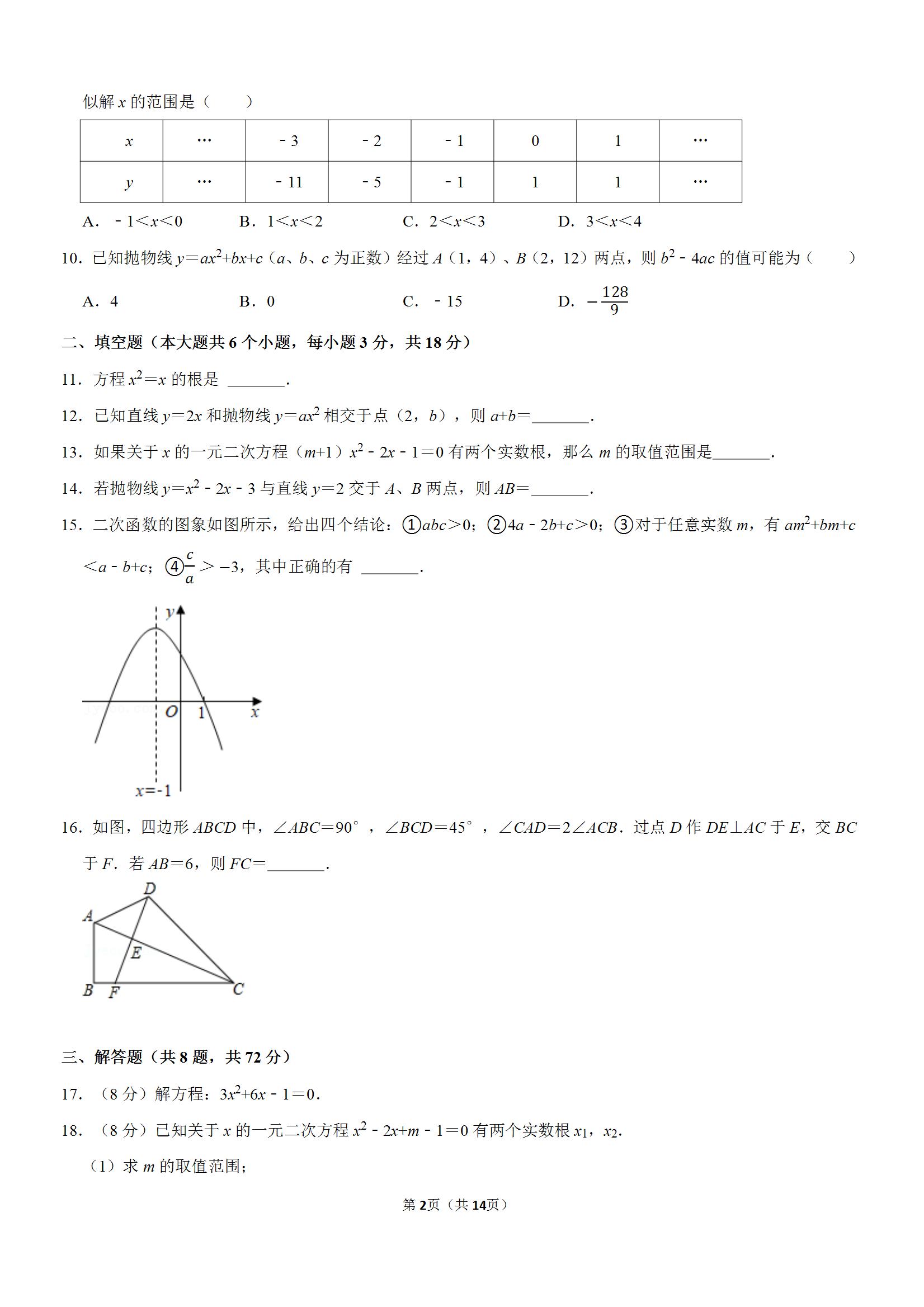 武汉二中广雅中学2022-2023学年上学期九年级数学课堂作业(二)10.6参考答案