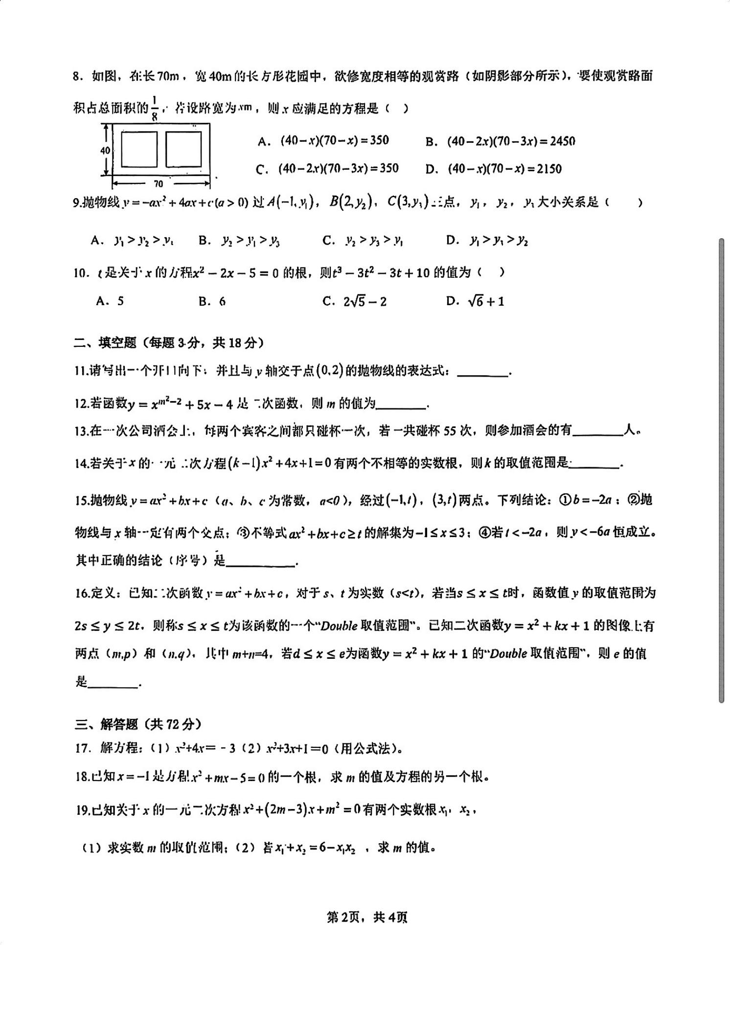 华一寄宿2025-2026学年上学期10月九年级数学试题(PDF版)