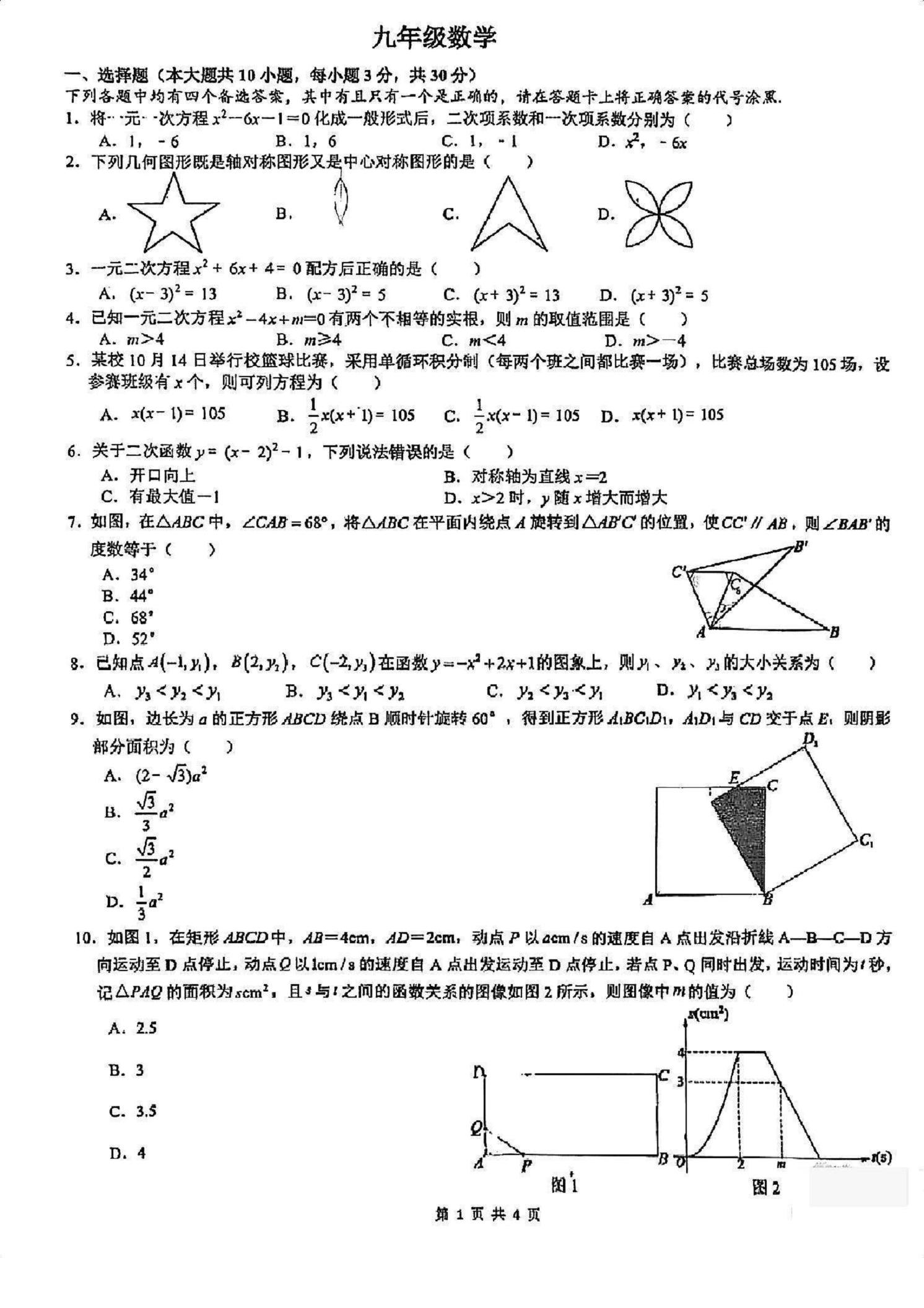 【免费】武汉六中上智2025-2026学年上学期10月九年级数学试题(PDF版)