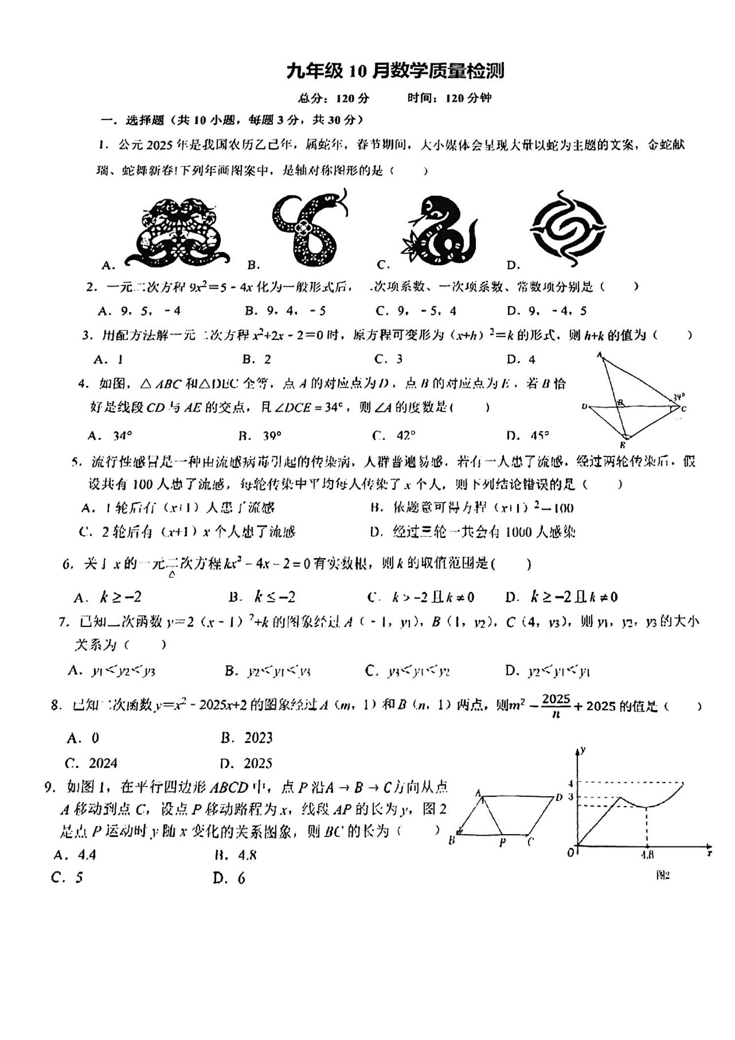 【免费】华一初2025-2026学年上学期10月九年级数学试题(PDF版)
