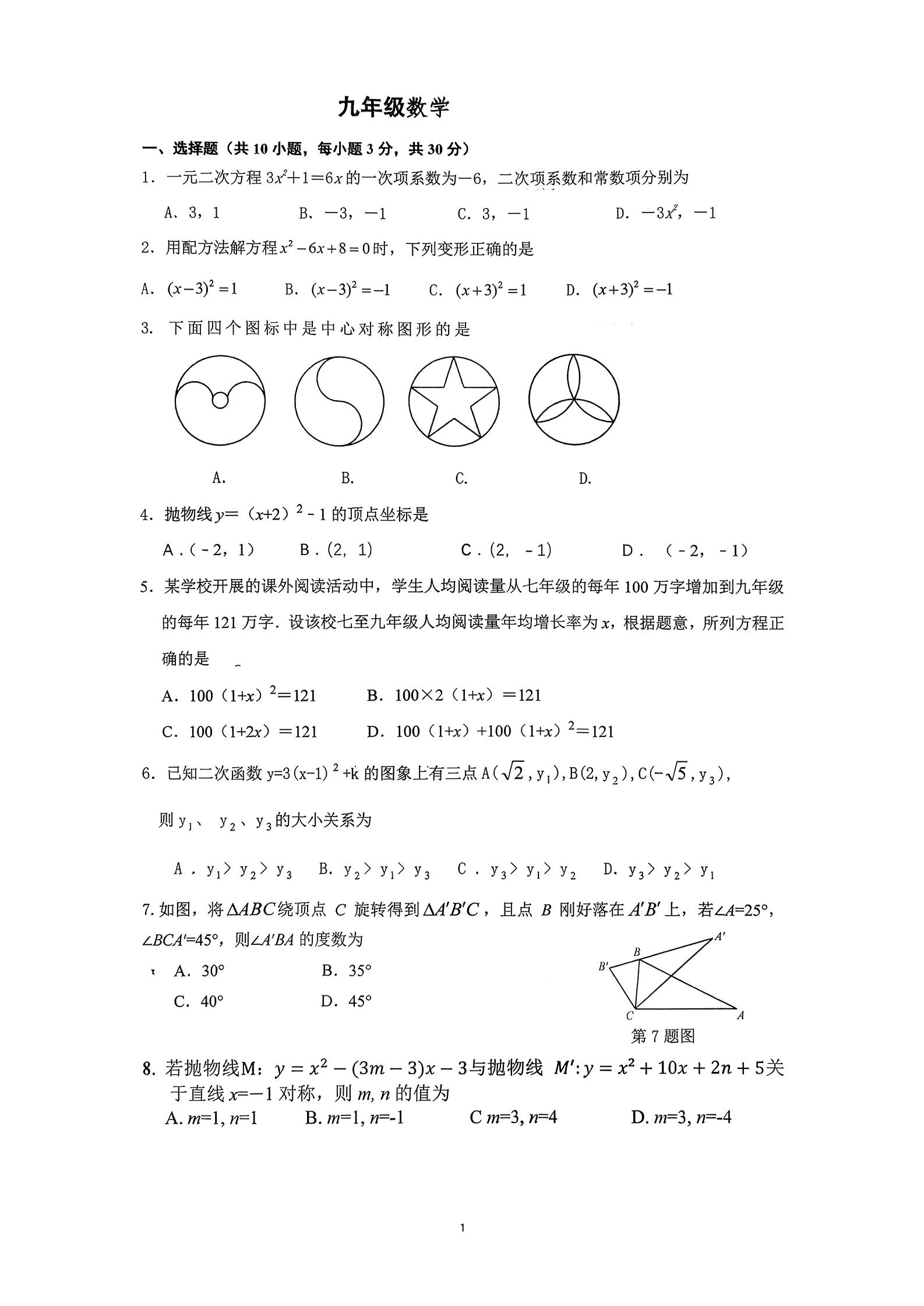 武汉三寄宿2025-2026学年上学期10月九年级数学集体作业(高清PDF版含答案)