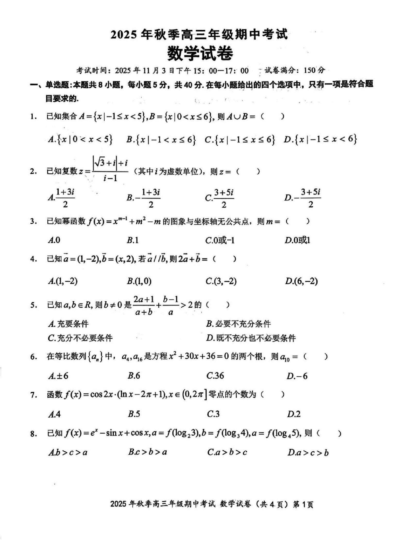 高三数学期中