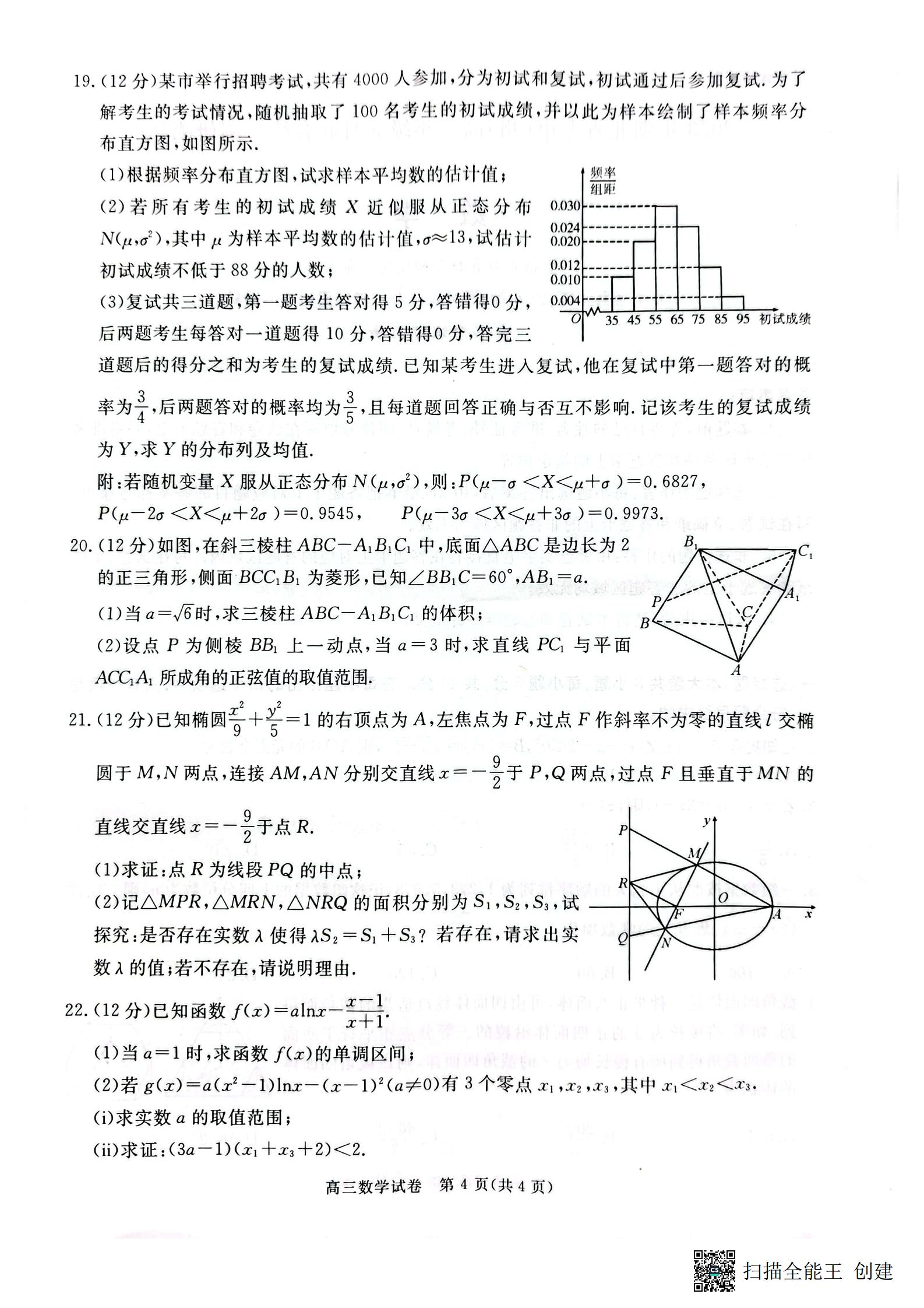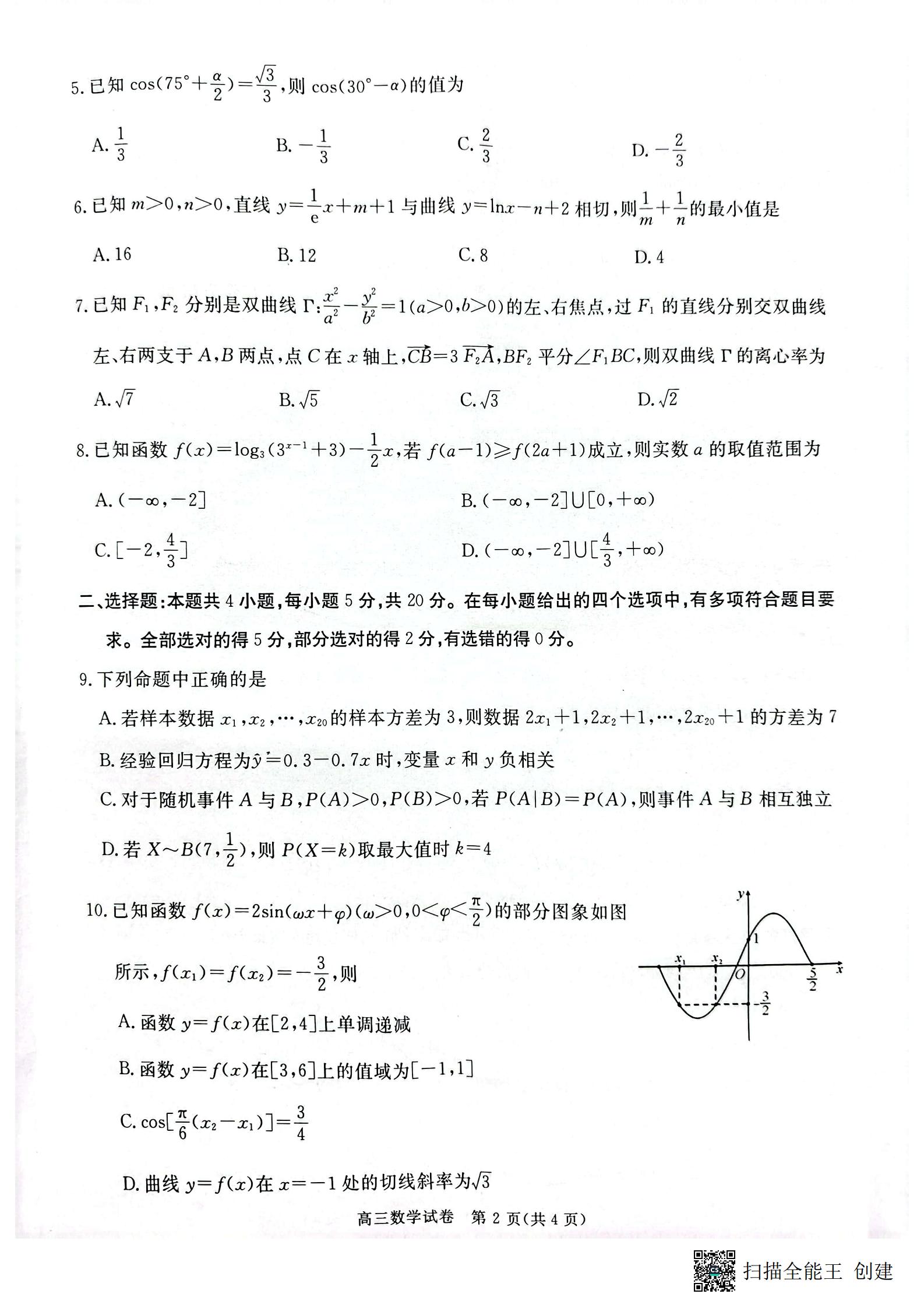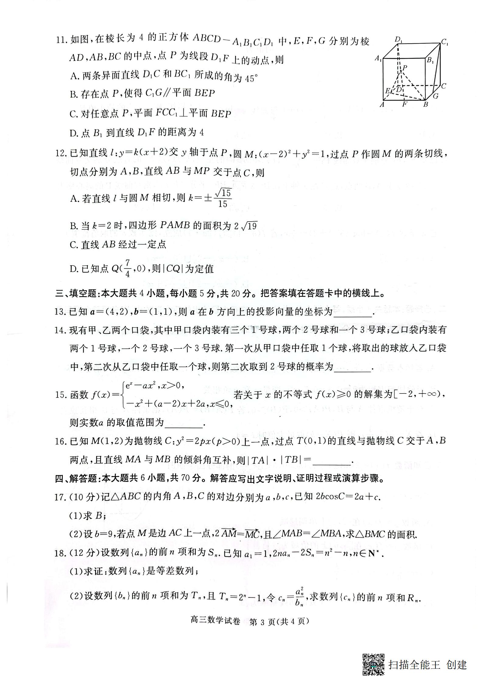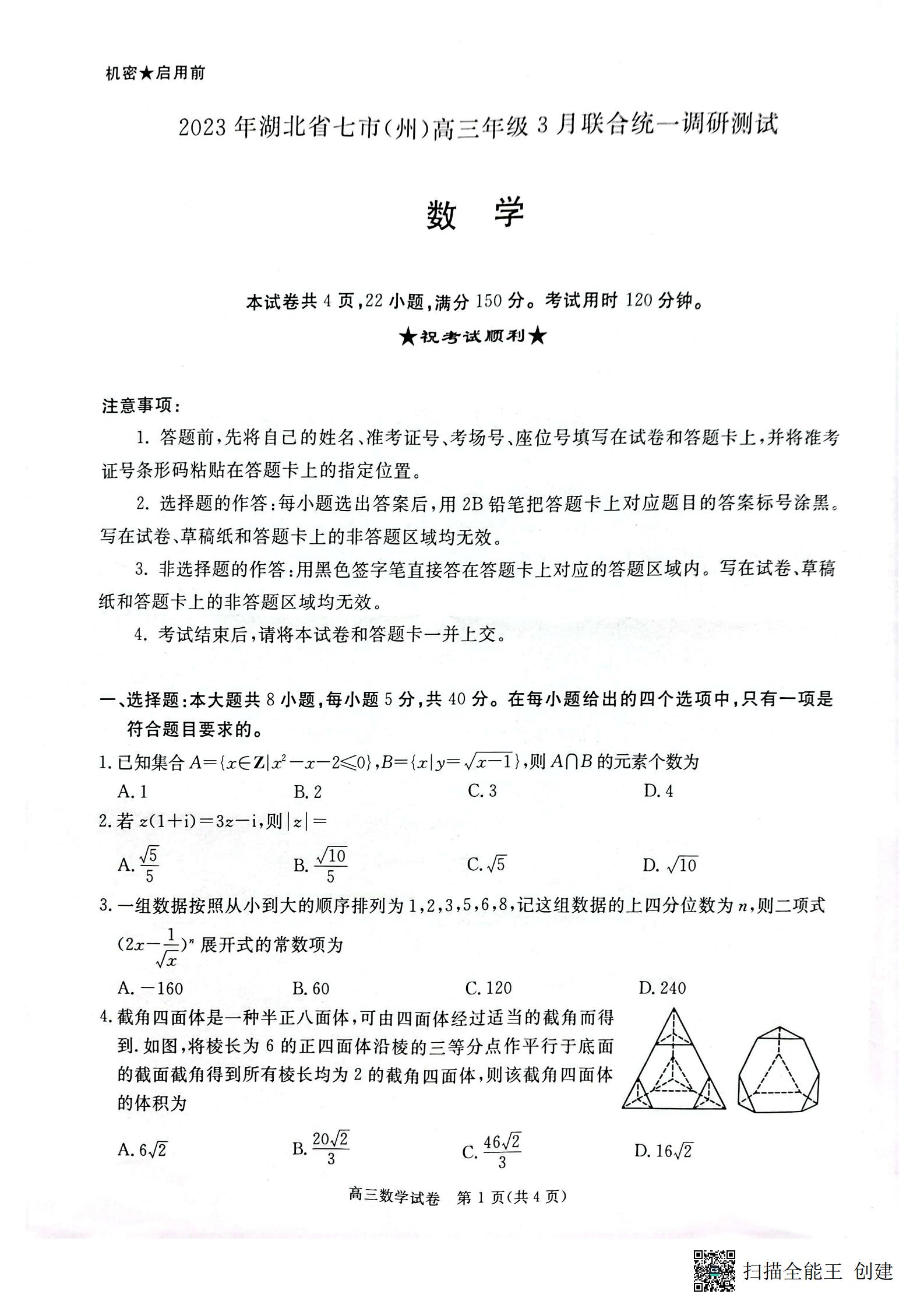 湖北省七市州2022-2023学年3月高三联考数学试题(扫描版含答案)