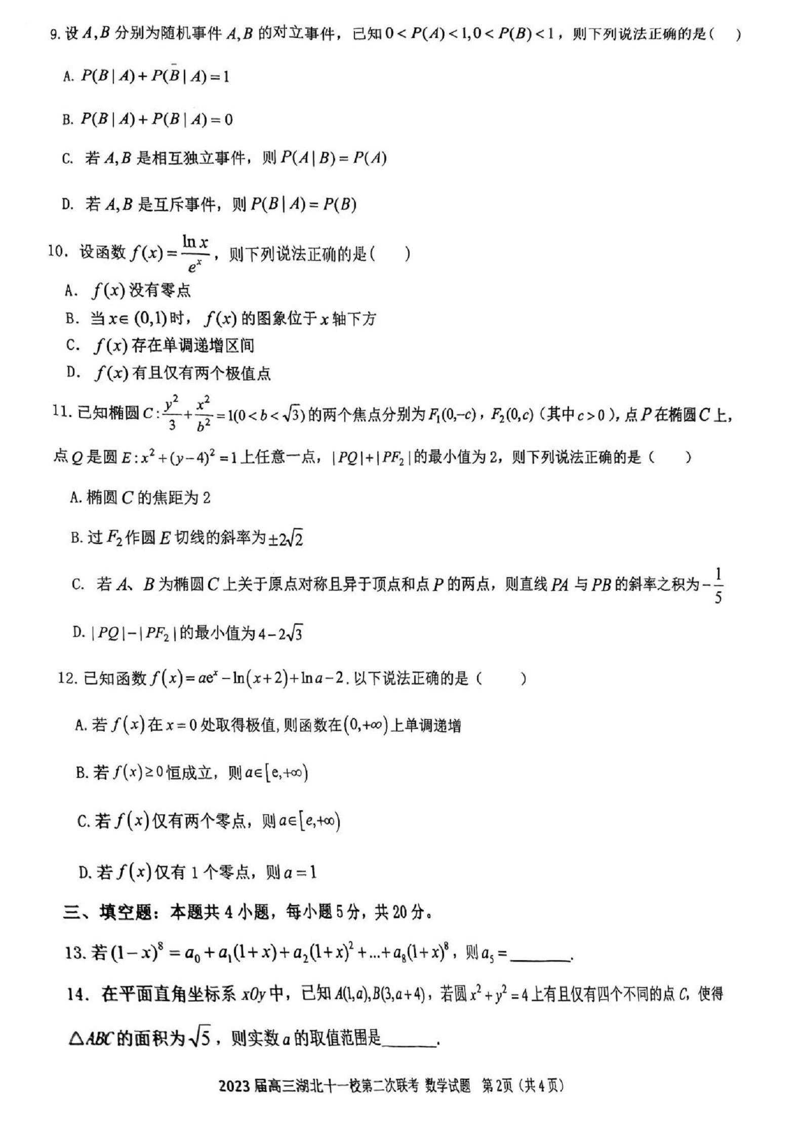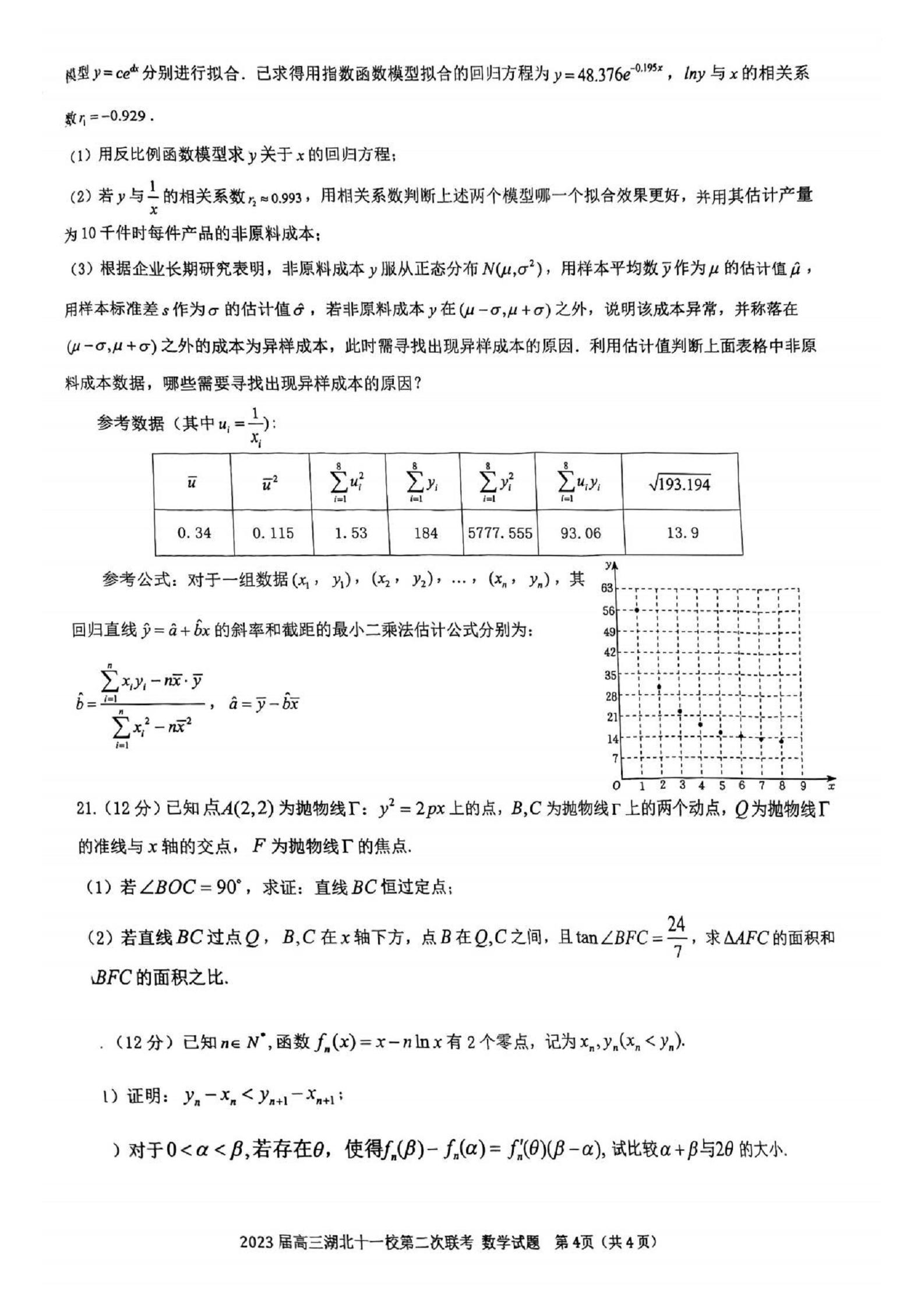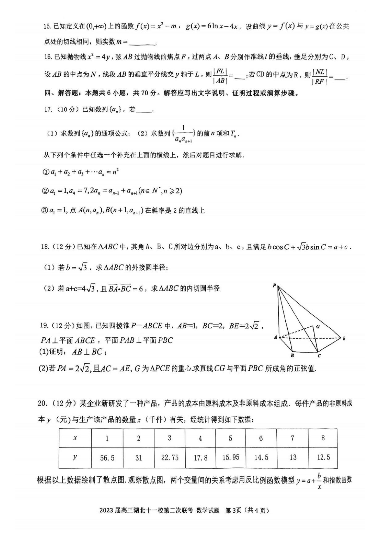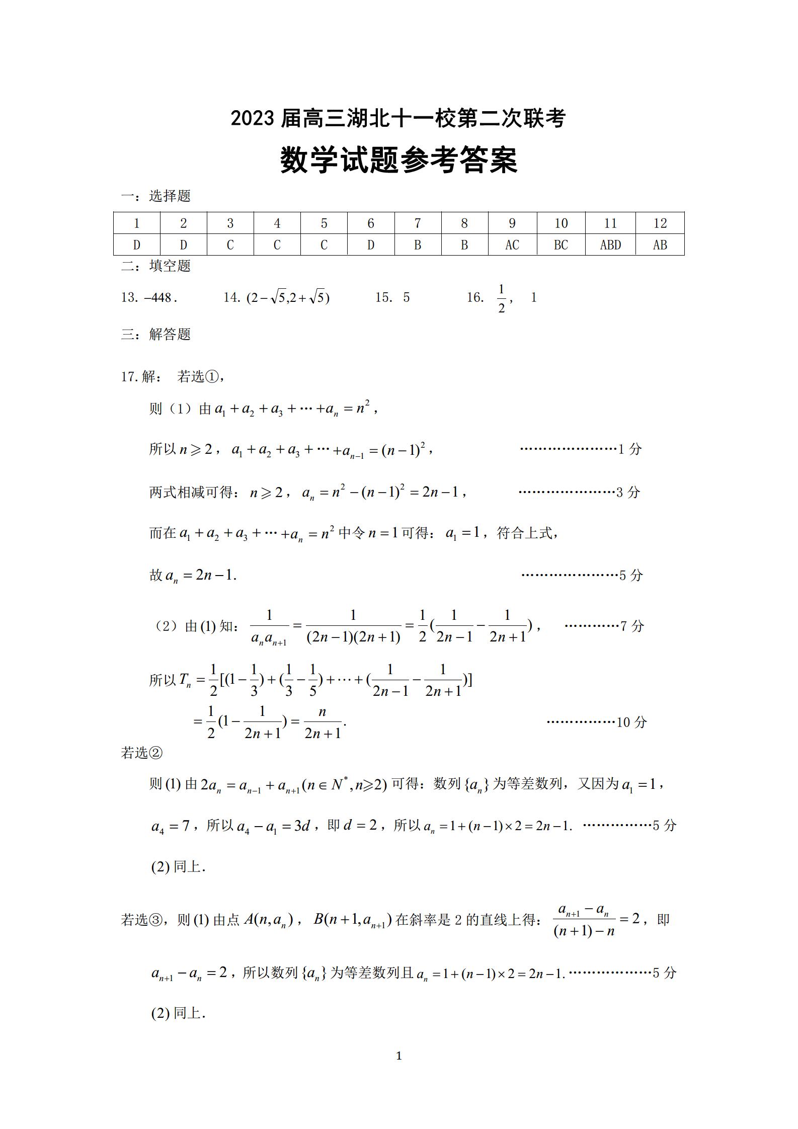 湖北省十一校2023届下学期高三第二次联考数学试题(扫描版含答案)